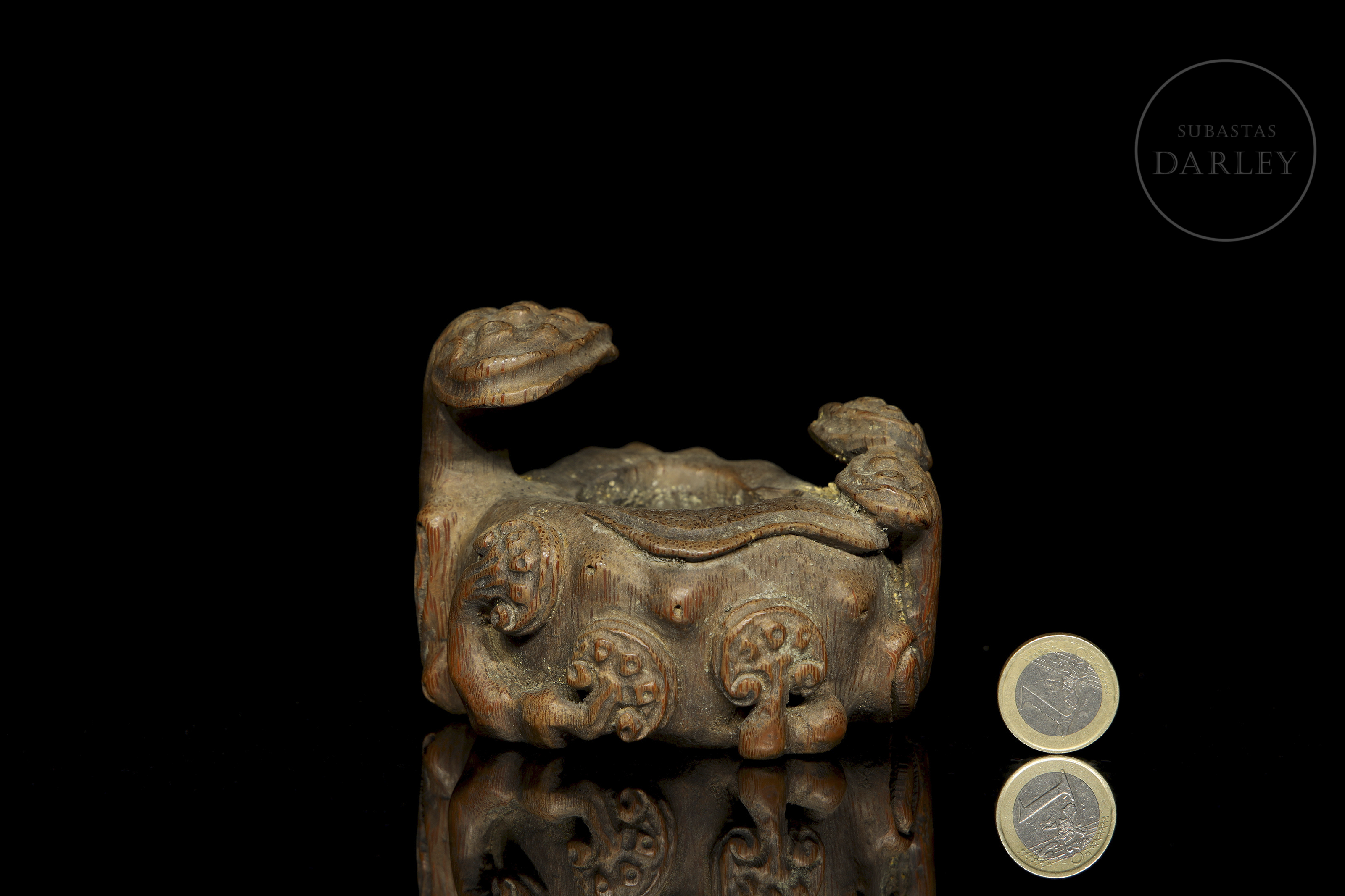 Recipiente para agua “Lingzhi” de madera tallada, dinastía Qing