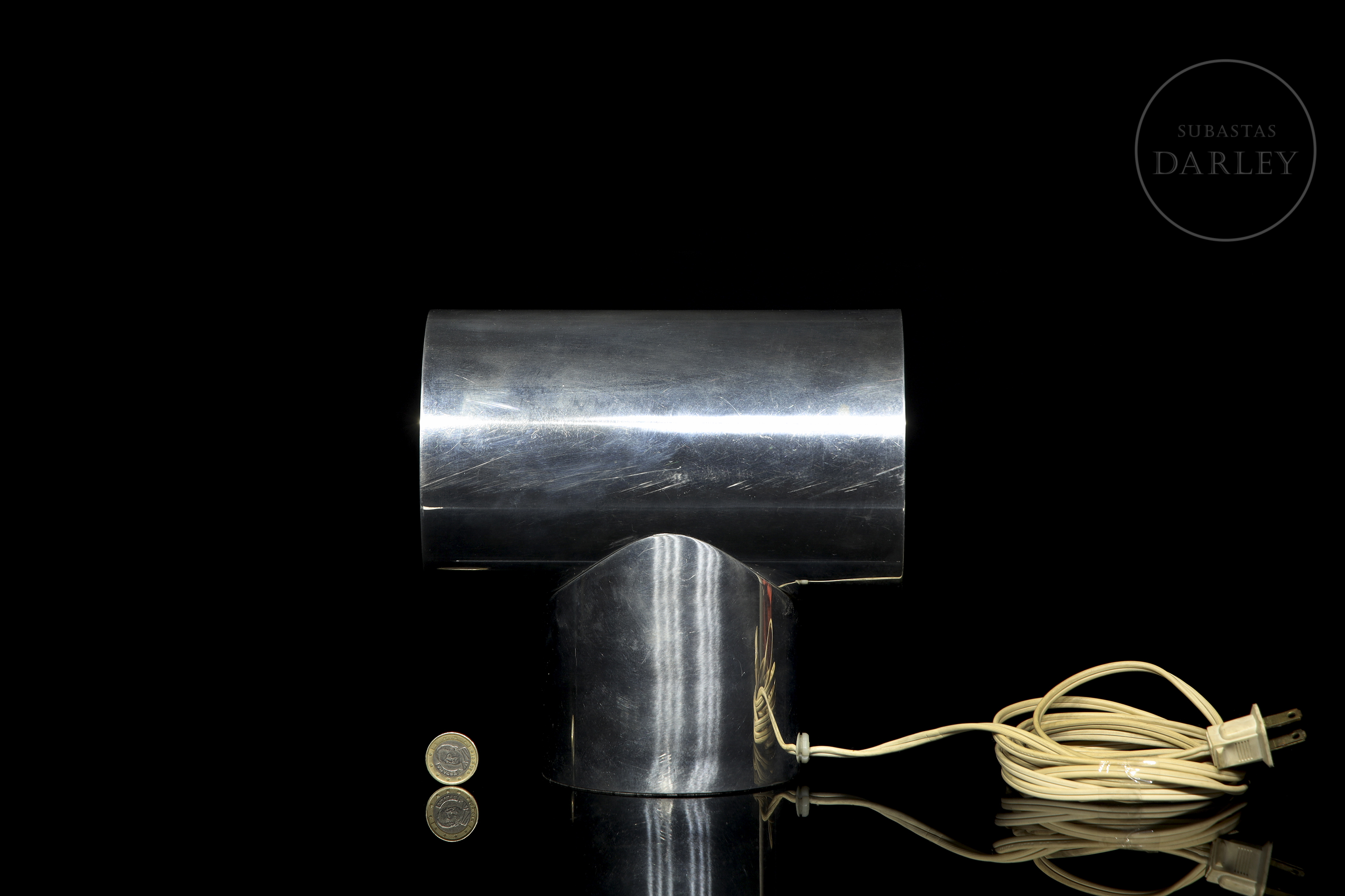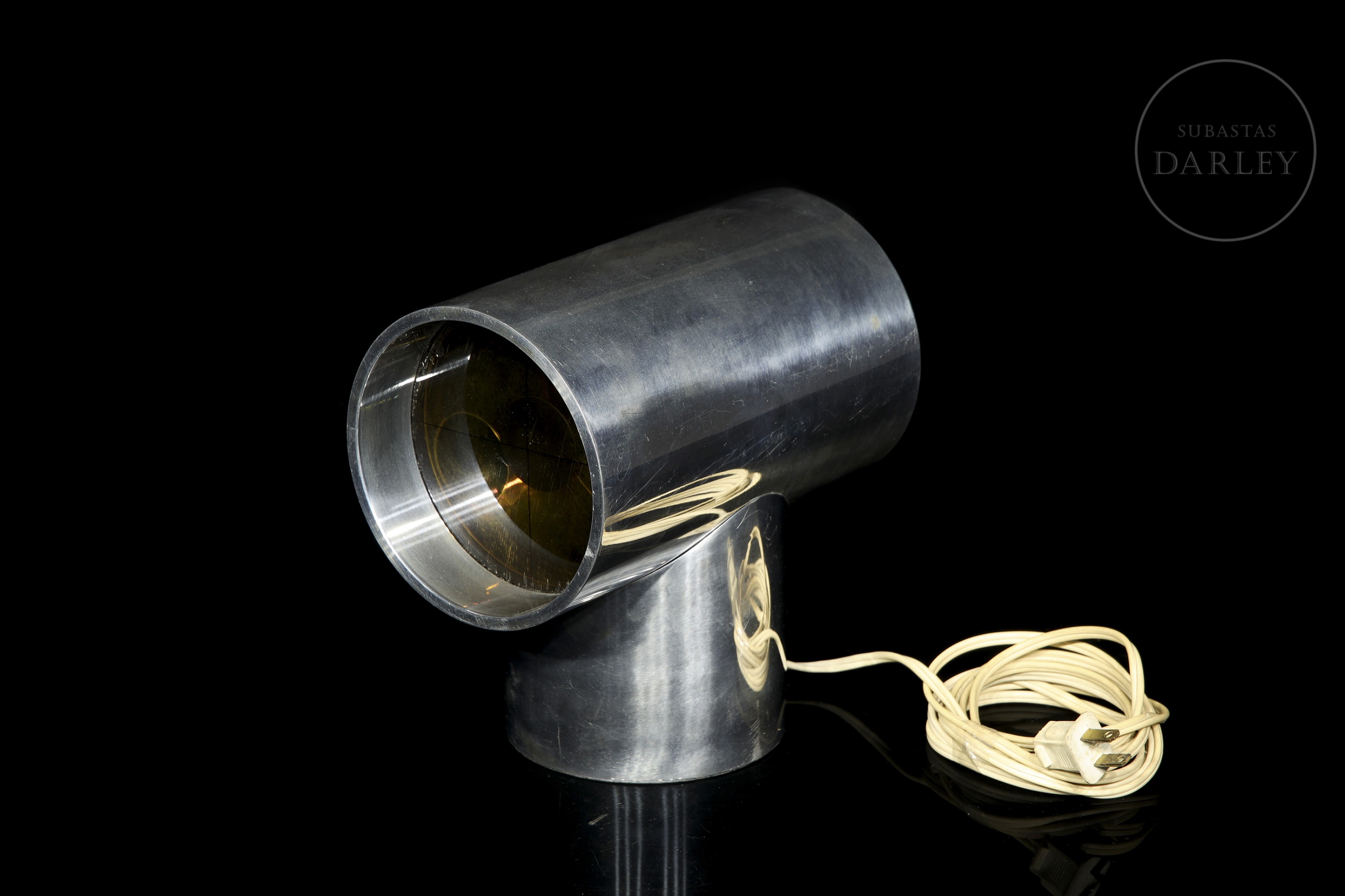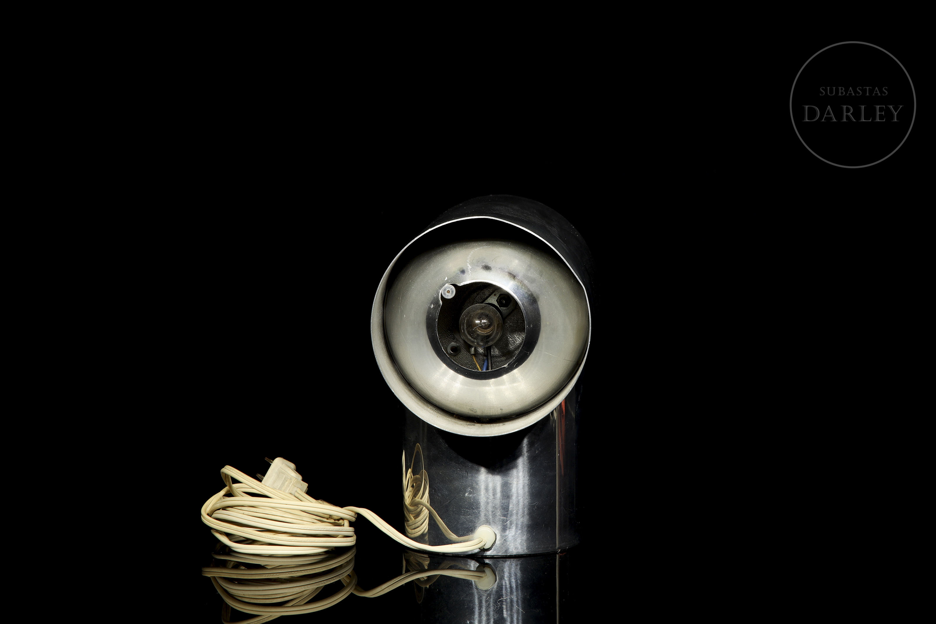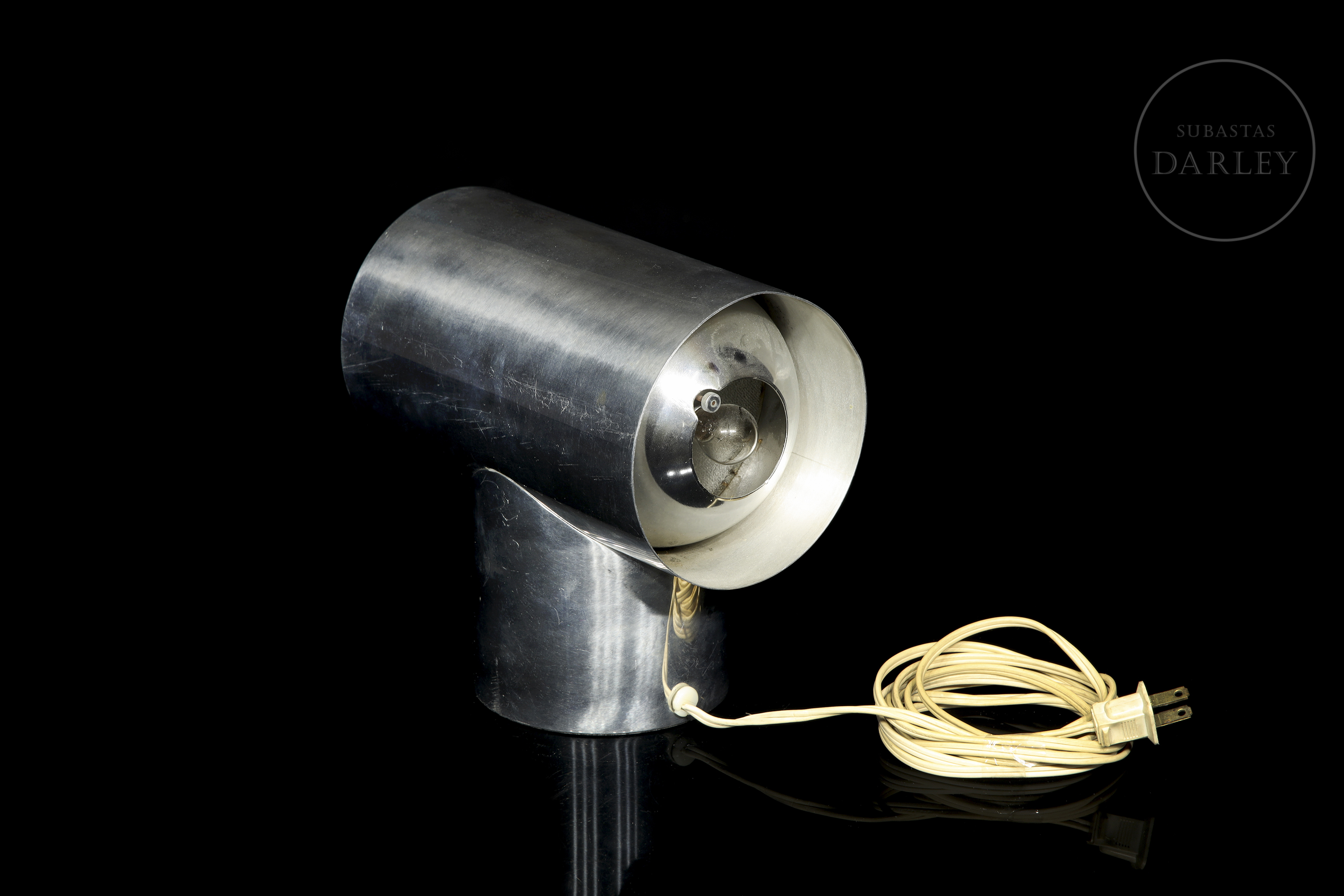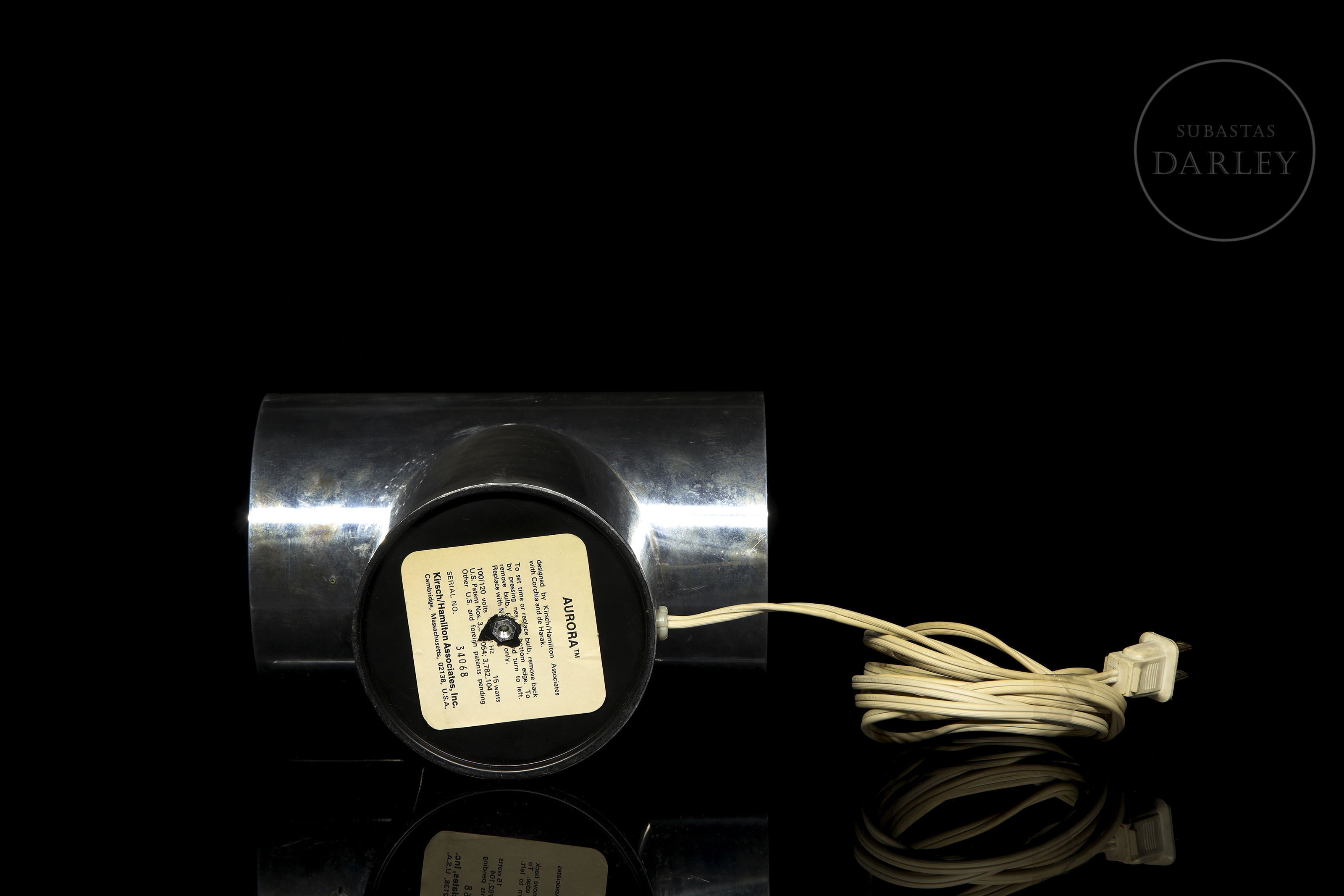Reloj de diseño desarrollado en la década de 1970. Claro exponente del diseño industrial de su época, la estructura incorpora una esfera frontal protegida por visor acrílico y conserva el cableado original con clavija de época; por otro lado, las lentes y el motor han sido sustituidos para garantizar su correcto funcionamiento. Presenta ligeras marcas de desgaste debidas a su antigüedad y uso.