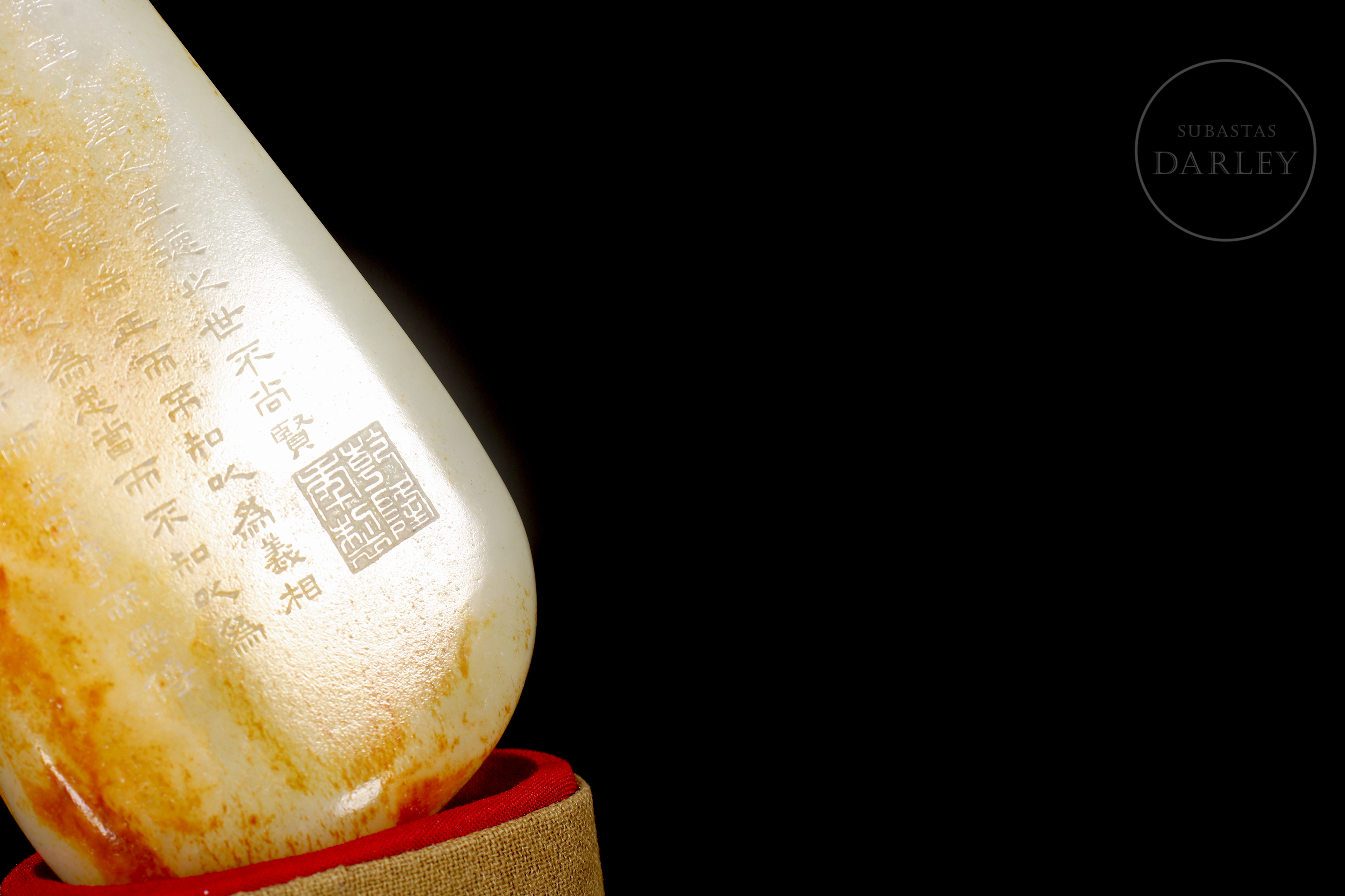 Roca de jade blanco de Hetian "Caballos y poema", dinastía Qing