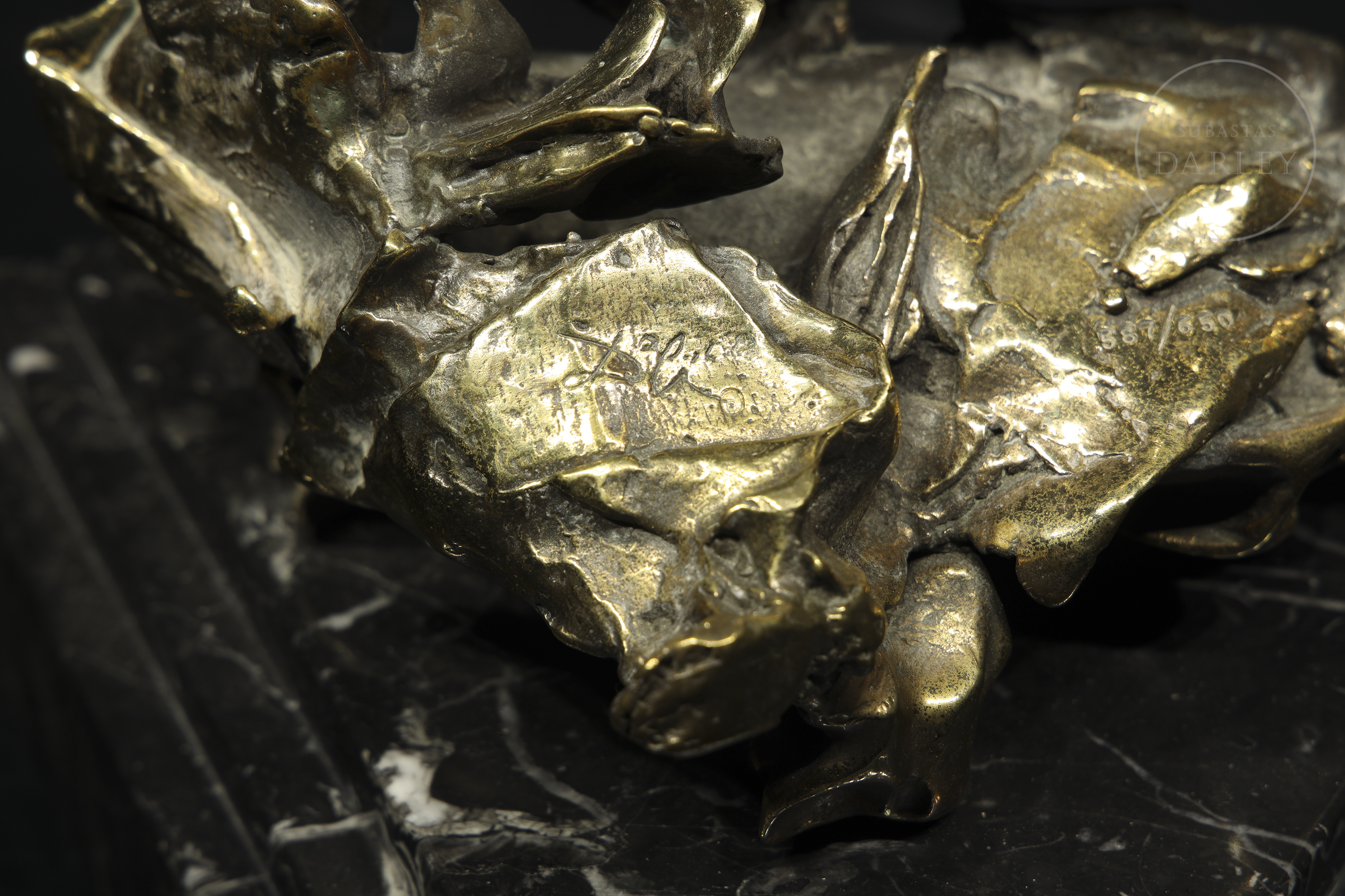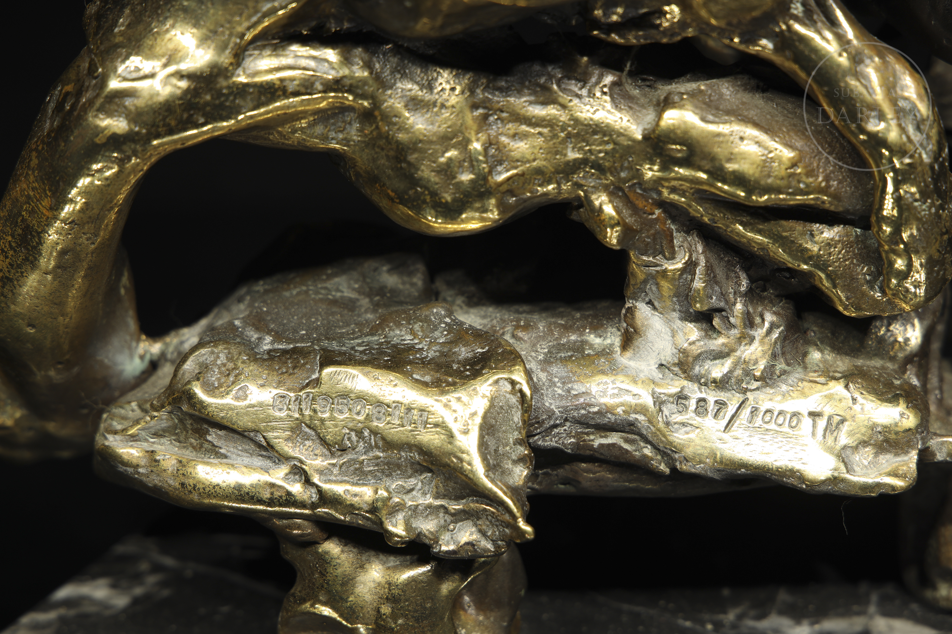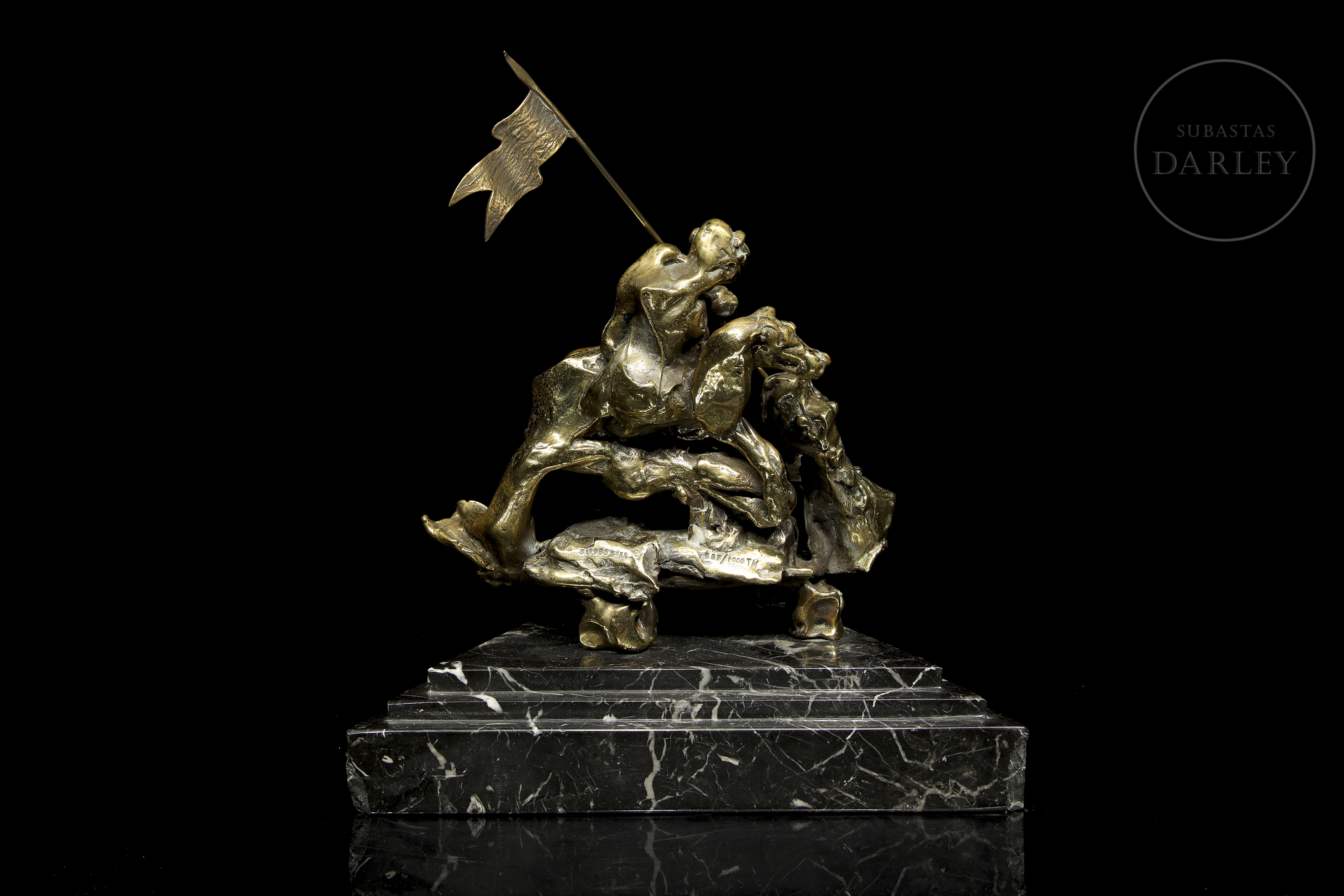 Escultura de bronce de Salvador Dalí i Domènech, patinado con peana de mármol. Firmado "Dalí" en la base. Con triple numeración 587/650; 587/1000; 3119508111. Esto es devido a que la serie se produjo una ampliación en el numero de unidades realizadas, la primera es la serie inicial , se prodiguieron 650 y en la posterior por su gran exito en la primera edición se amplio a 1000 más.