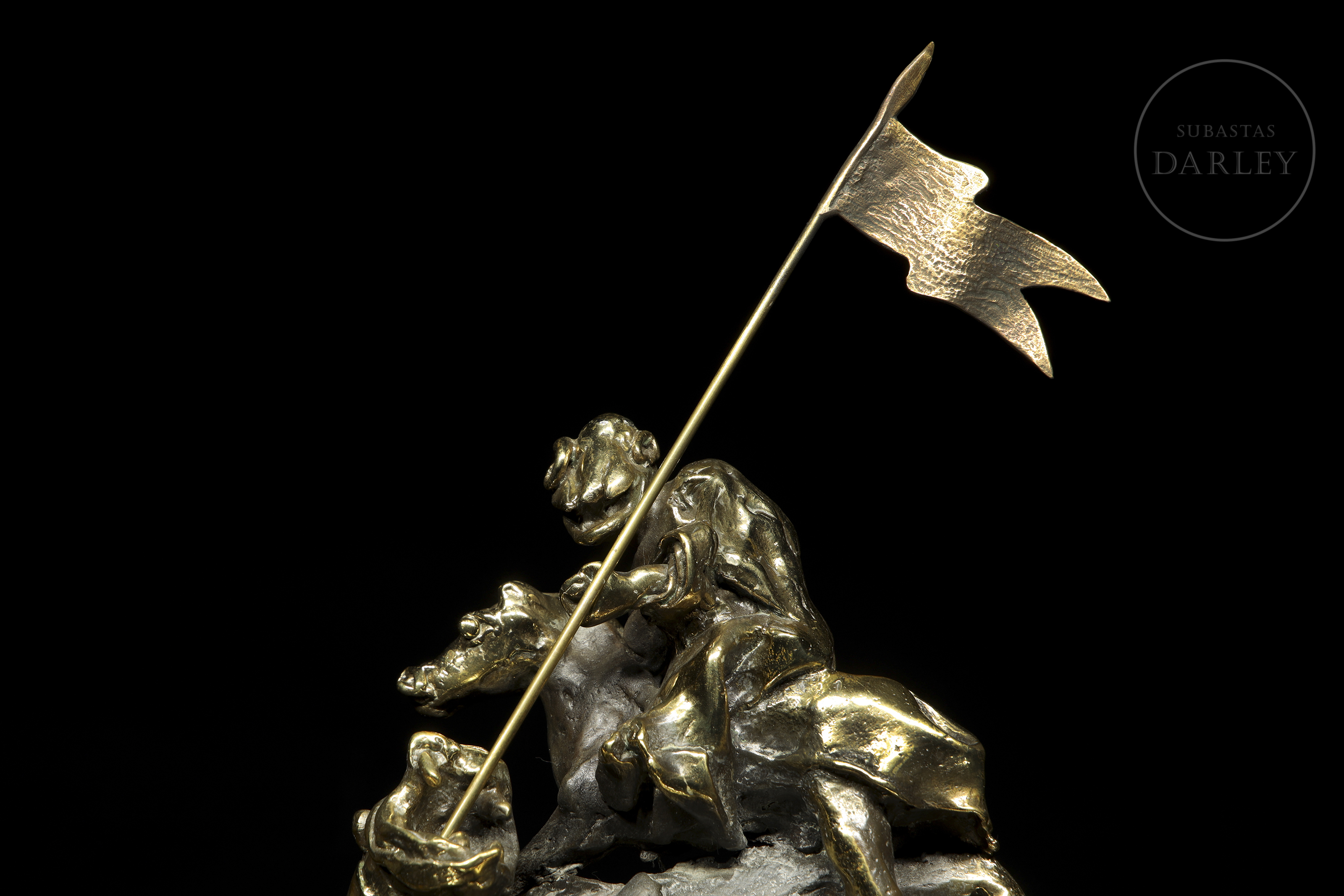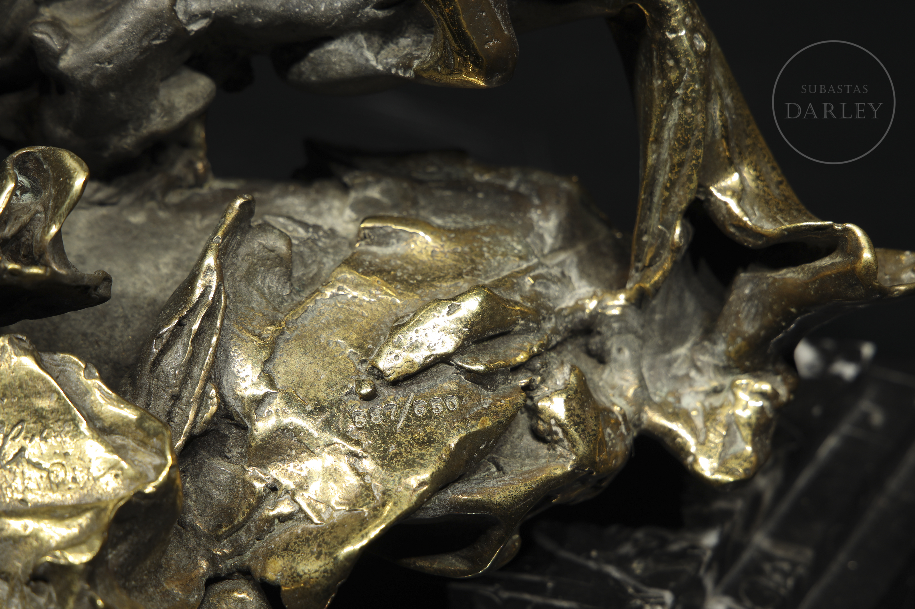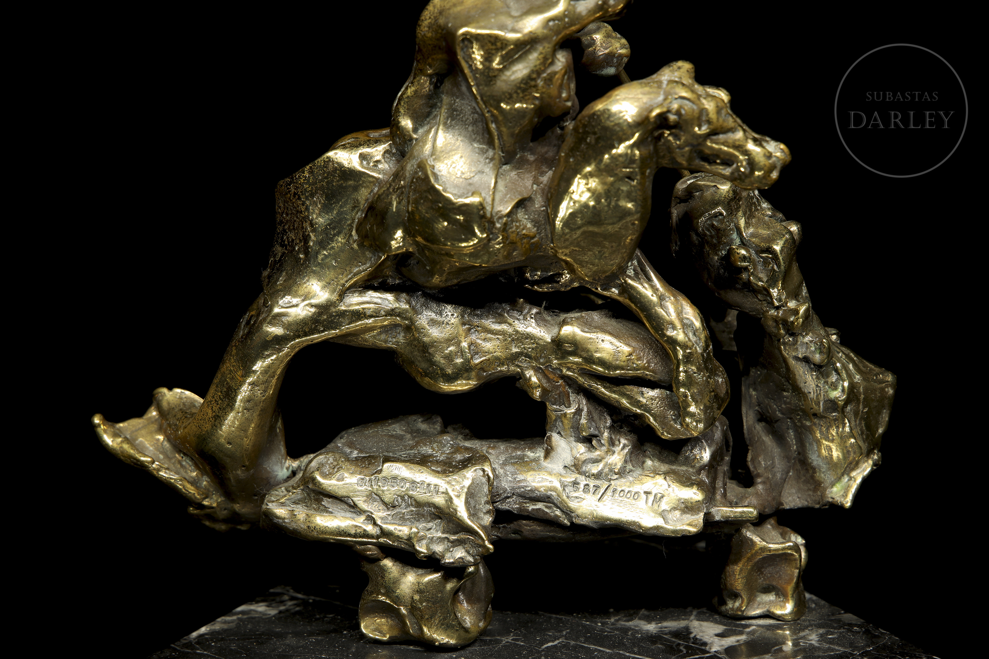 Escultura de bronce de Salvador Dalí i Domènech, patinado con peana de mármol. Firmado "Dalí" en la base. Con triple numeración 587/650; 587/1000; 3119508111. Esto es devido a que la serie se produjo una ampliación en el numero de unidades realizadas, la primera es la serie inicial , se prodiguieron 650 y en la posterior por su gran exito en la primera edición se amplio a 1000 más.