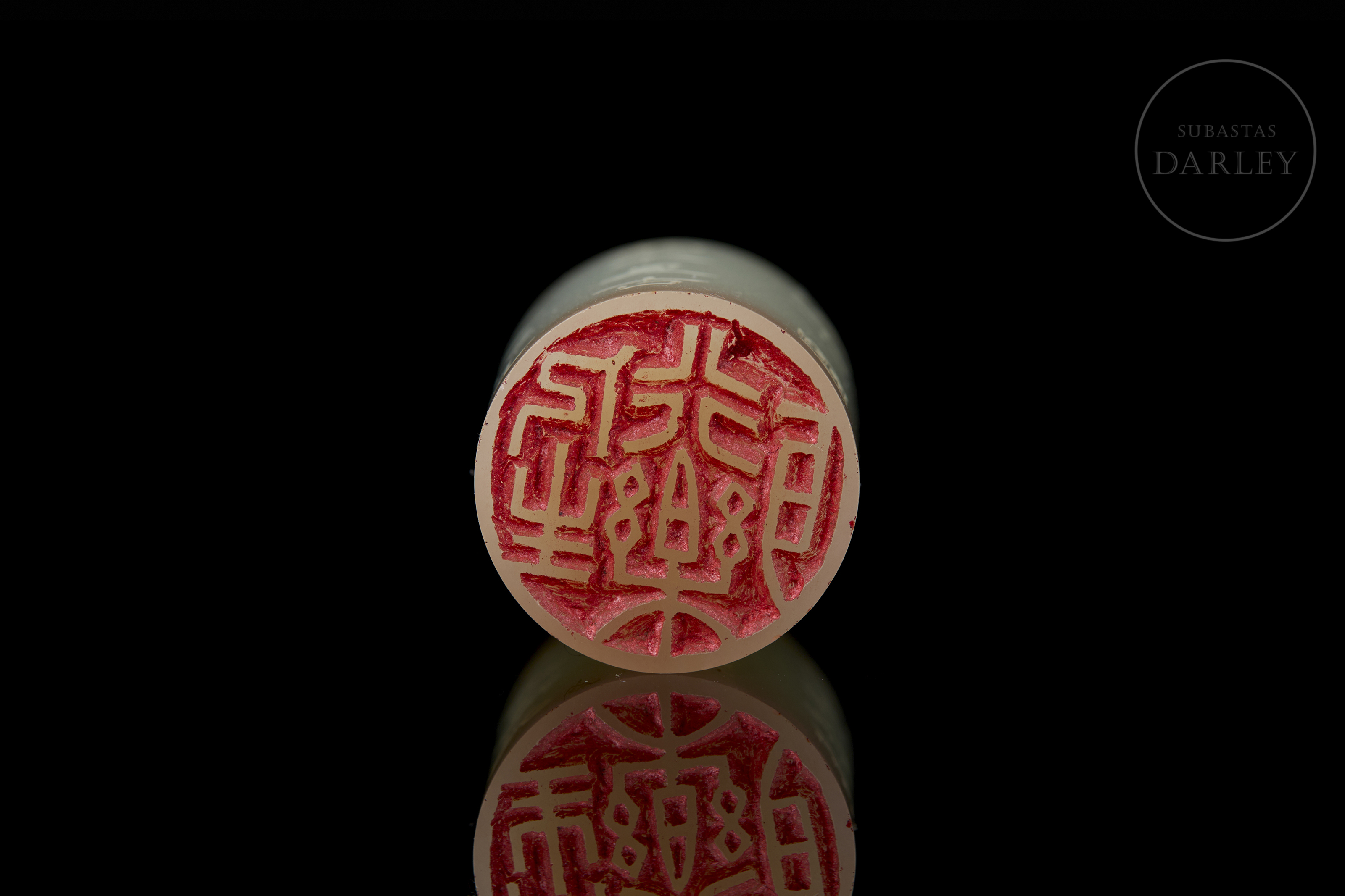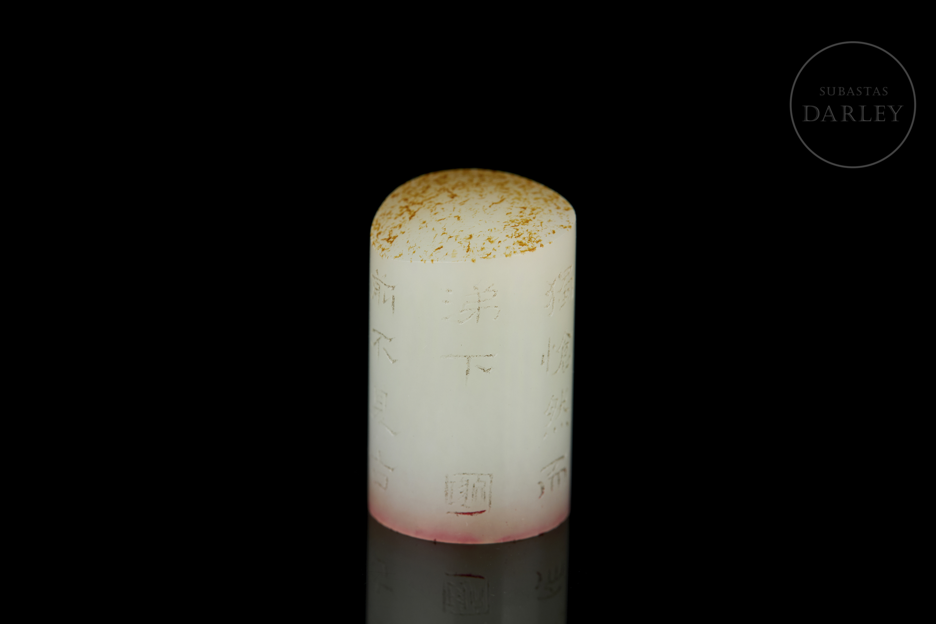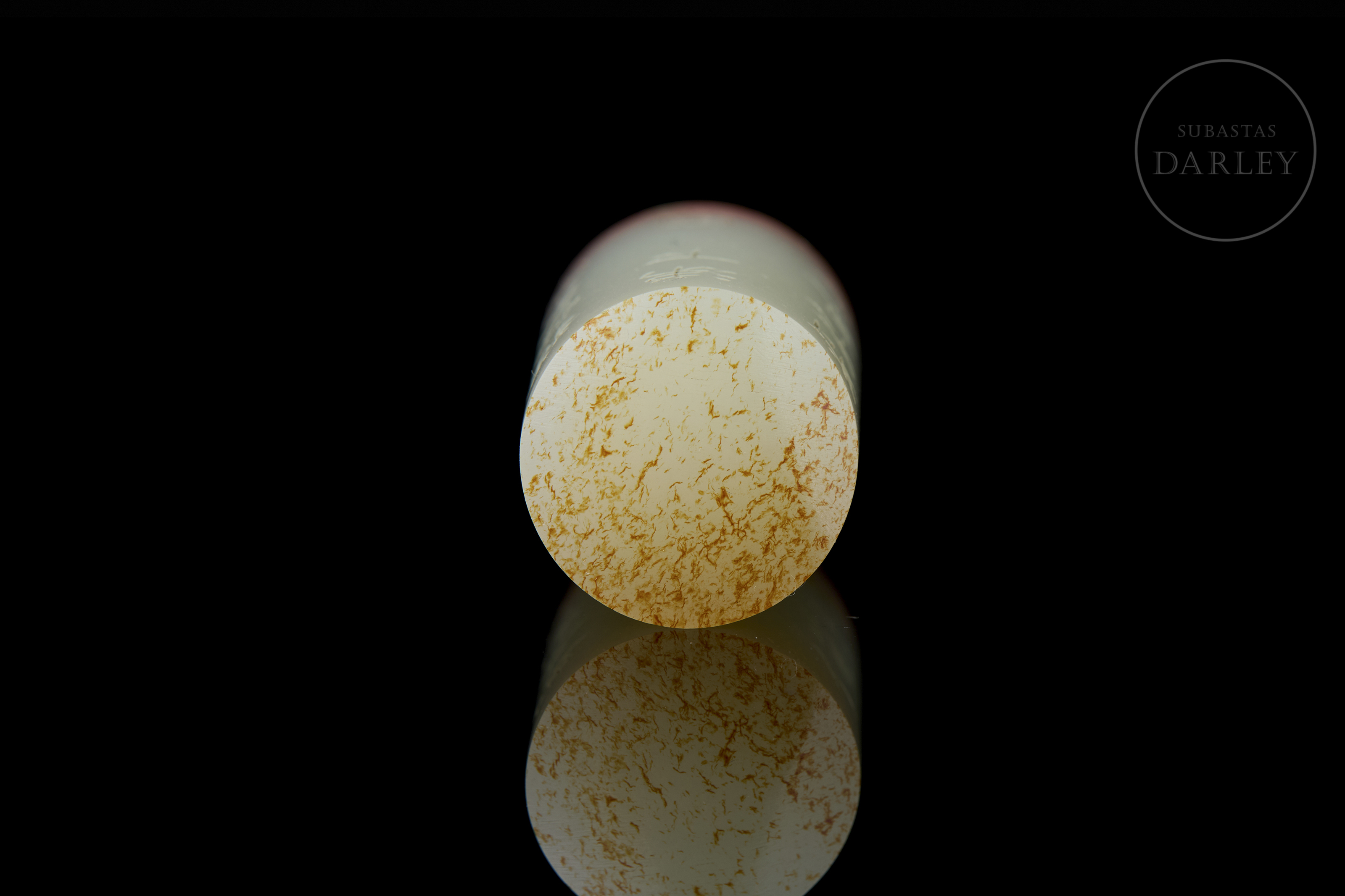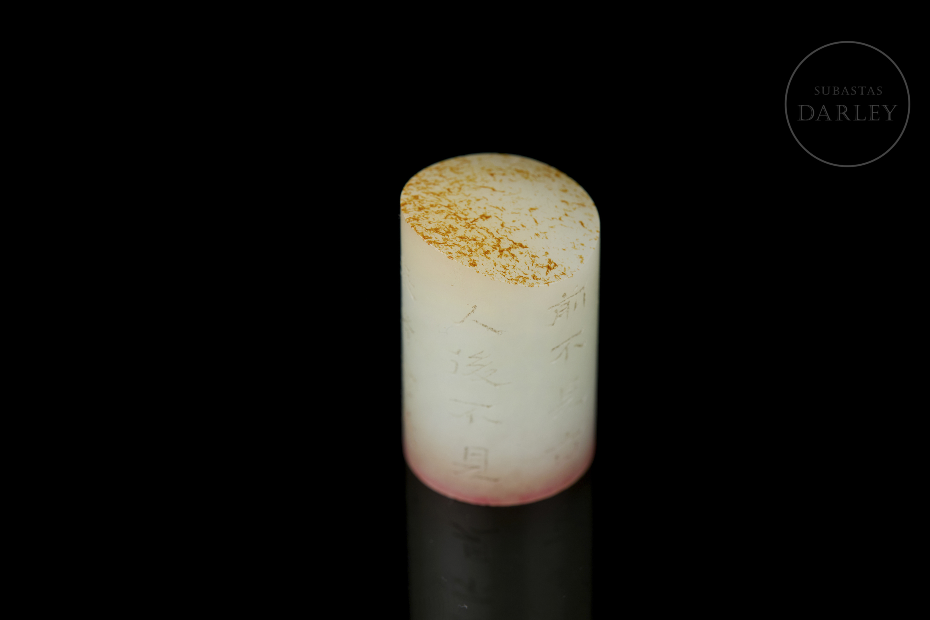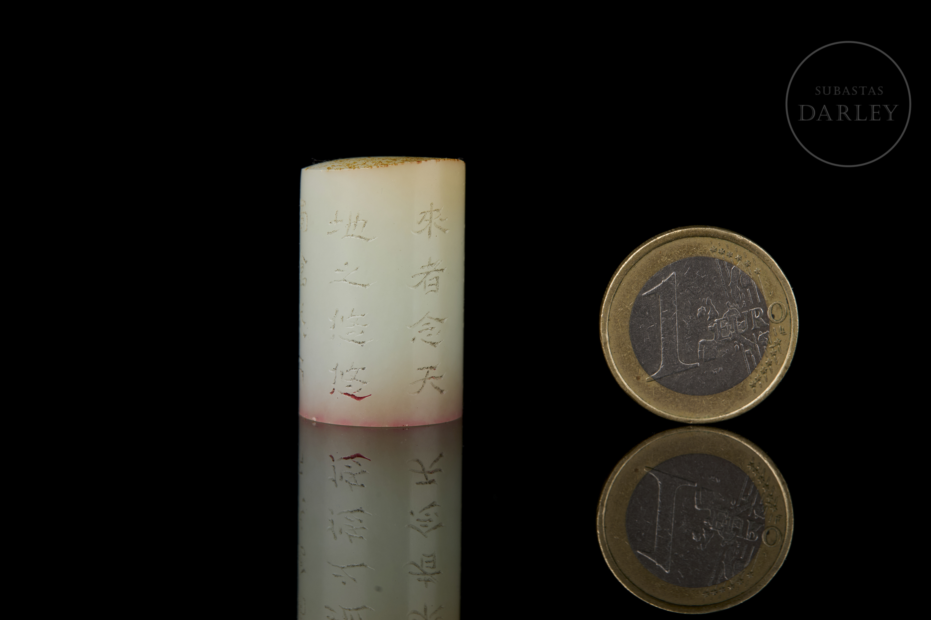 Sello cilíndrico de jade blanco "Poema", dinastía Qing
