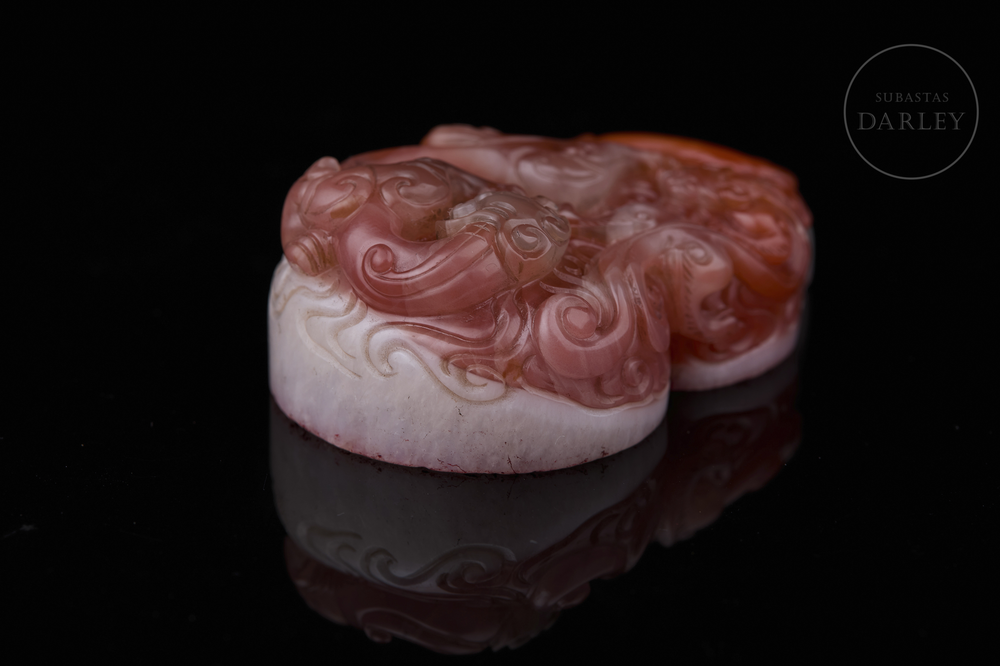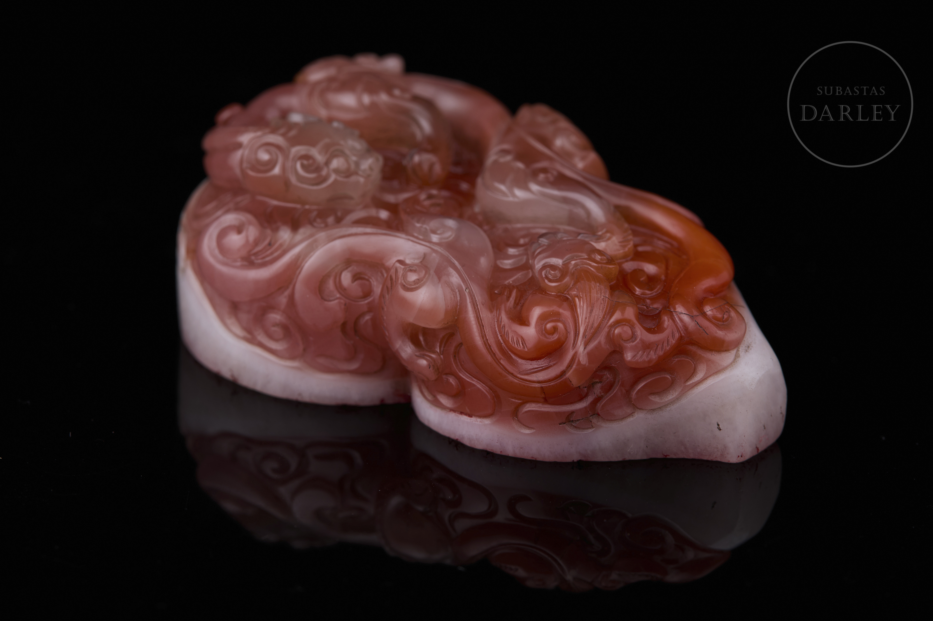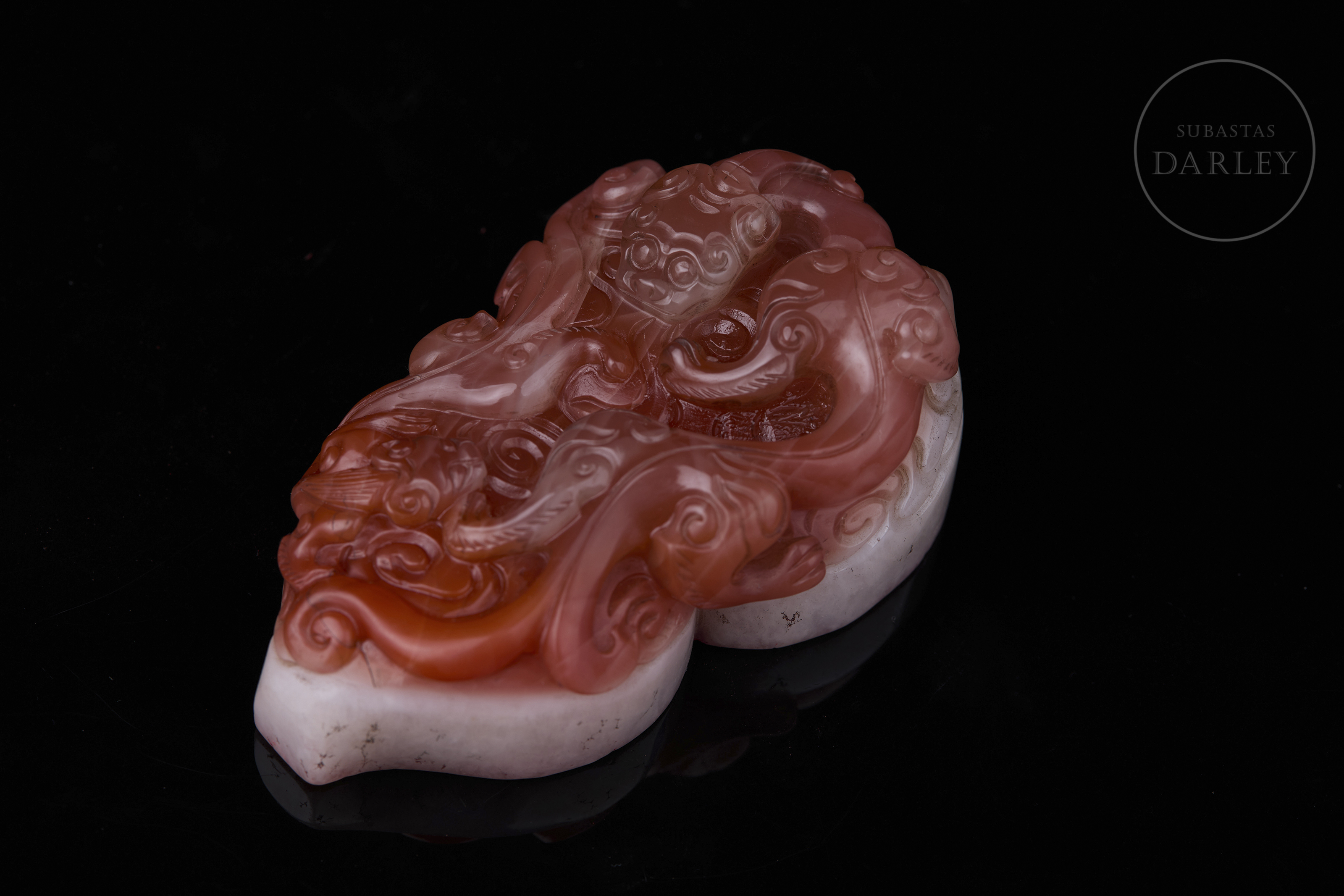 Sello de ágata Nanhong "Dragones en las nubes", dinastía Qing