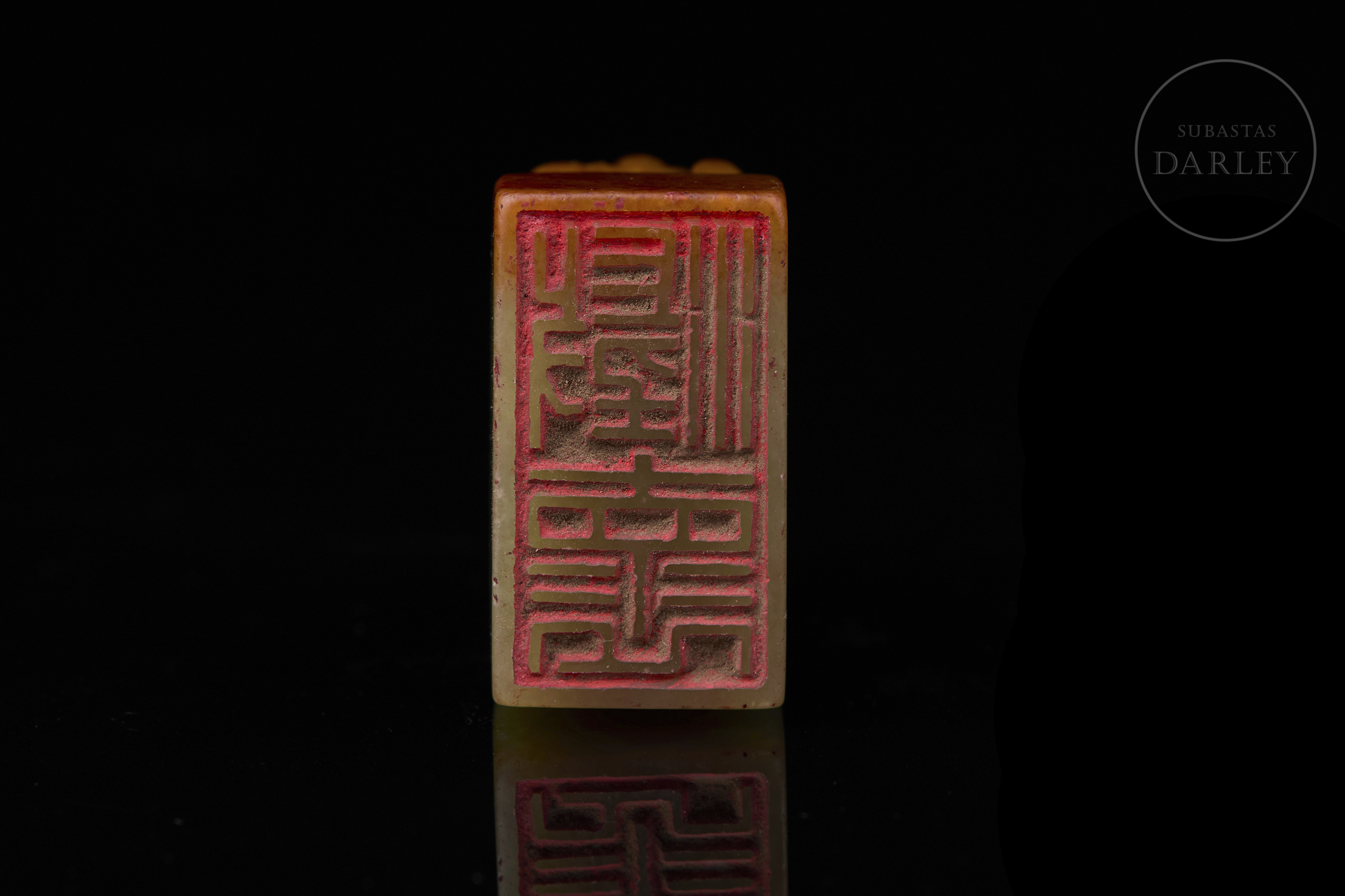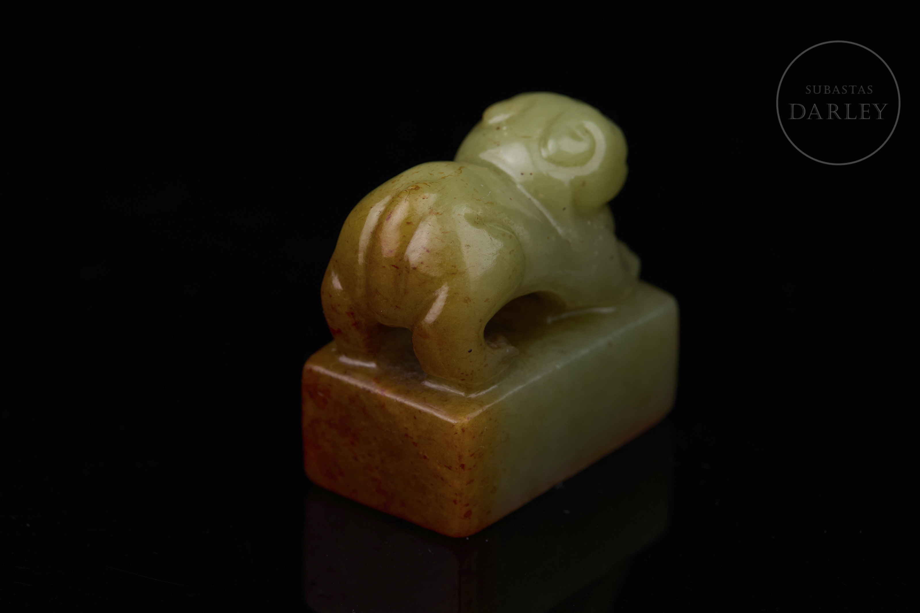 Sello de jade amarillo "Bestia en reverencia", dinastía Qing