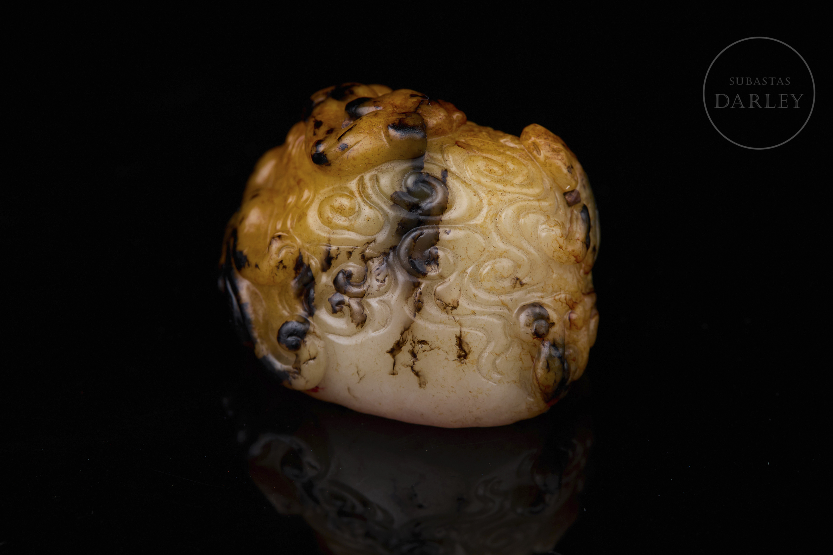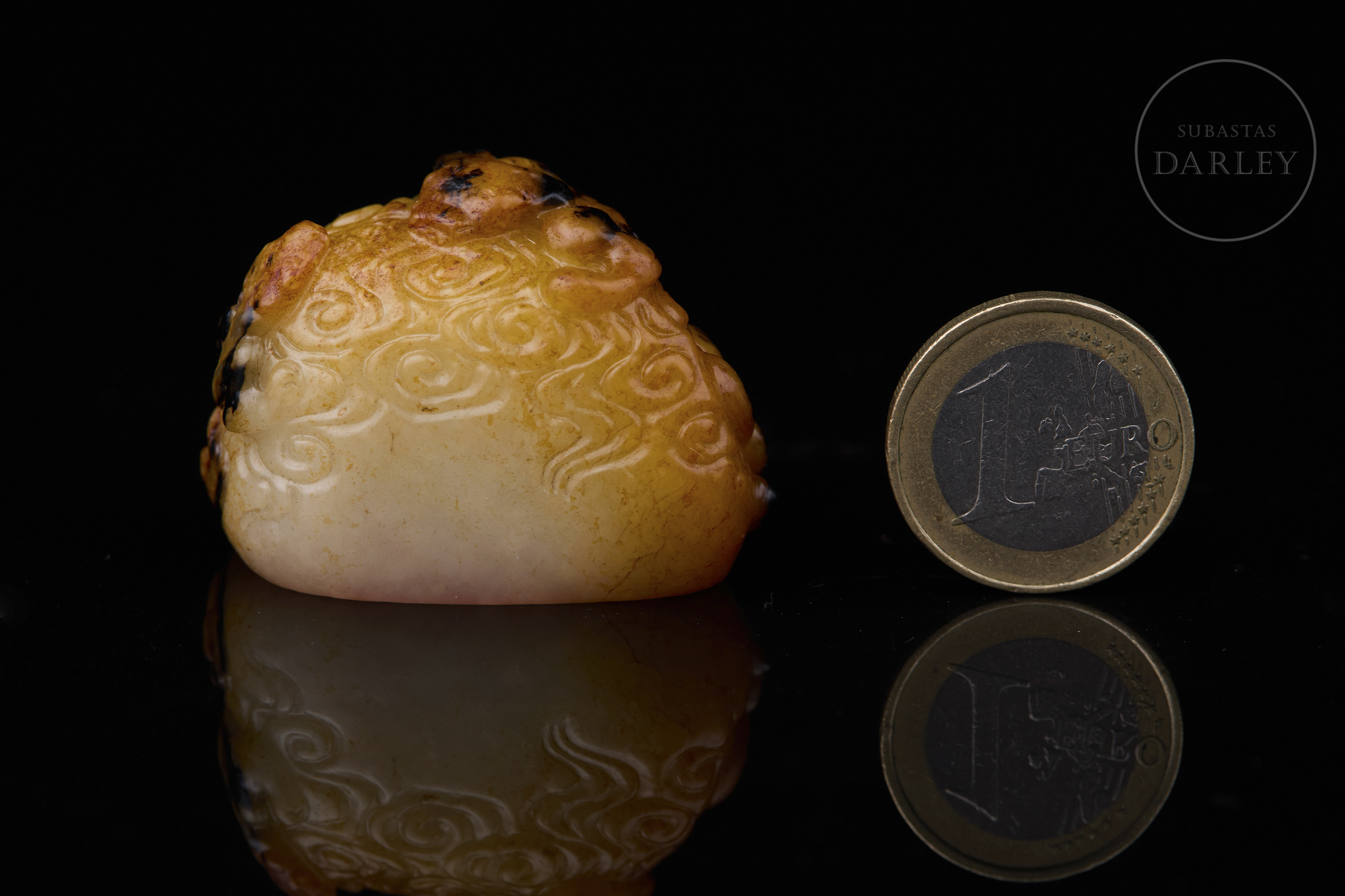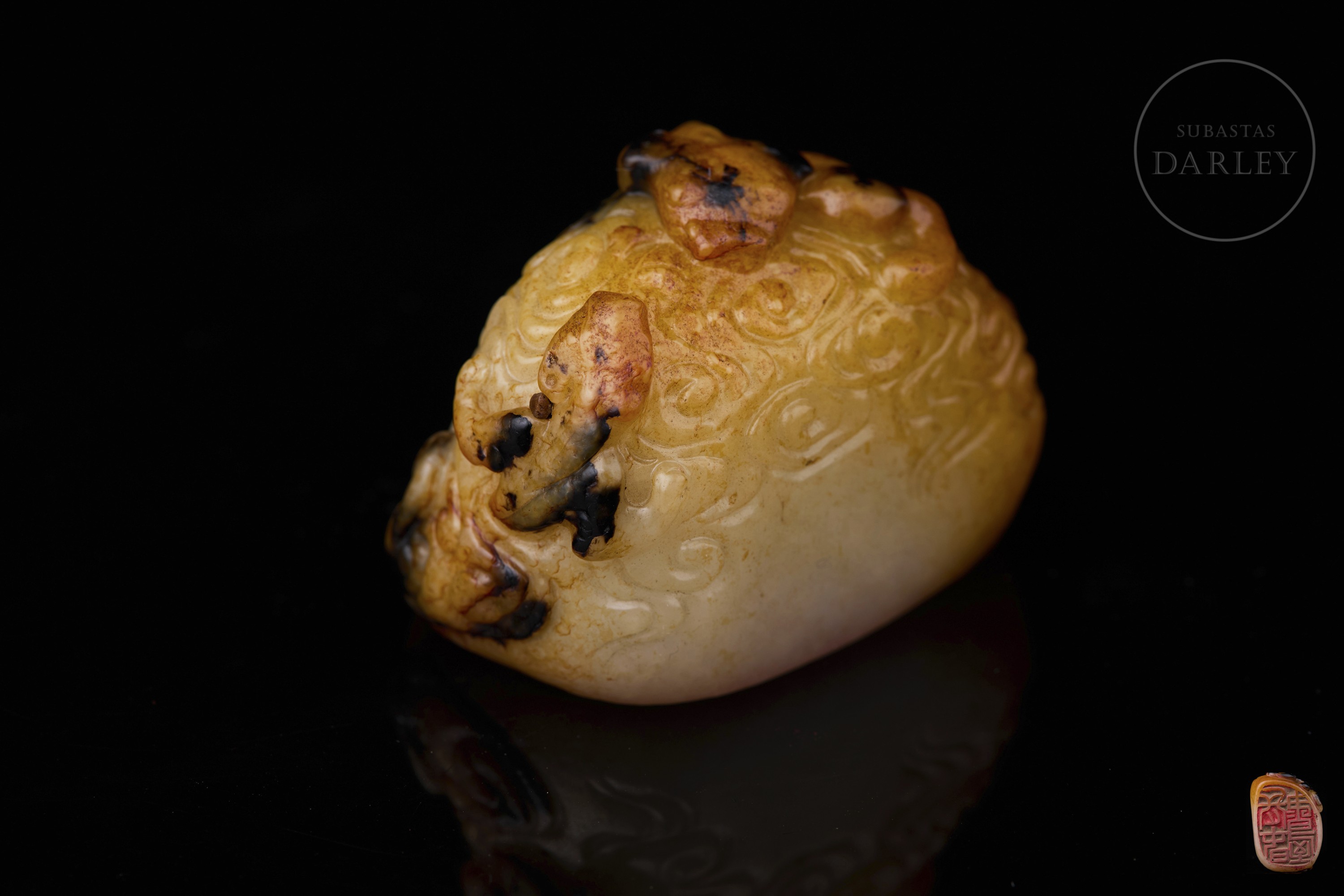 Sello de jade blanco de Hetian "Dragones entre nubes", dinastía Qing