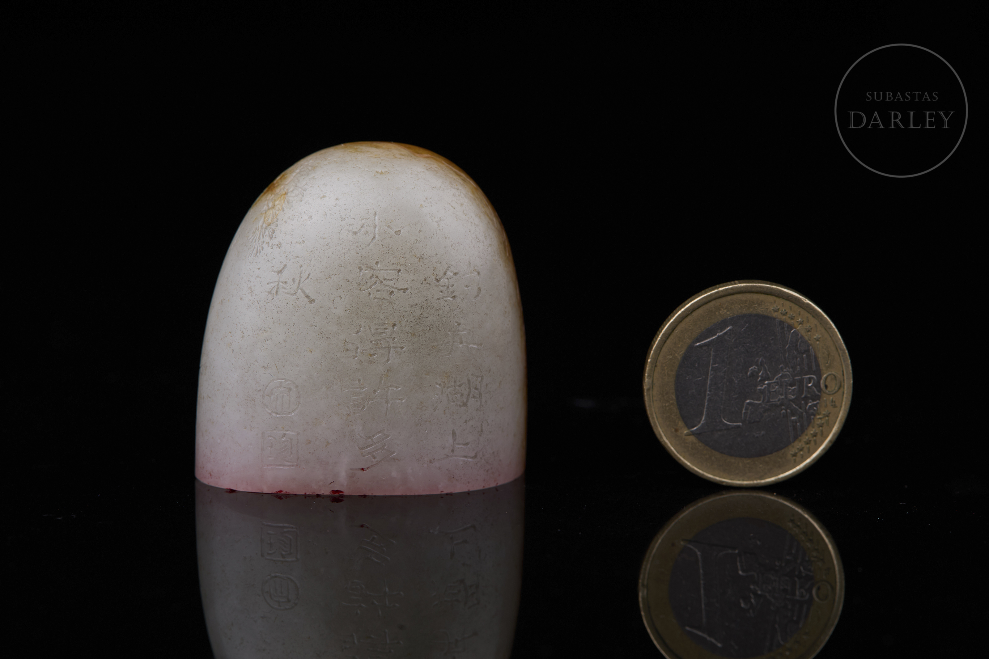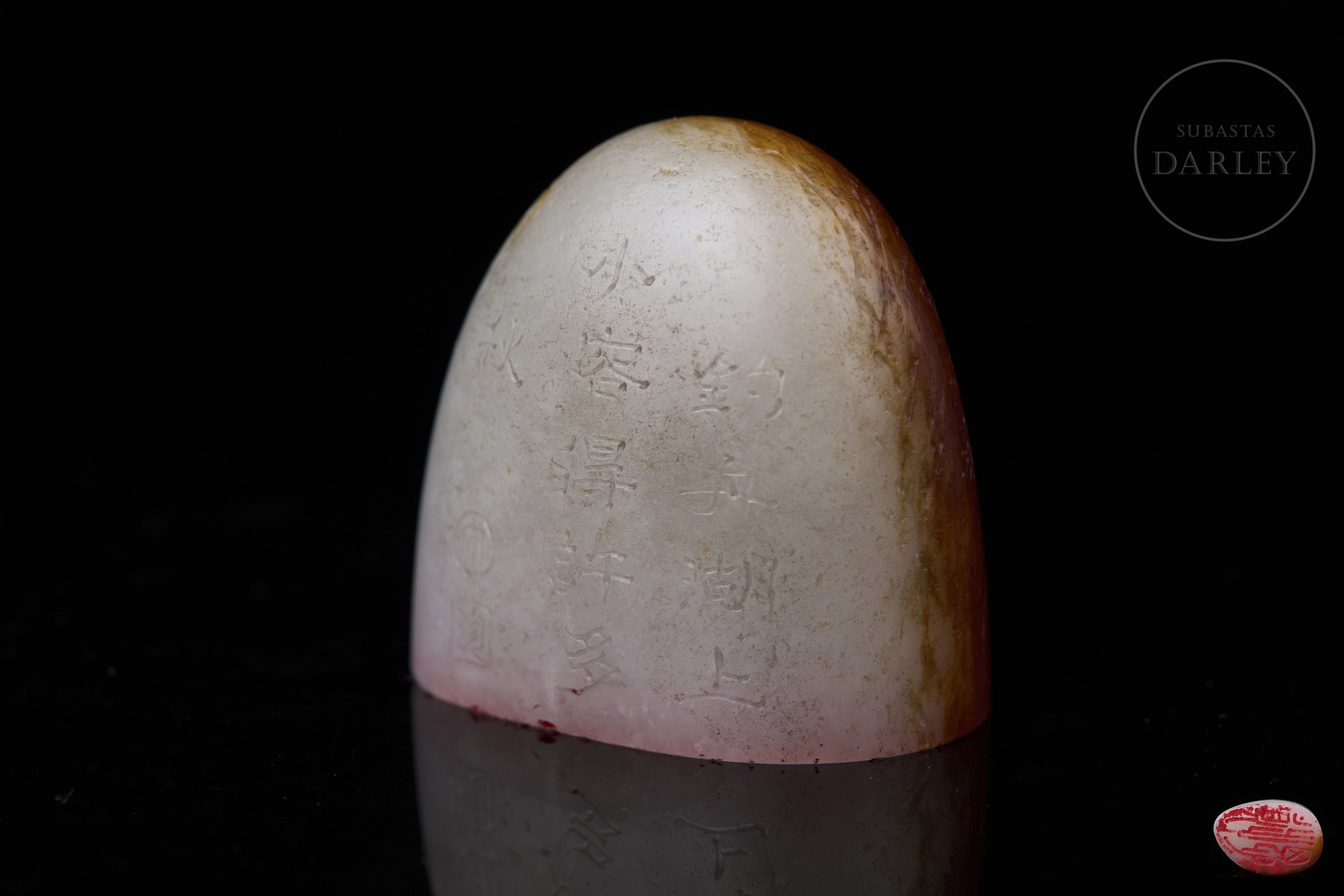 Sello de jade blanco de Hetian "Montaña y poema", dinastía Qing