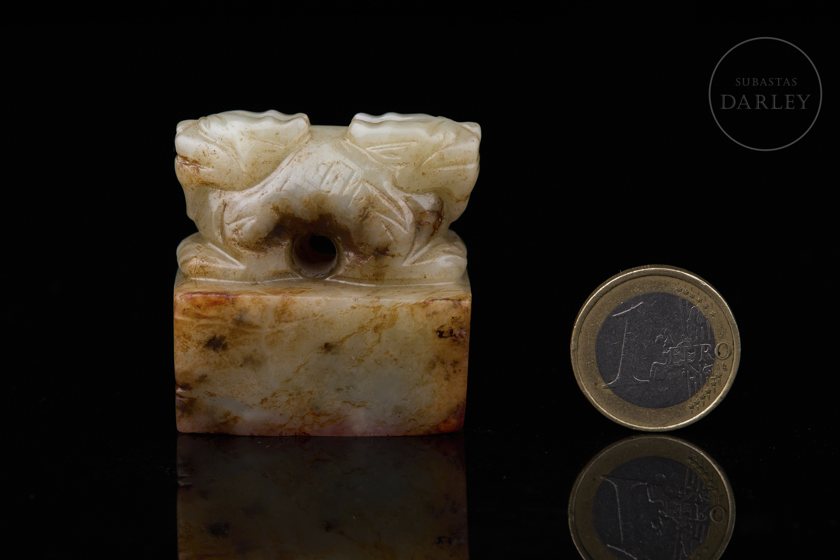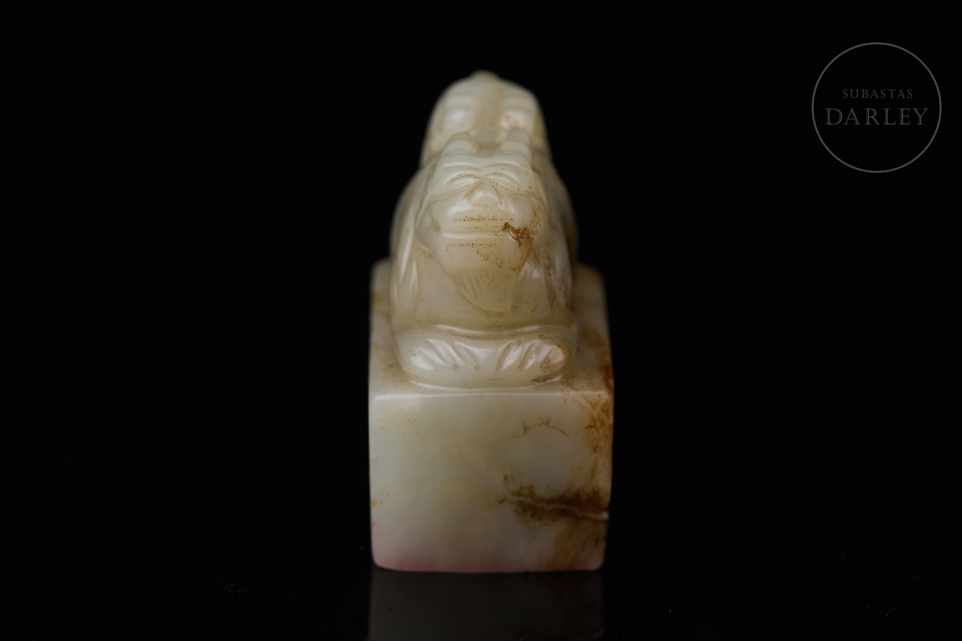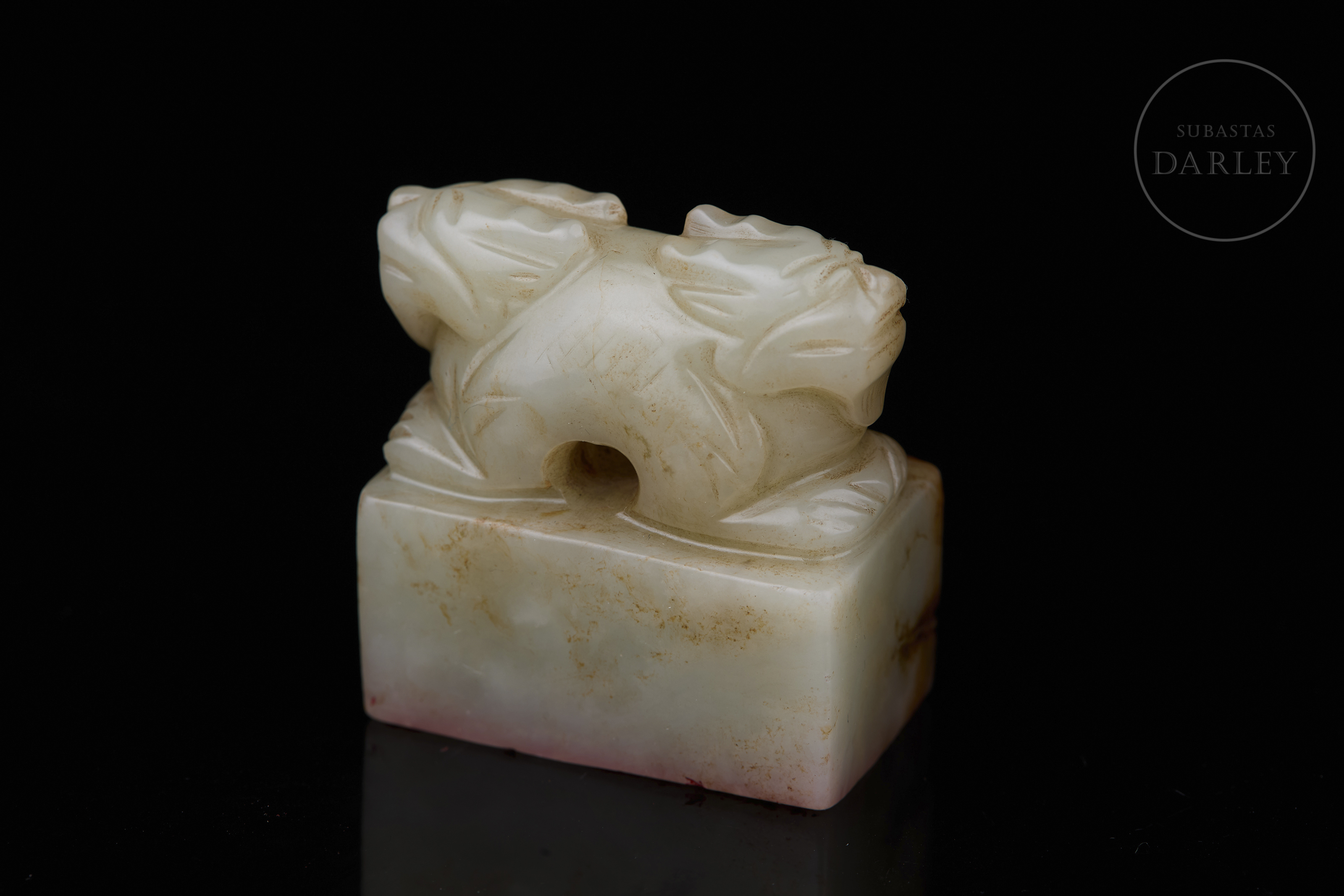 Sello de jade blanco "Doble dragón", dinastía Qing