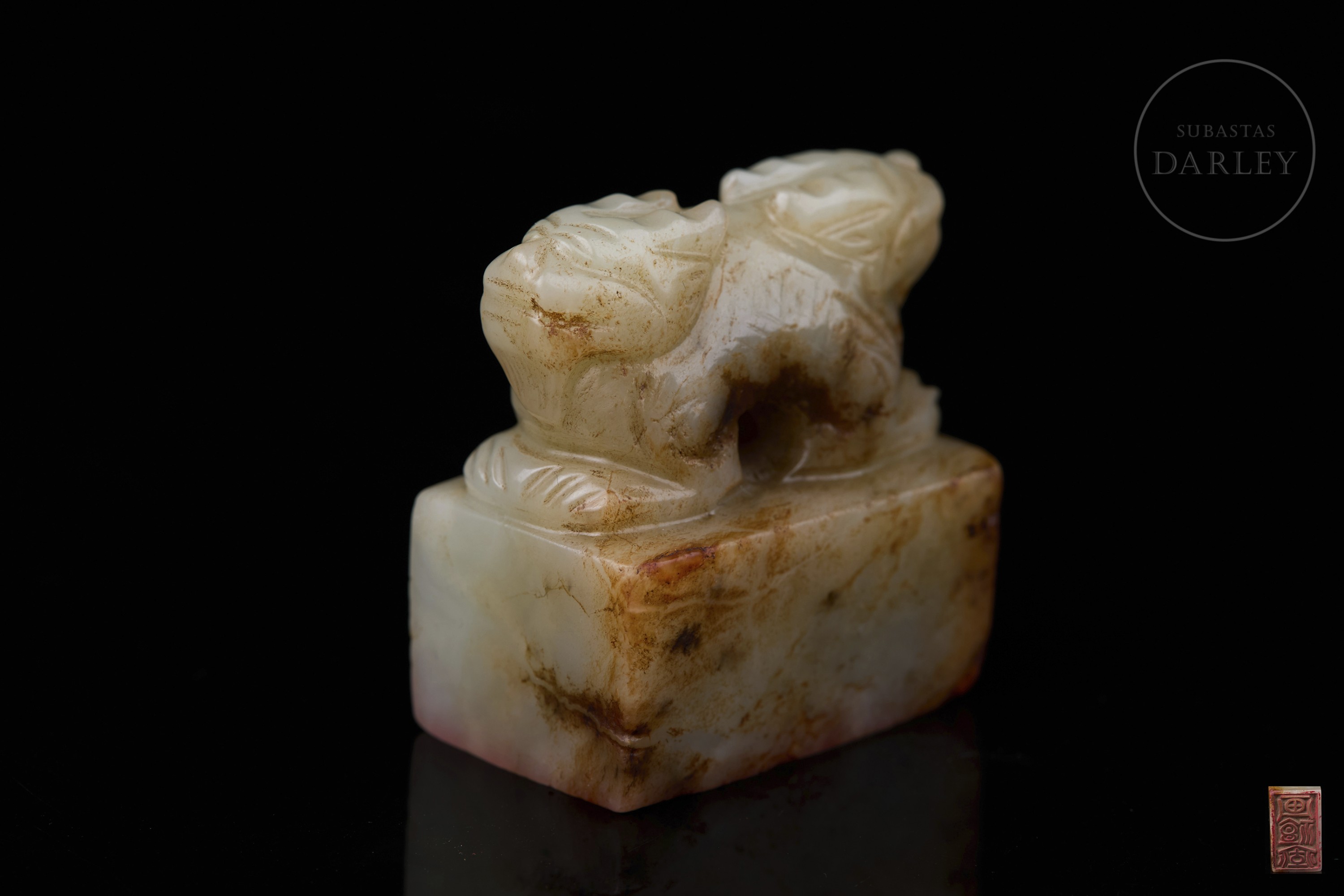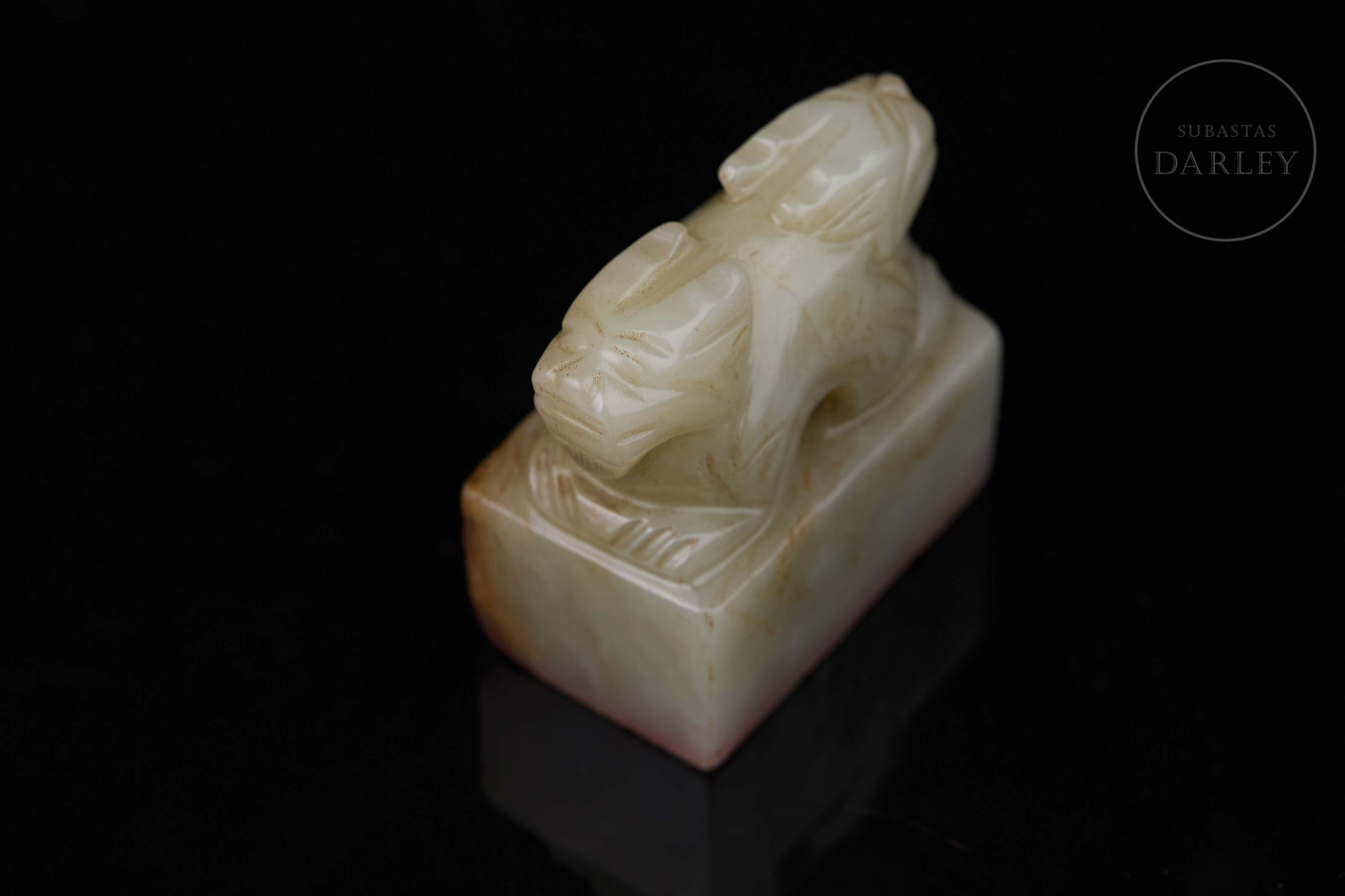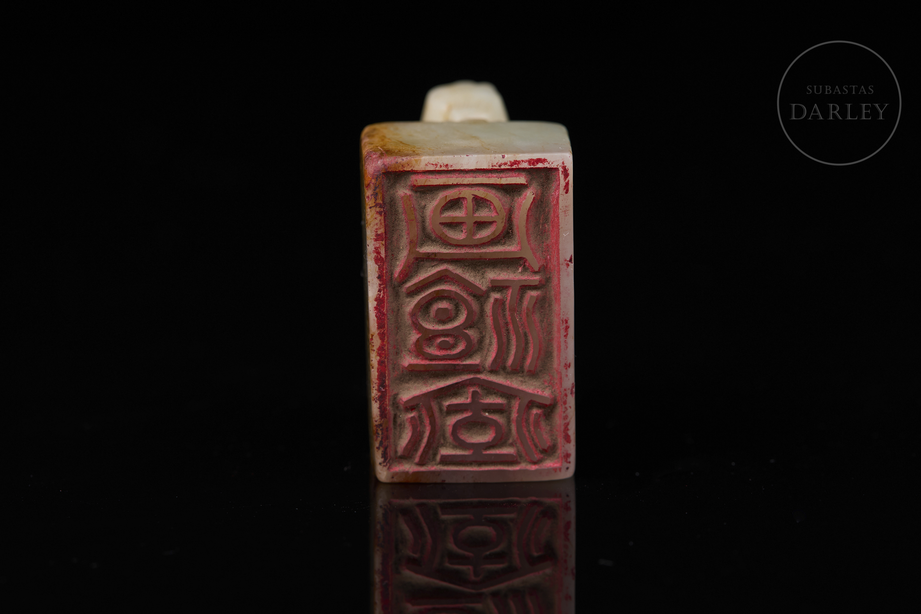 Sello de jade blanco "Doble dragón", dinastía Qing