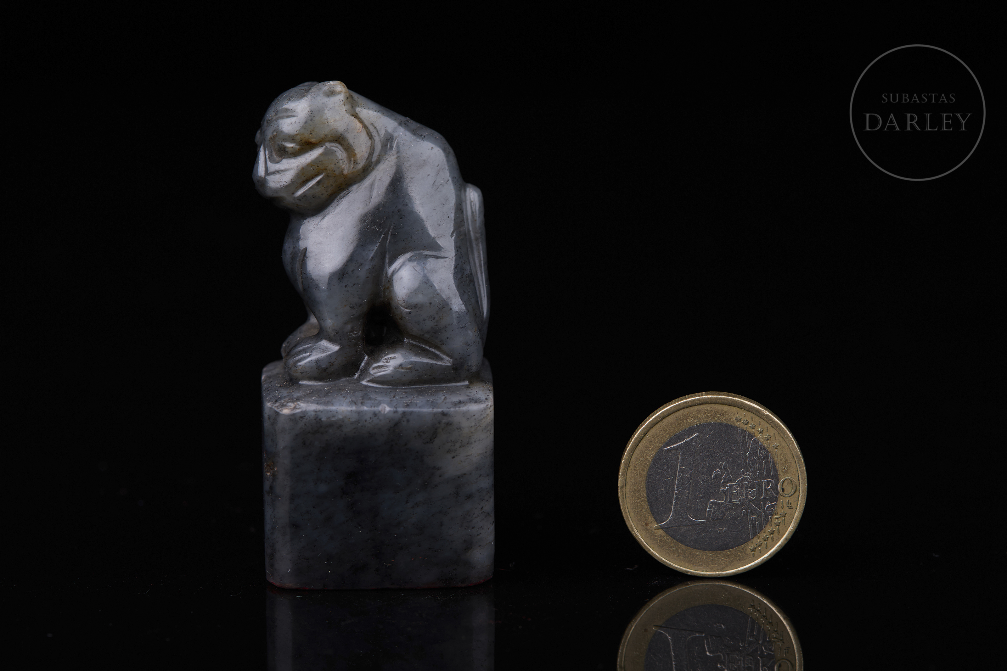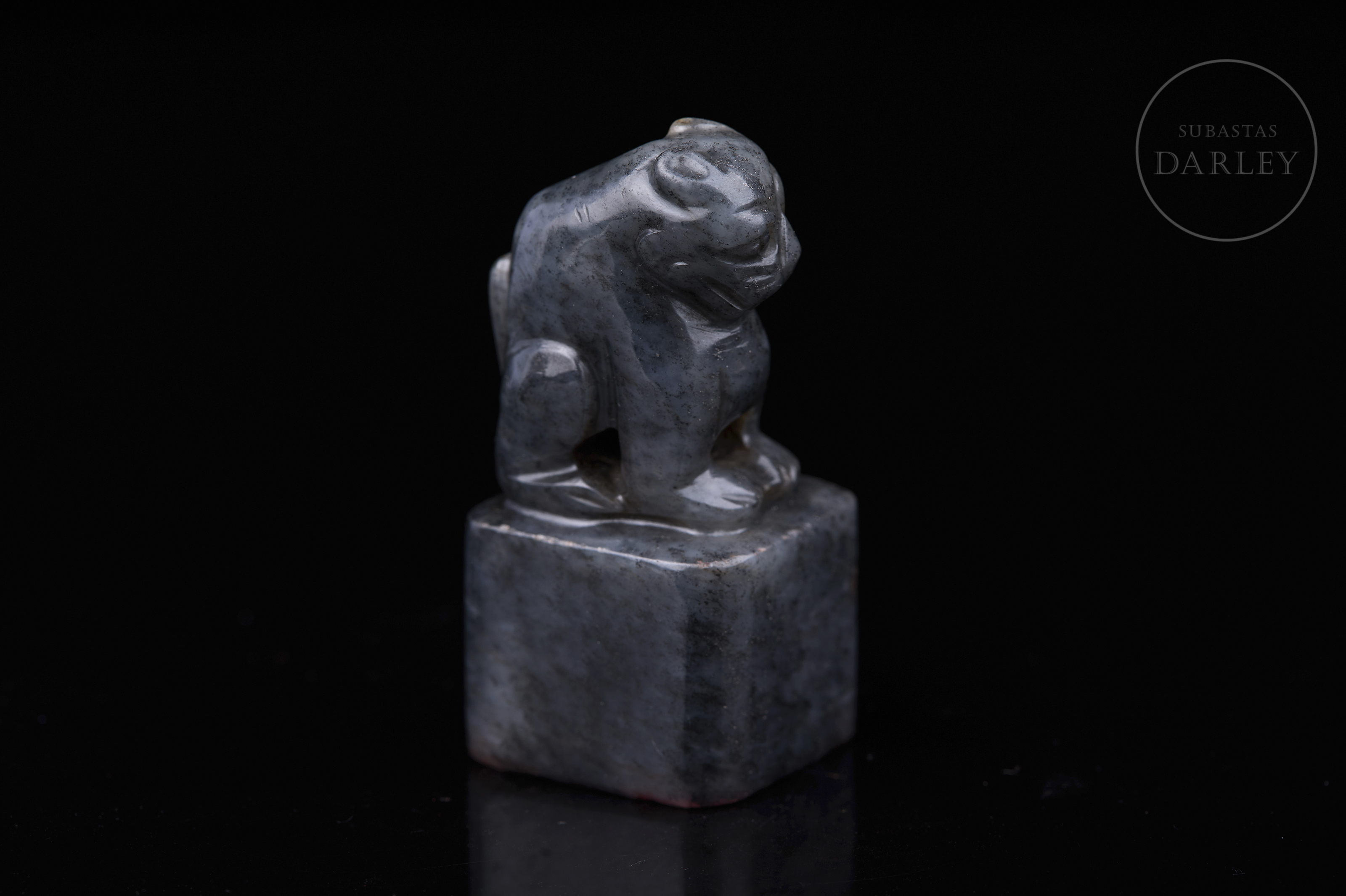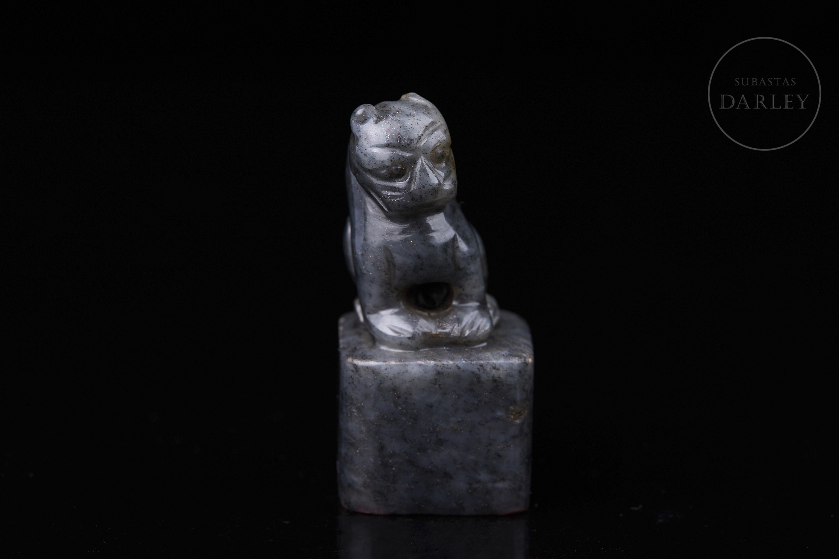 Sello de jade gris "Bestia sedente", dinastía Qing