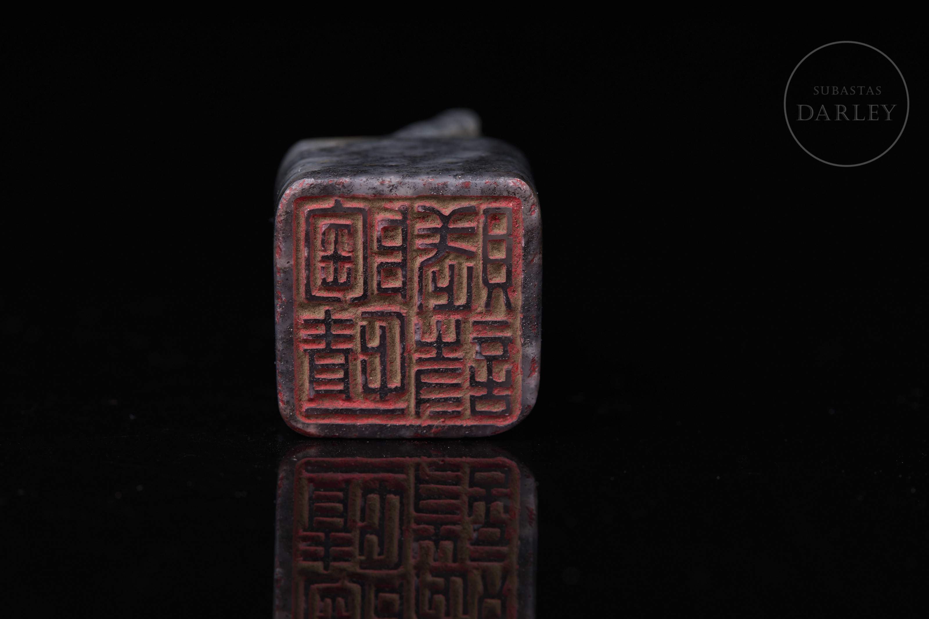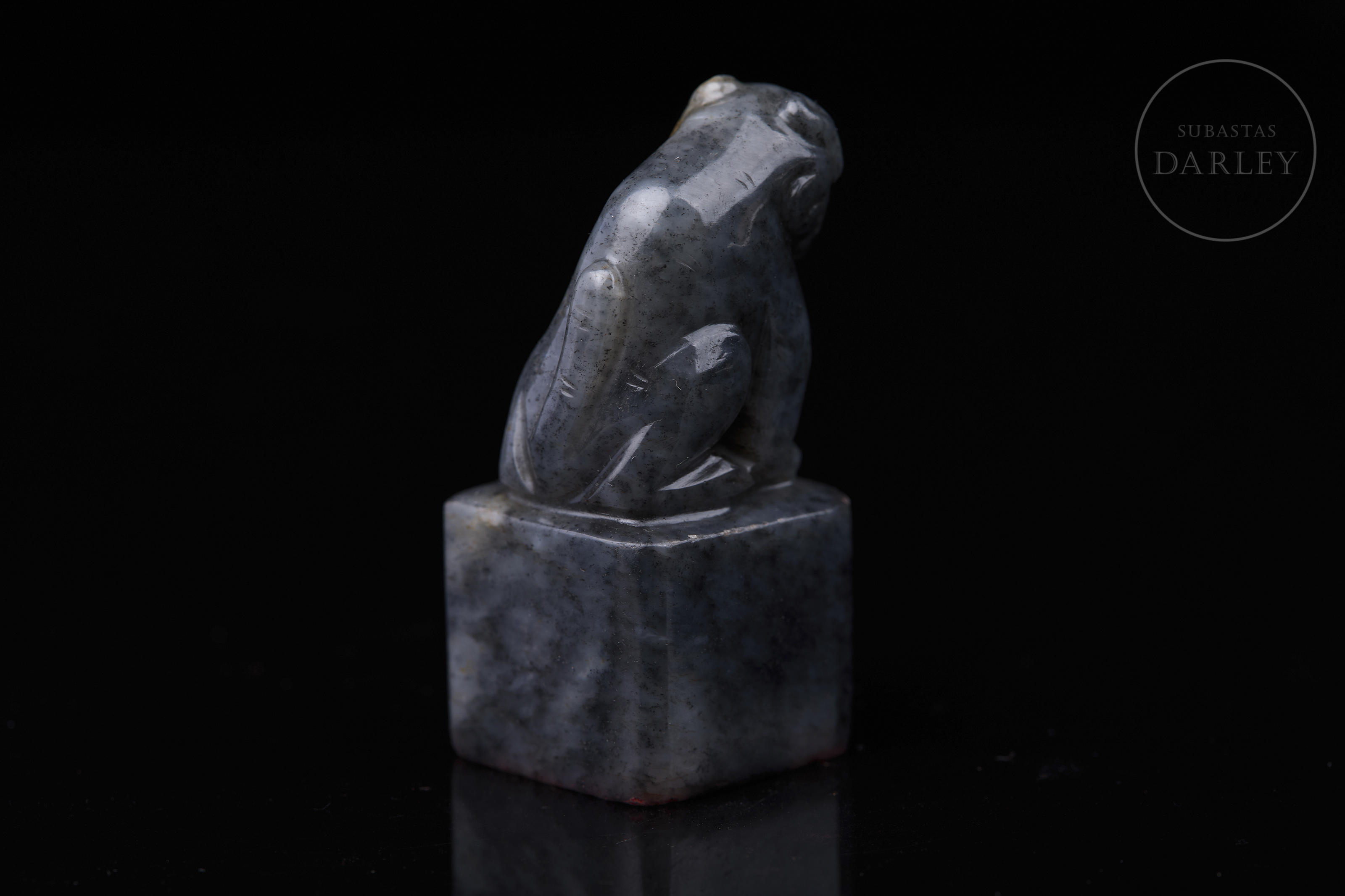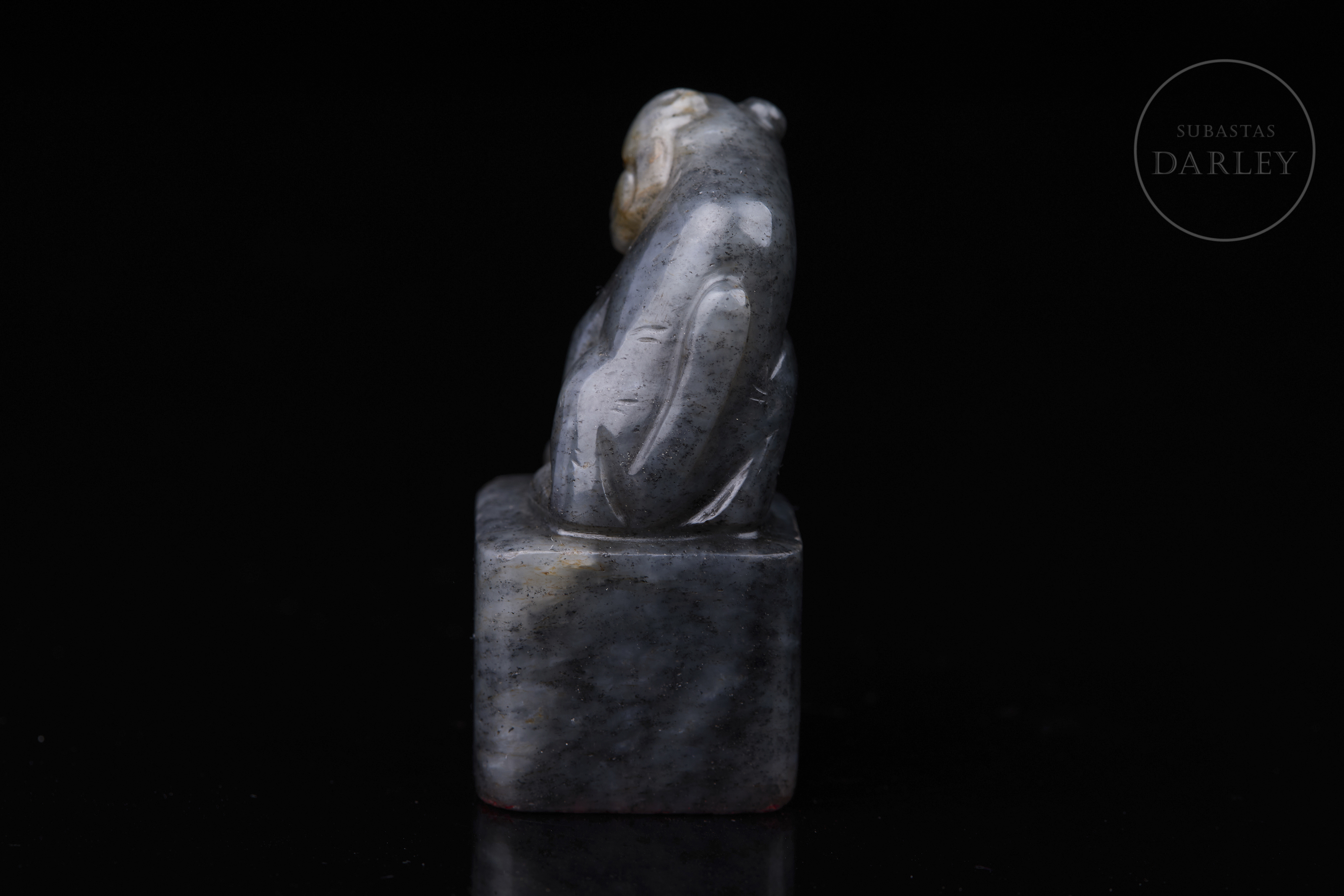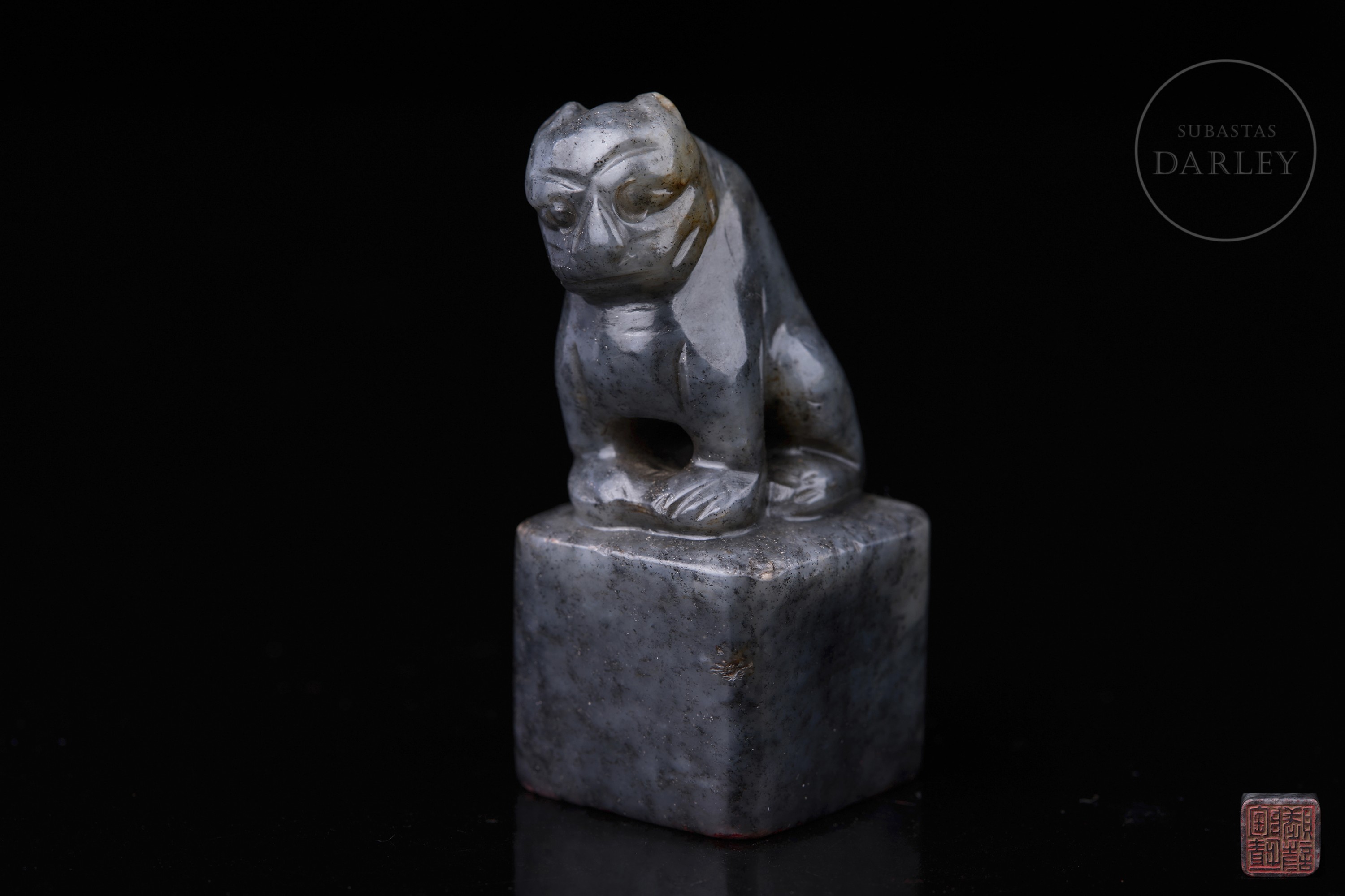 Sello de jade gris "Bestia sedente", dinastía Qing