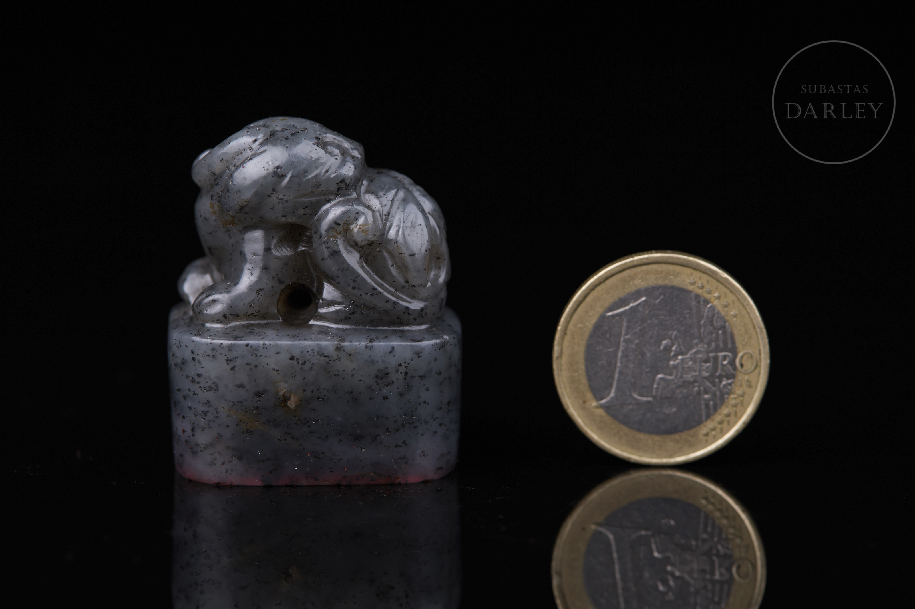 Sello de jade gris de Hetian "León", dinastía Qing
