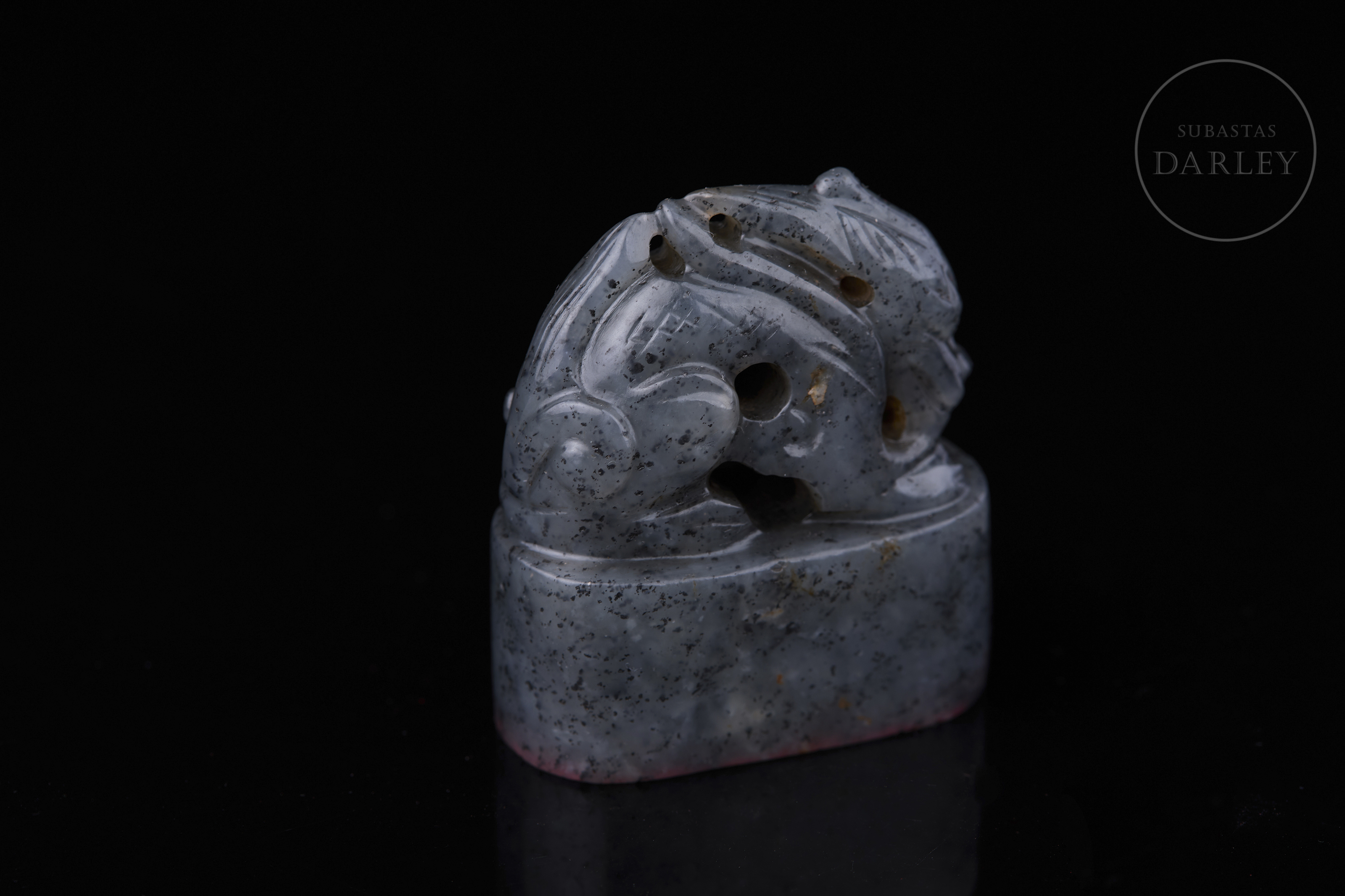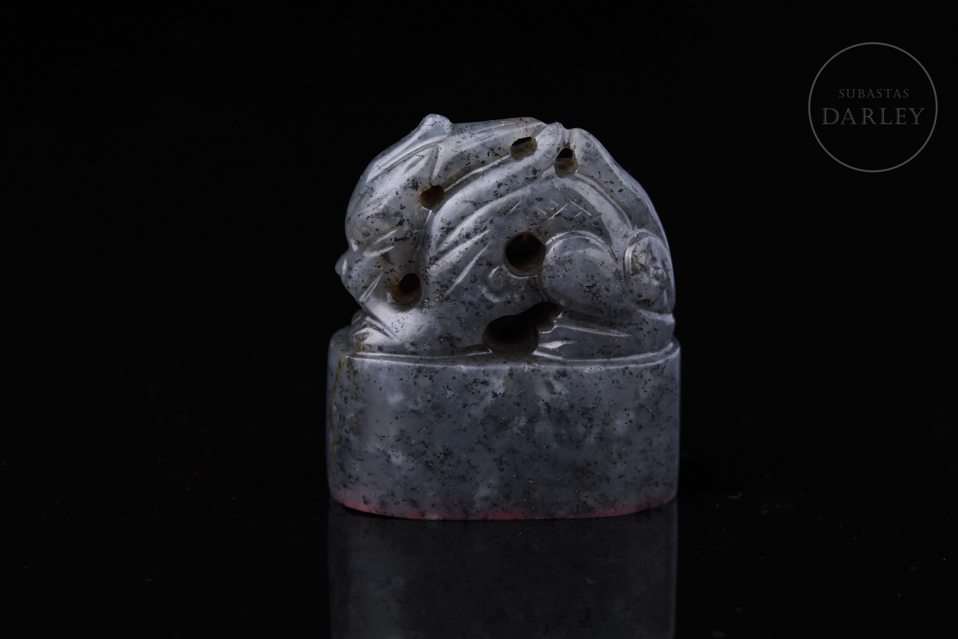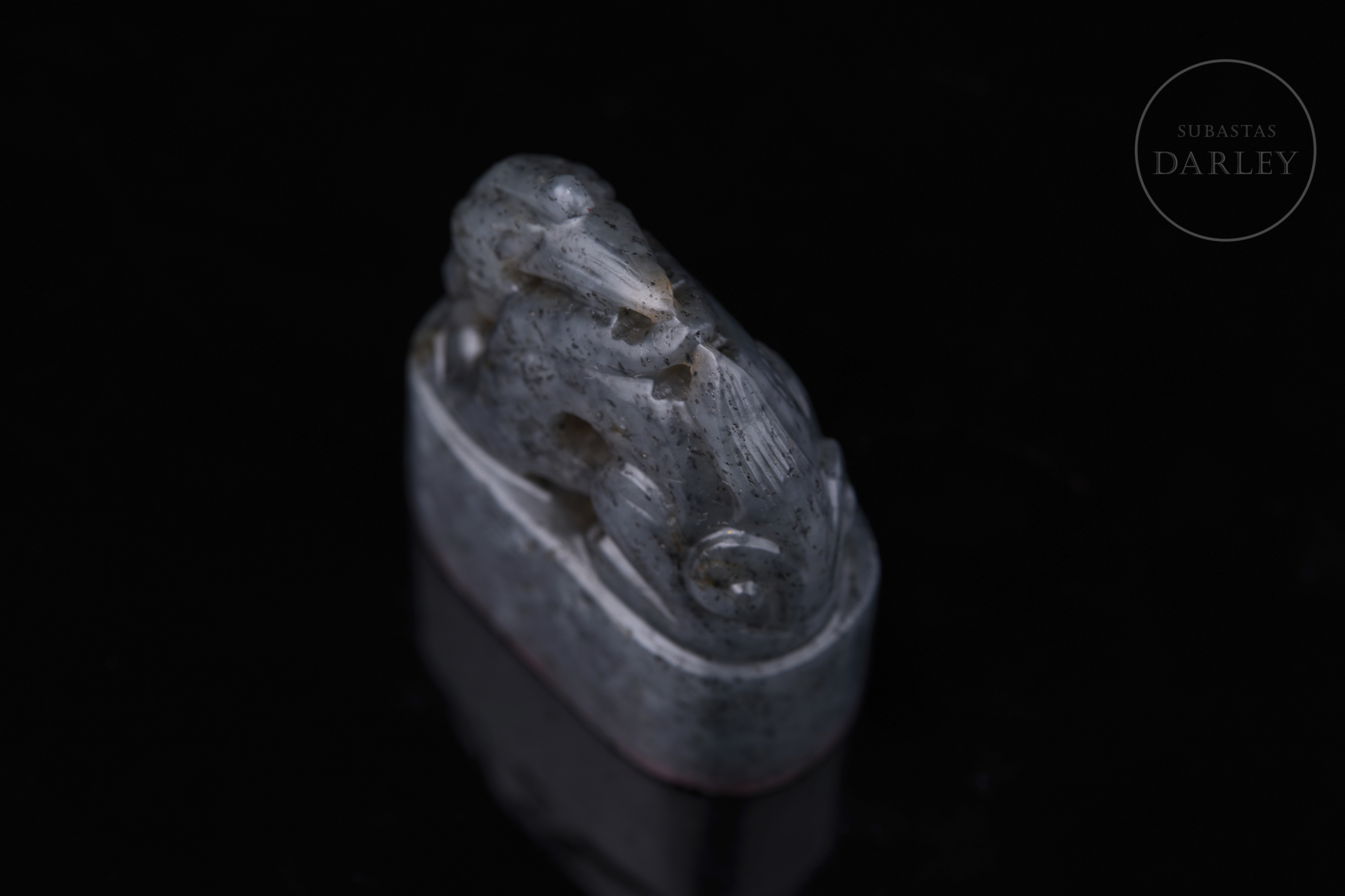 Sello de jade gris "Feroz dragón", dinastía Qing