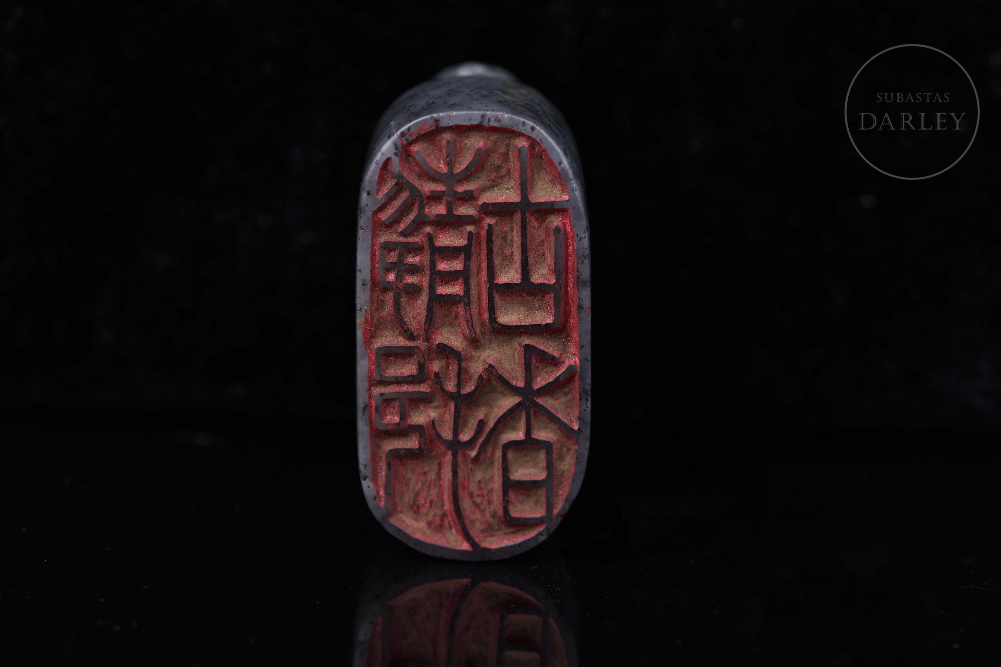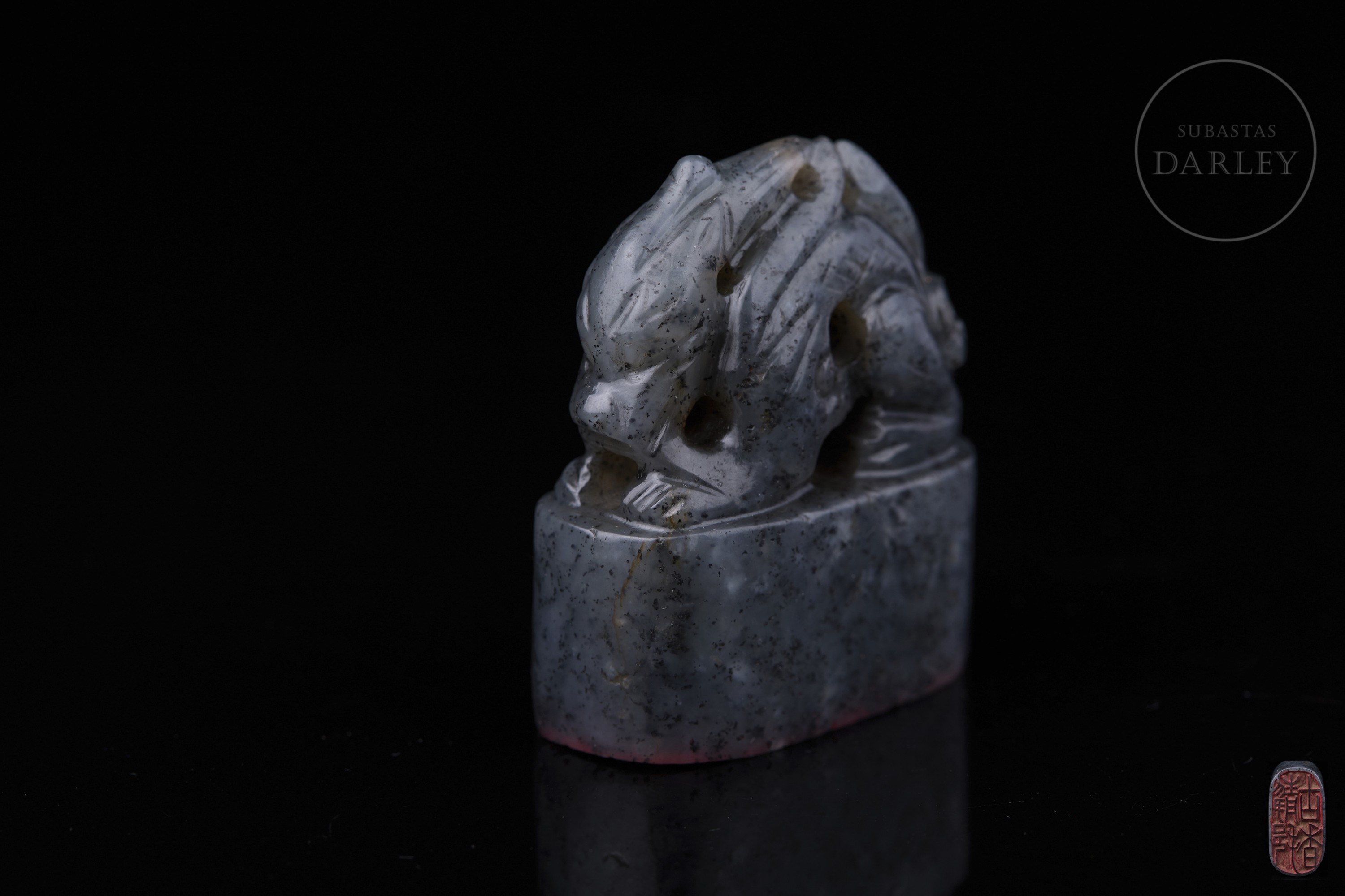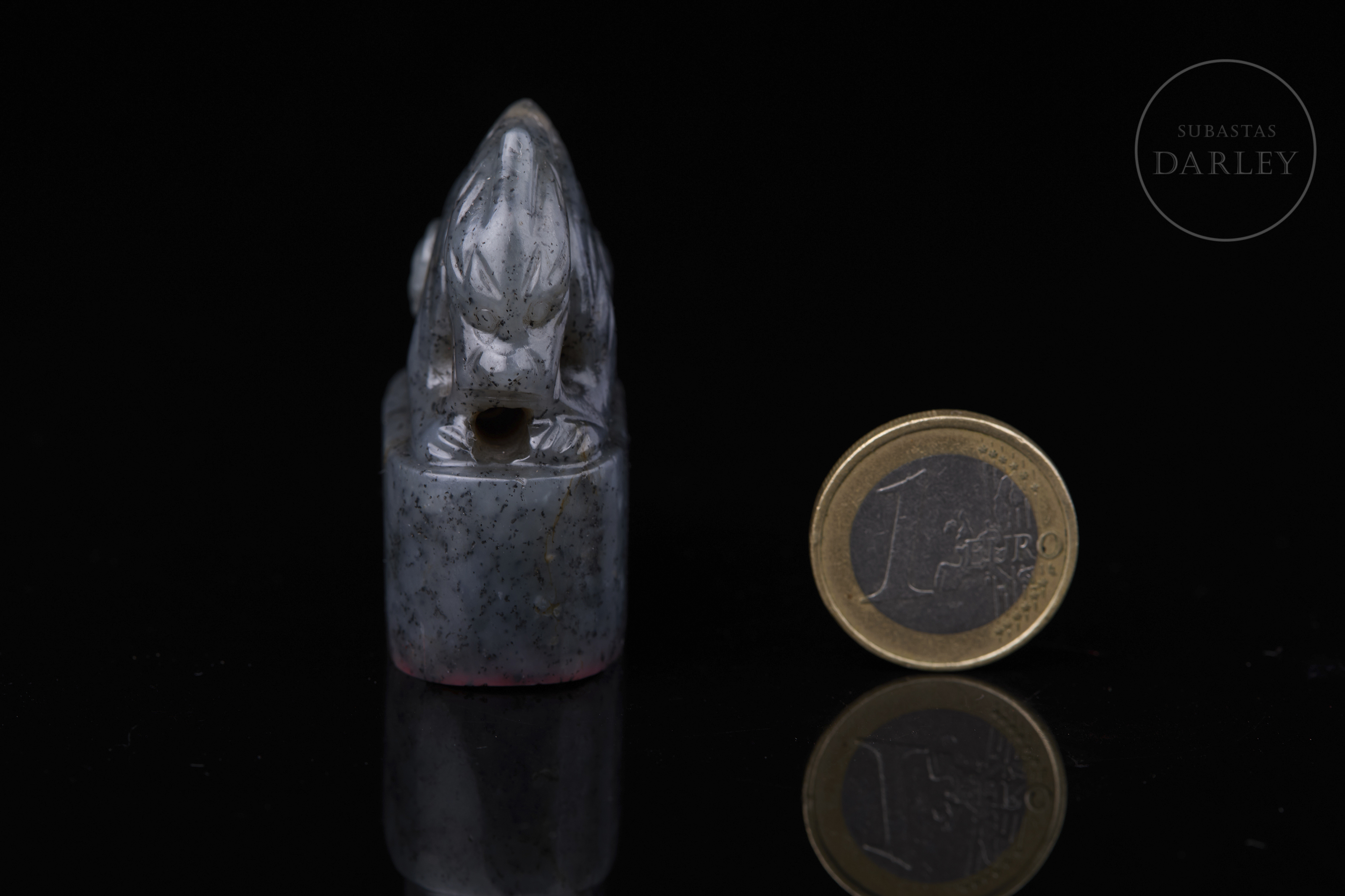 Sello de jade gris "Feroz dragón", dinastía Qing