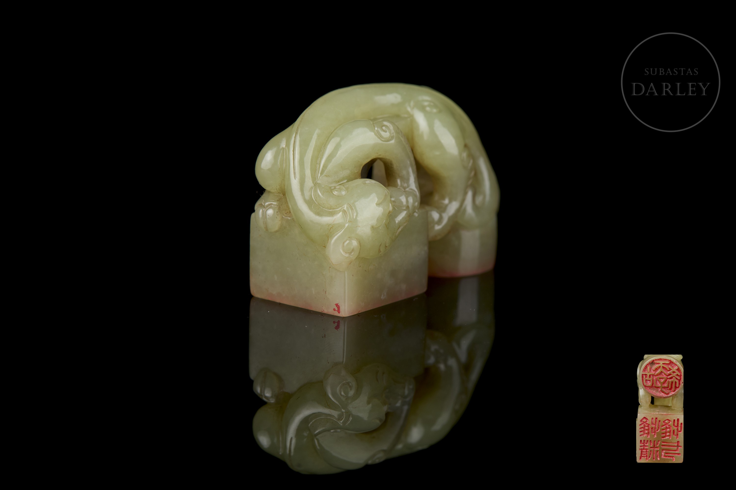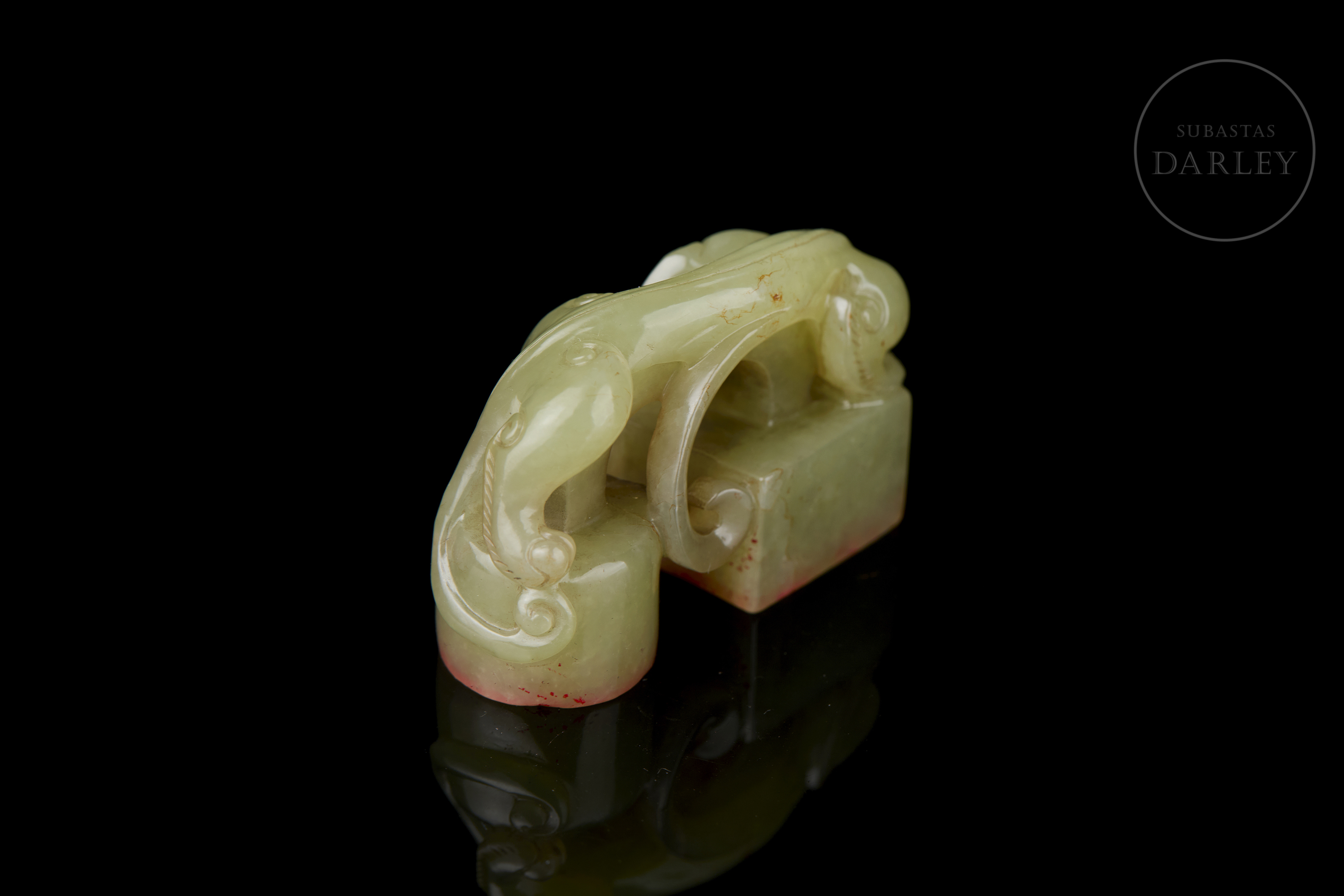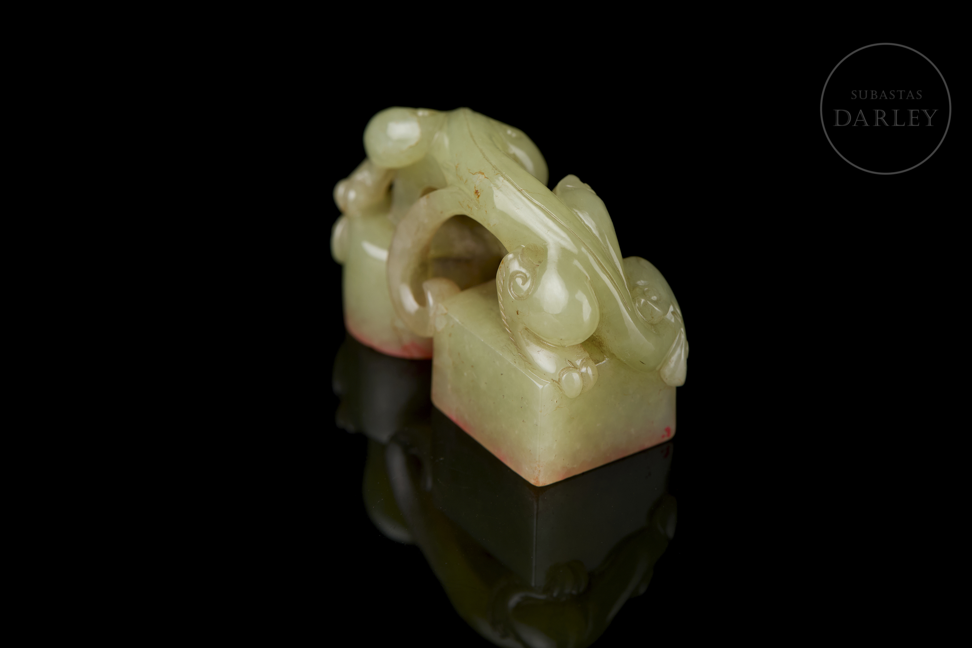 Sello doble de jade amarillo “Criatura”, dinastía Qing