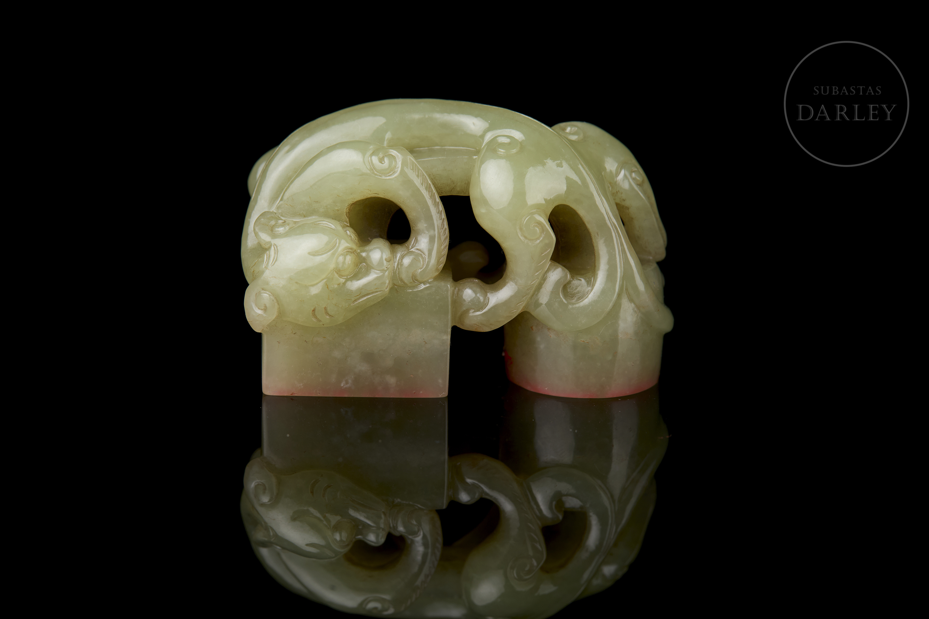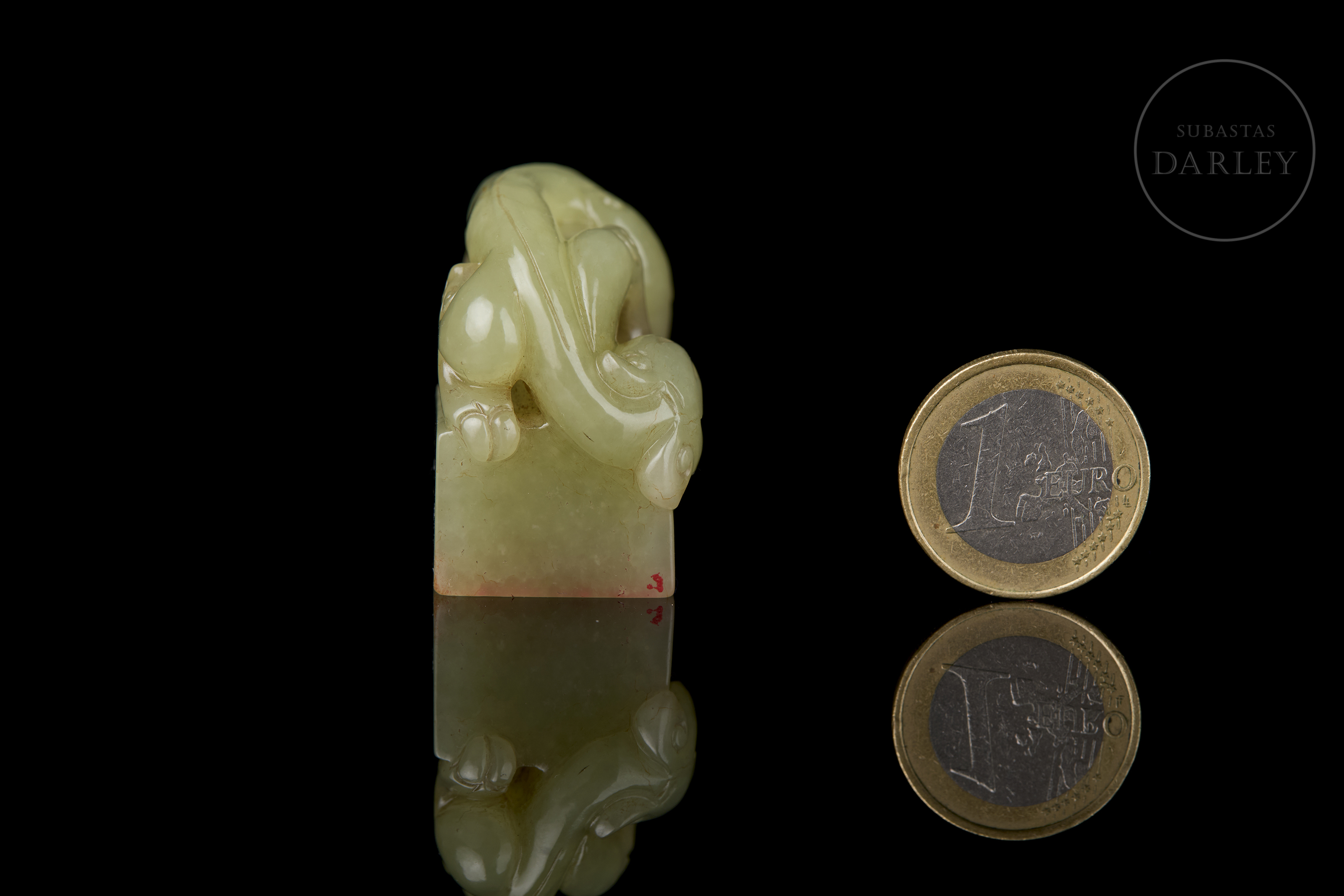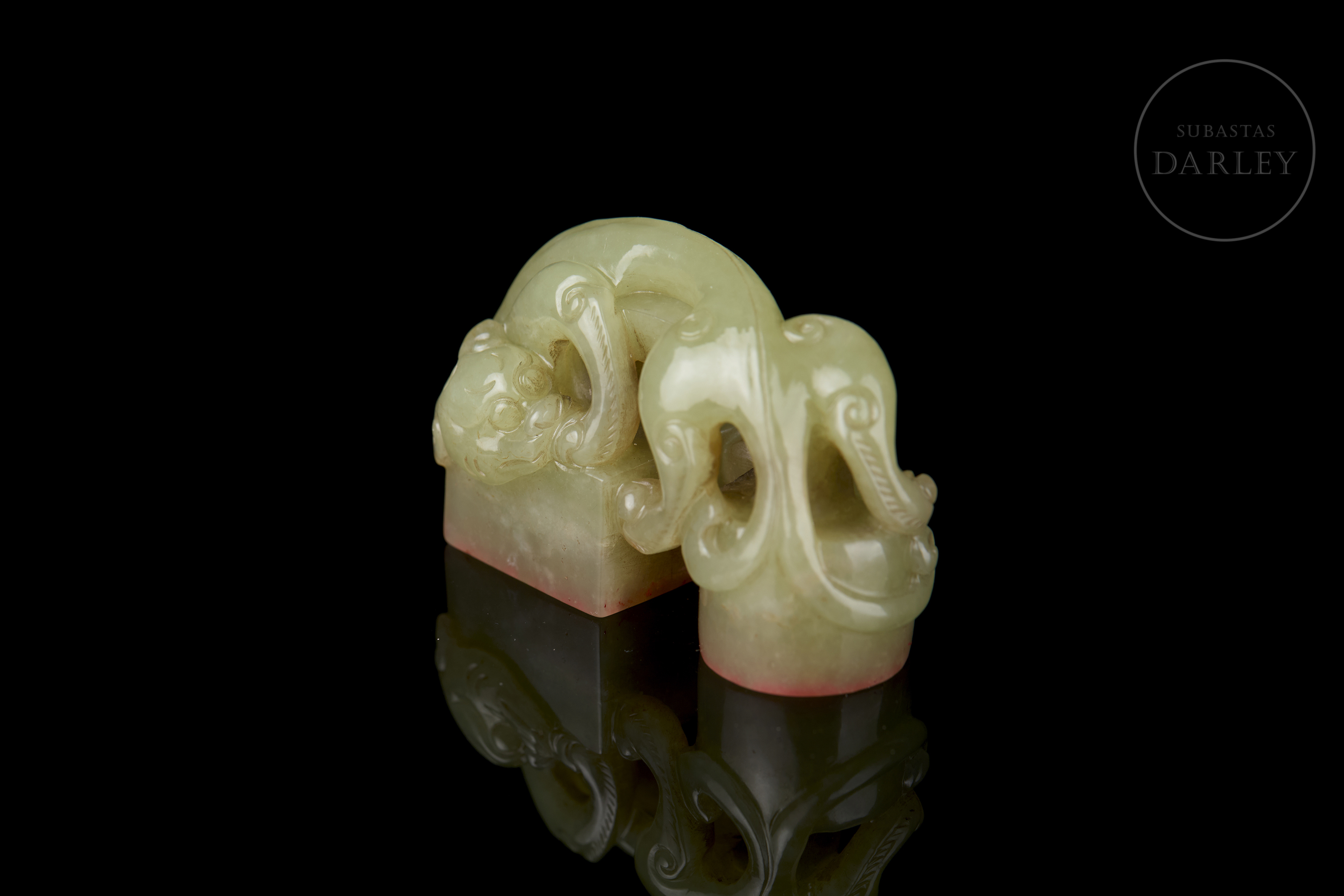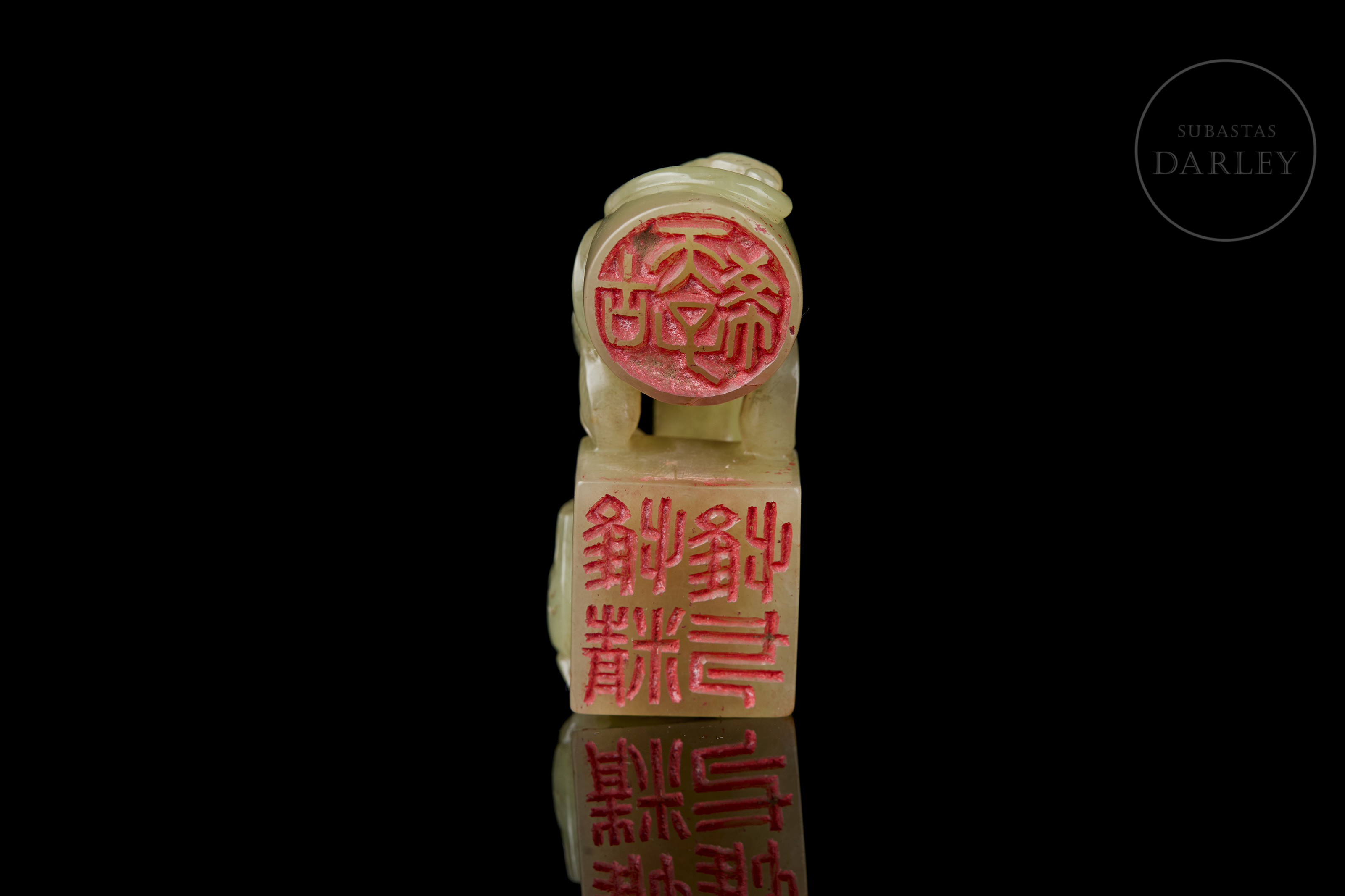 Sello doble de jade amarillo “Criatura”, dinastía Qing