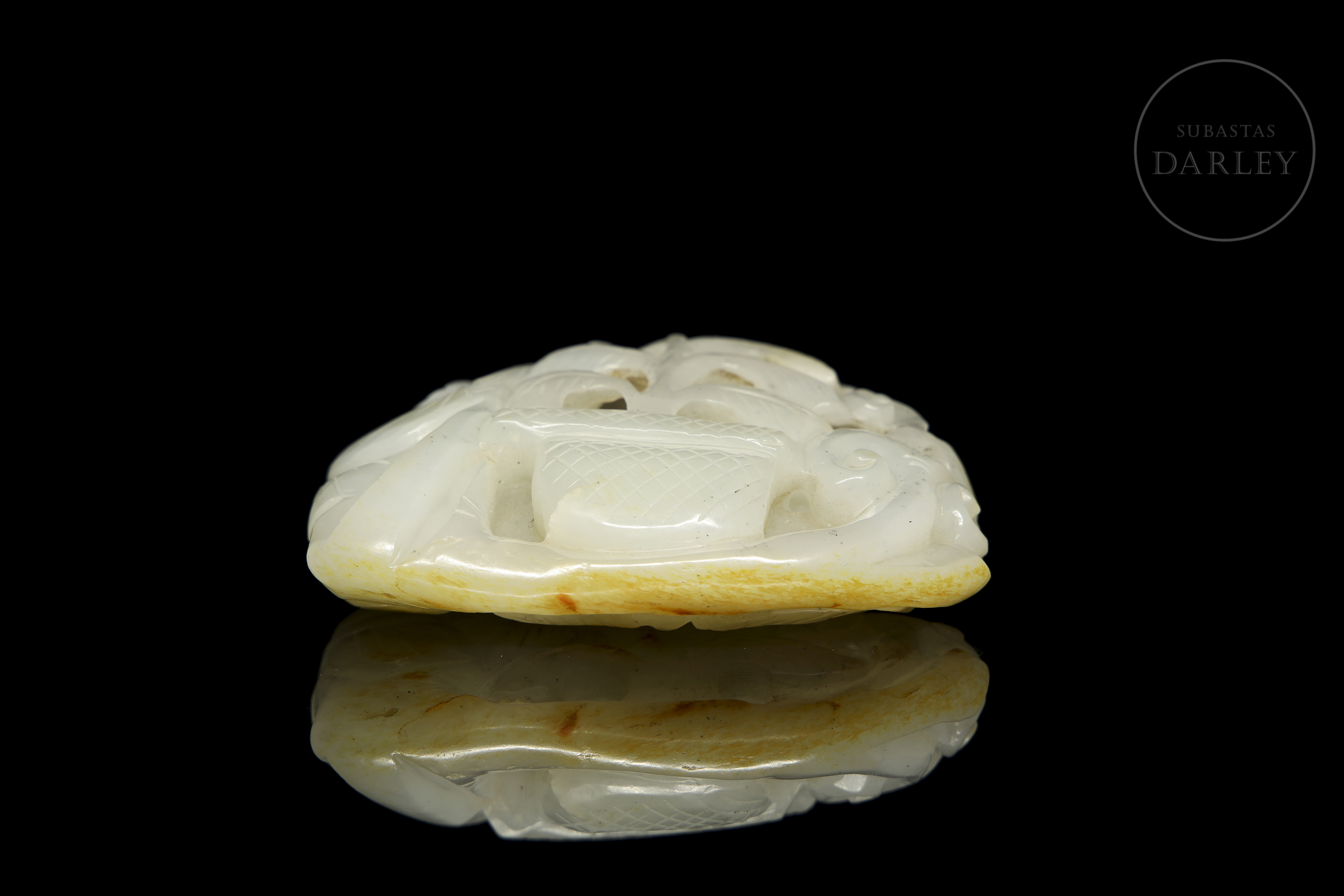 Talla de jade blanco "Personaje con maceta", dinastía Qing