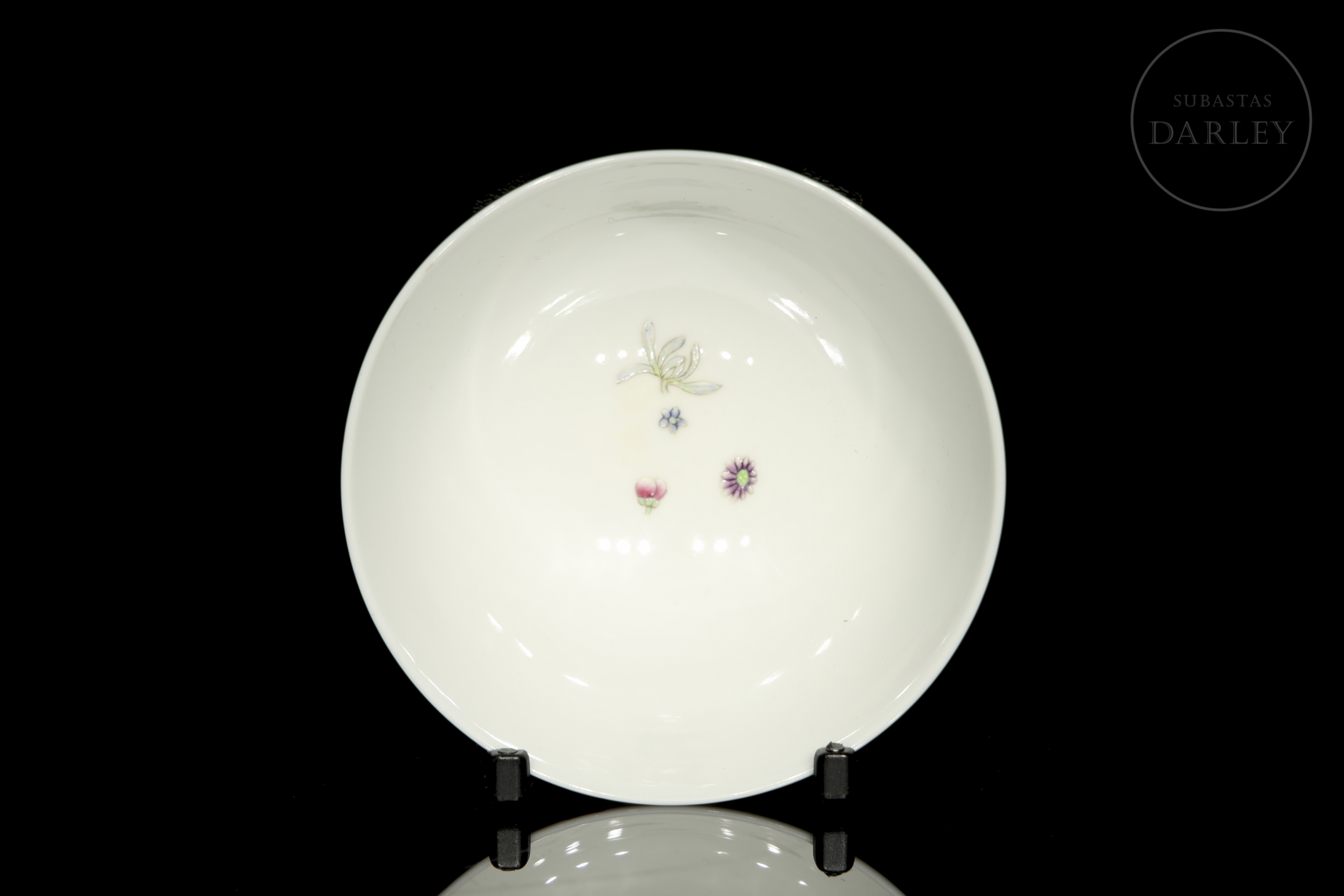 Taza de porcelana esmaltada "Bambú", con marca Yongzheng