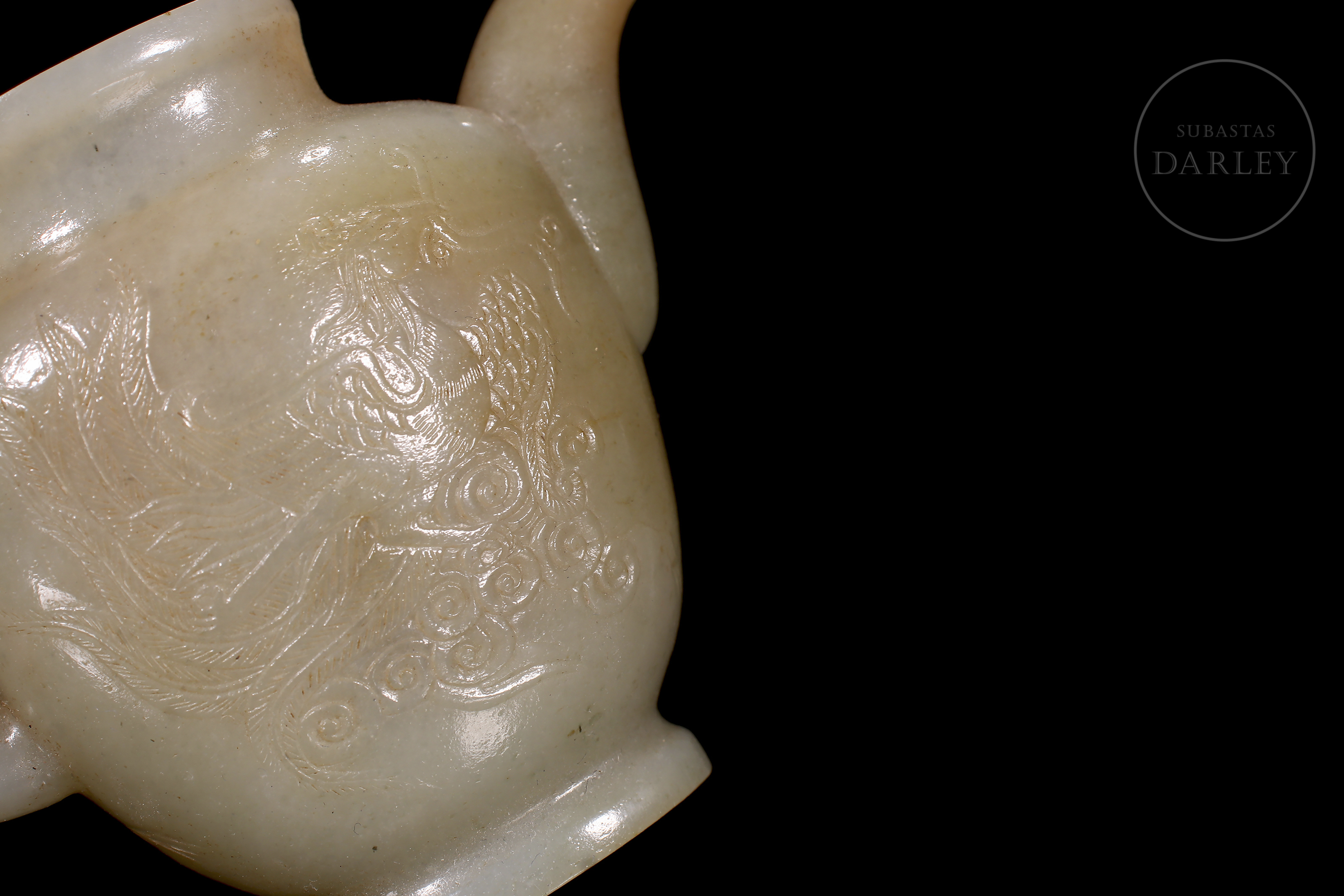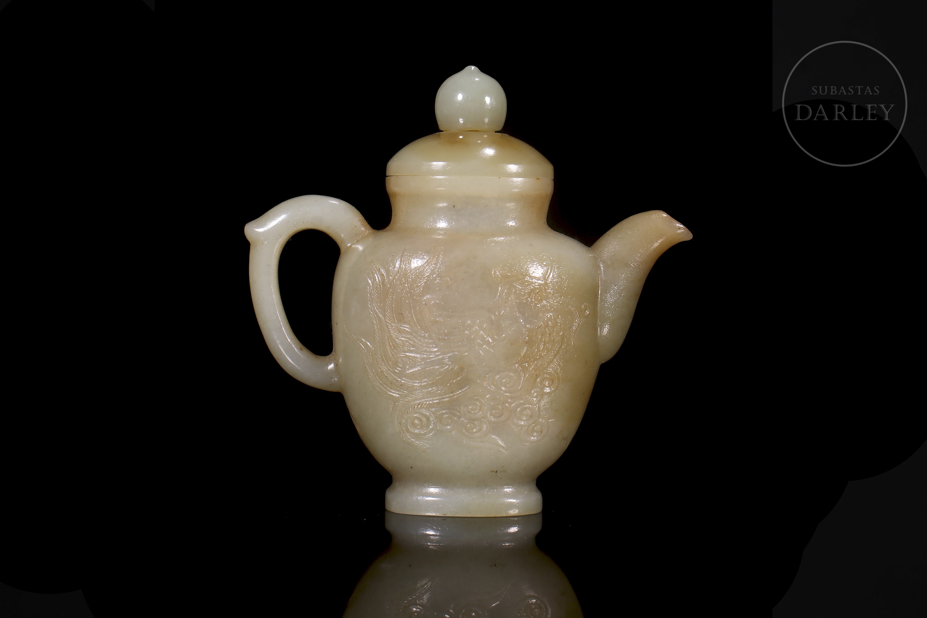 Tetera de jade Hetian "Dragón y fénix", dinastía Qing