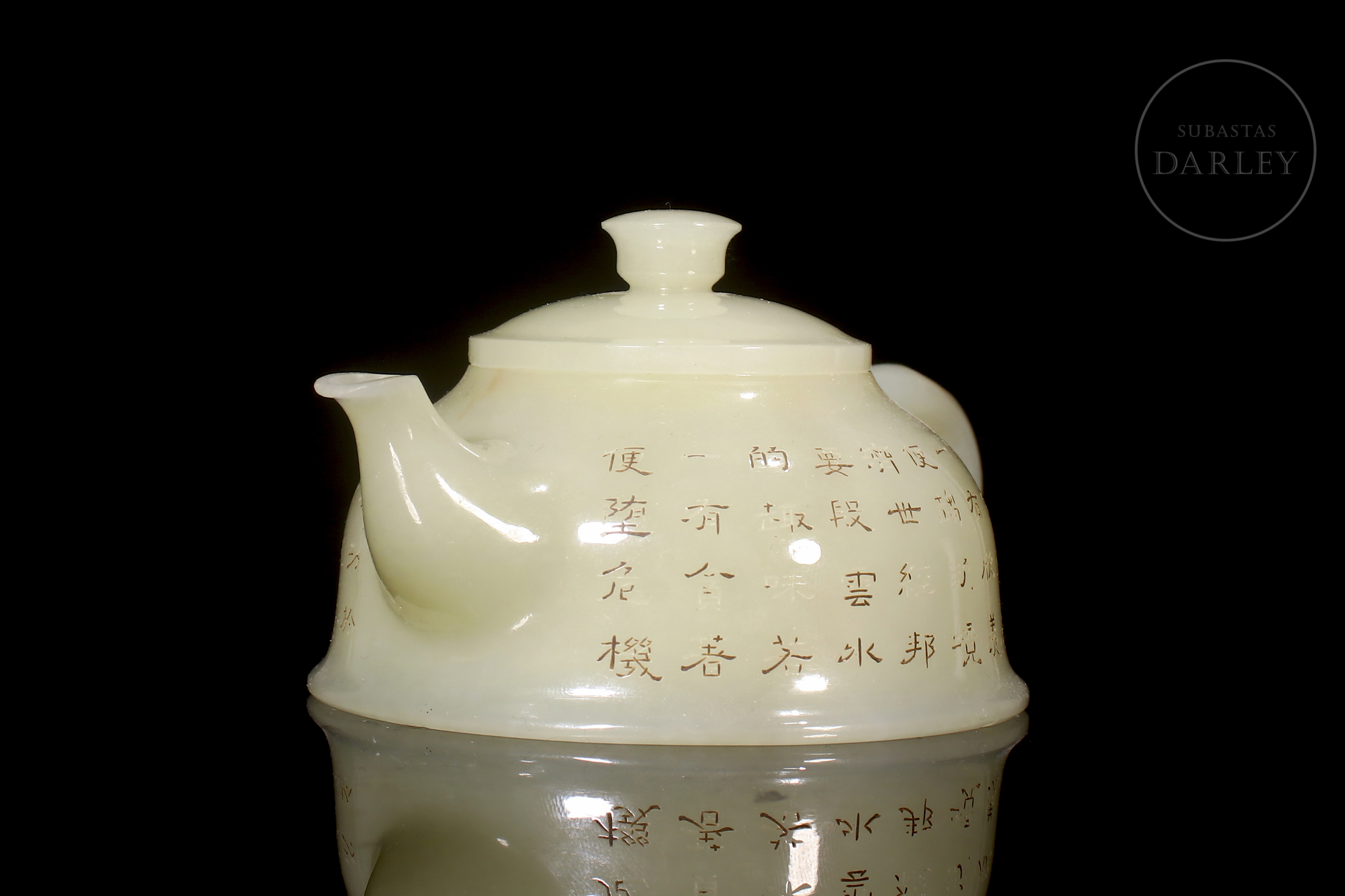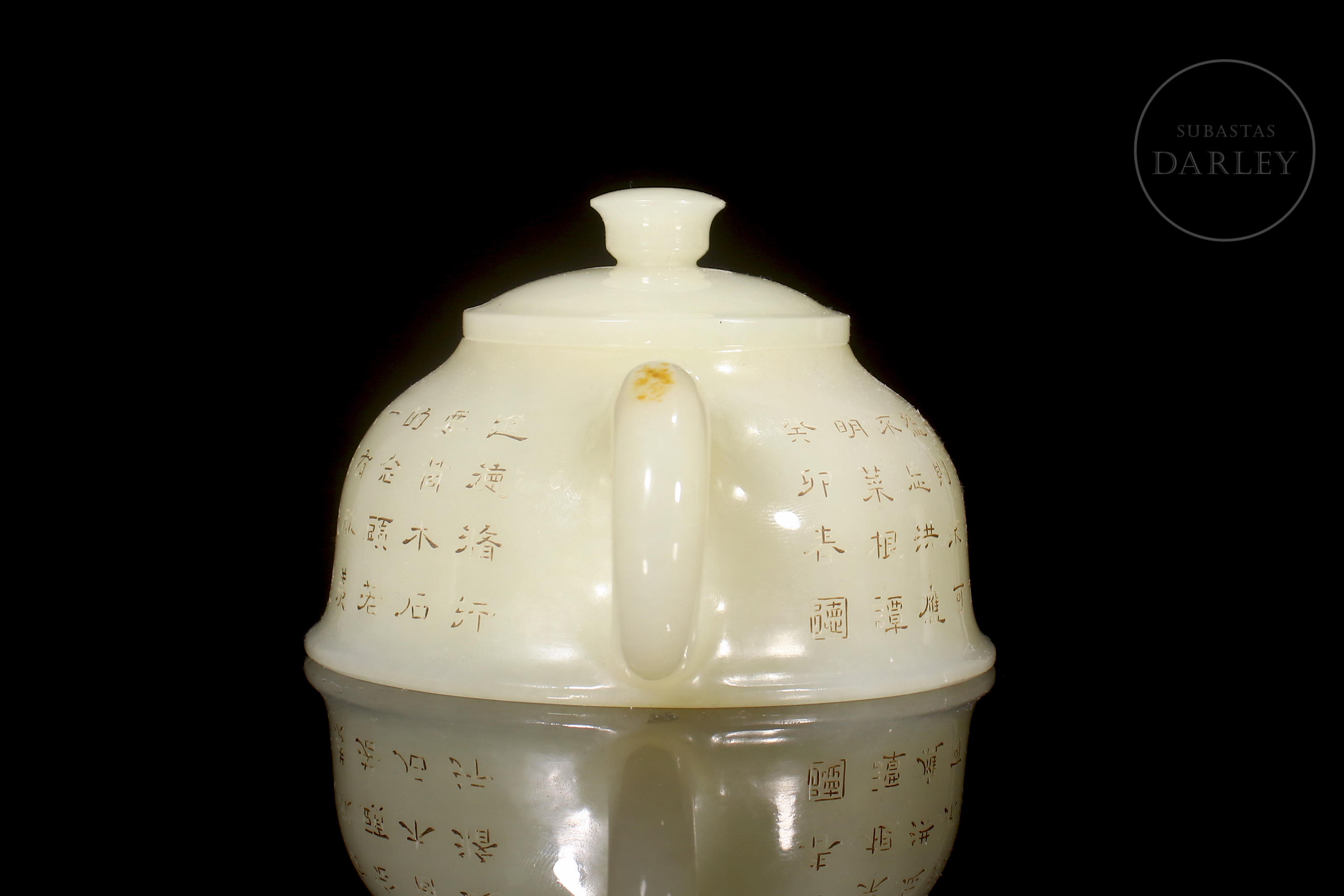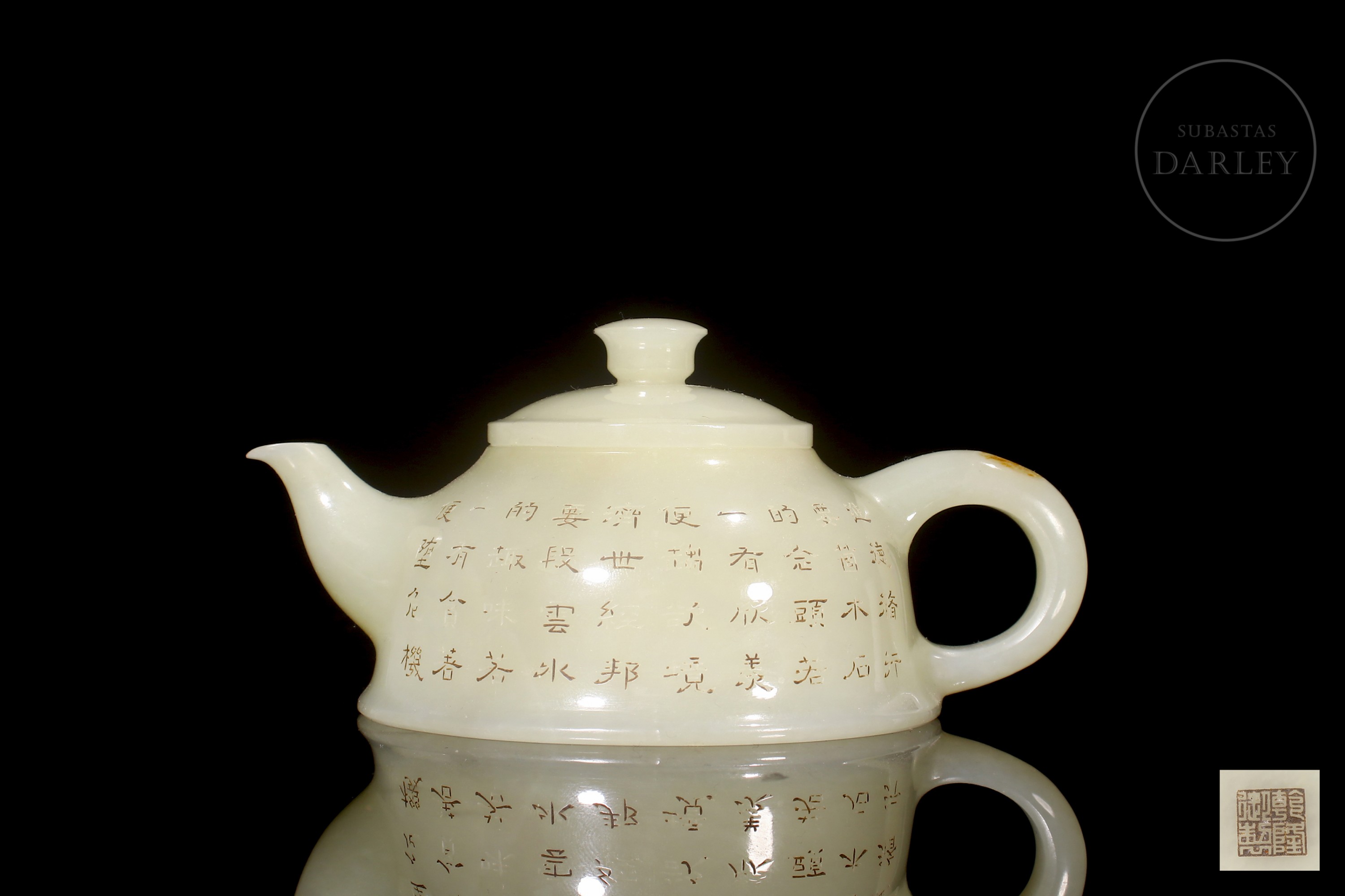 Tetera de jade hetiano de la dinastía Qing con poesía