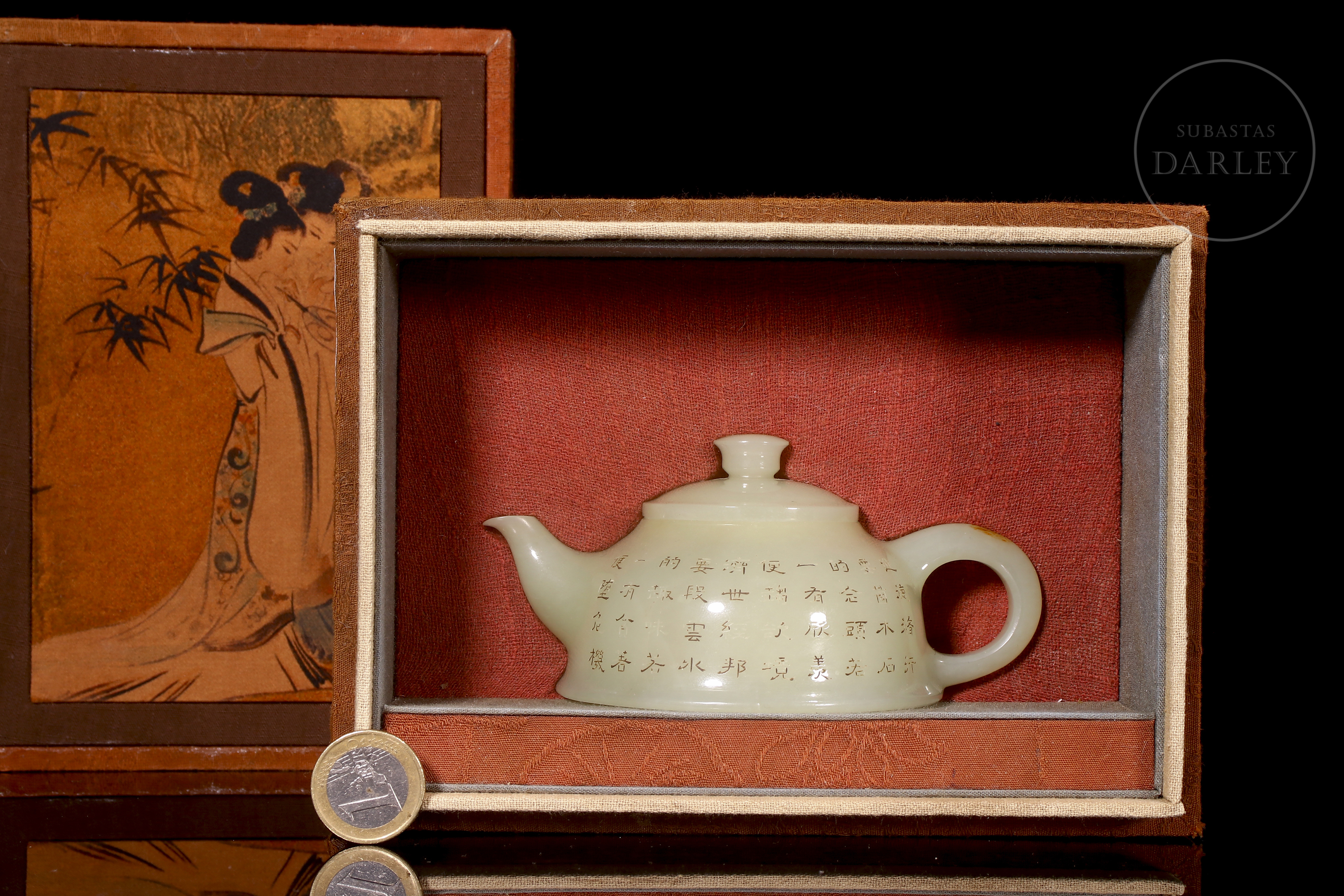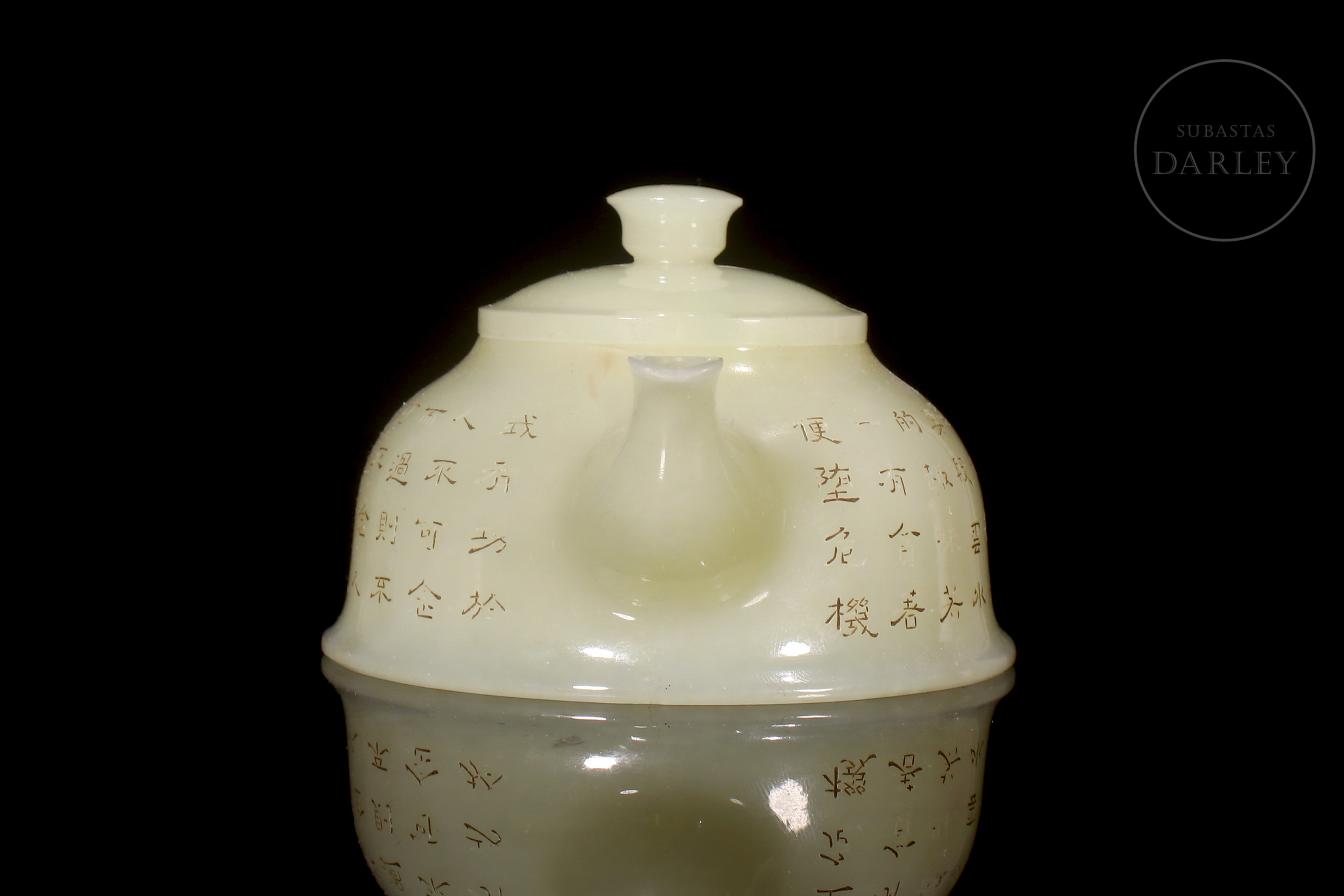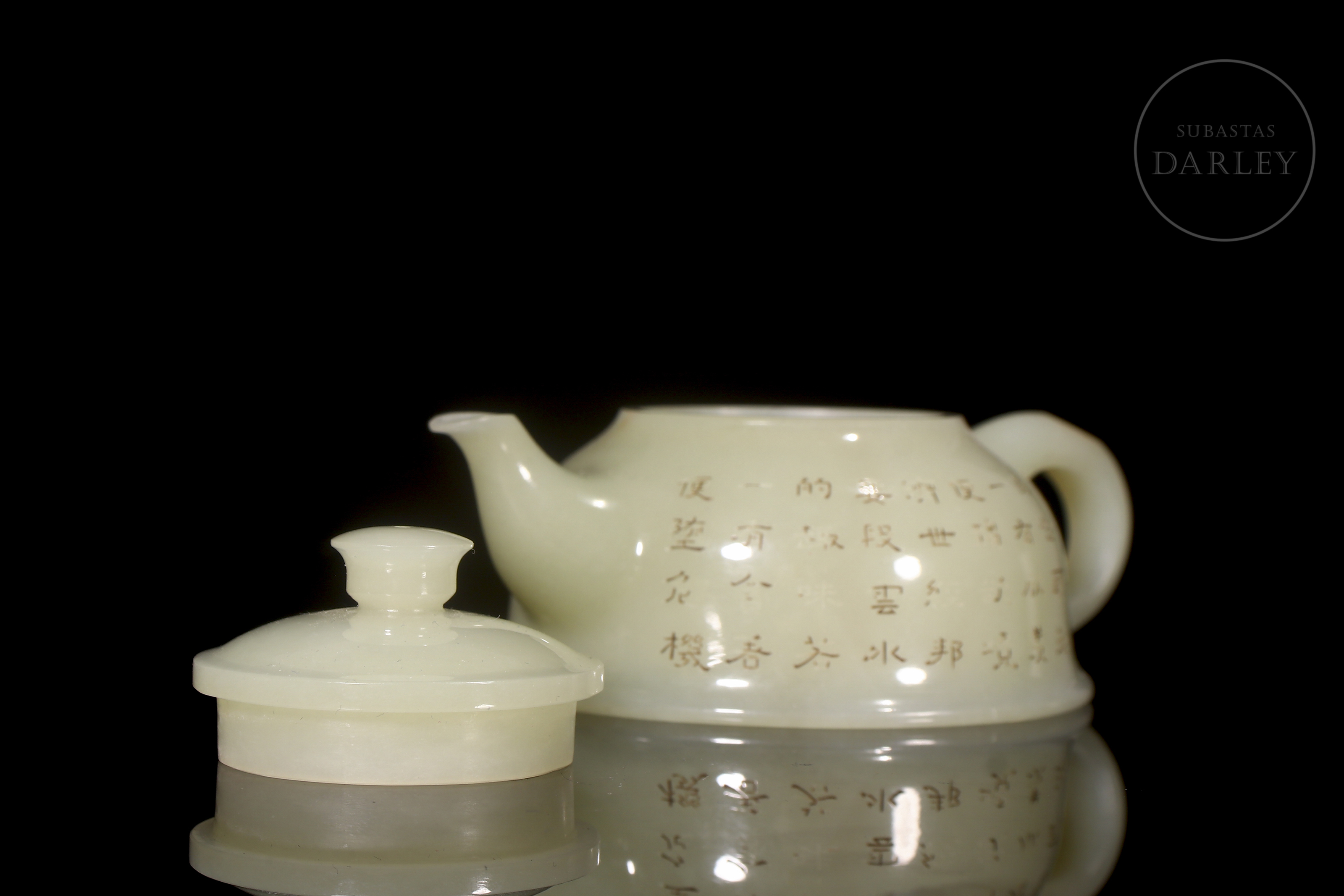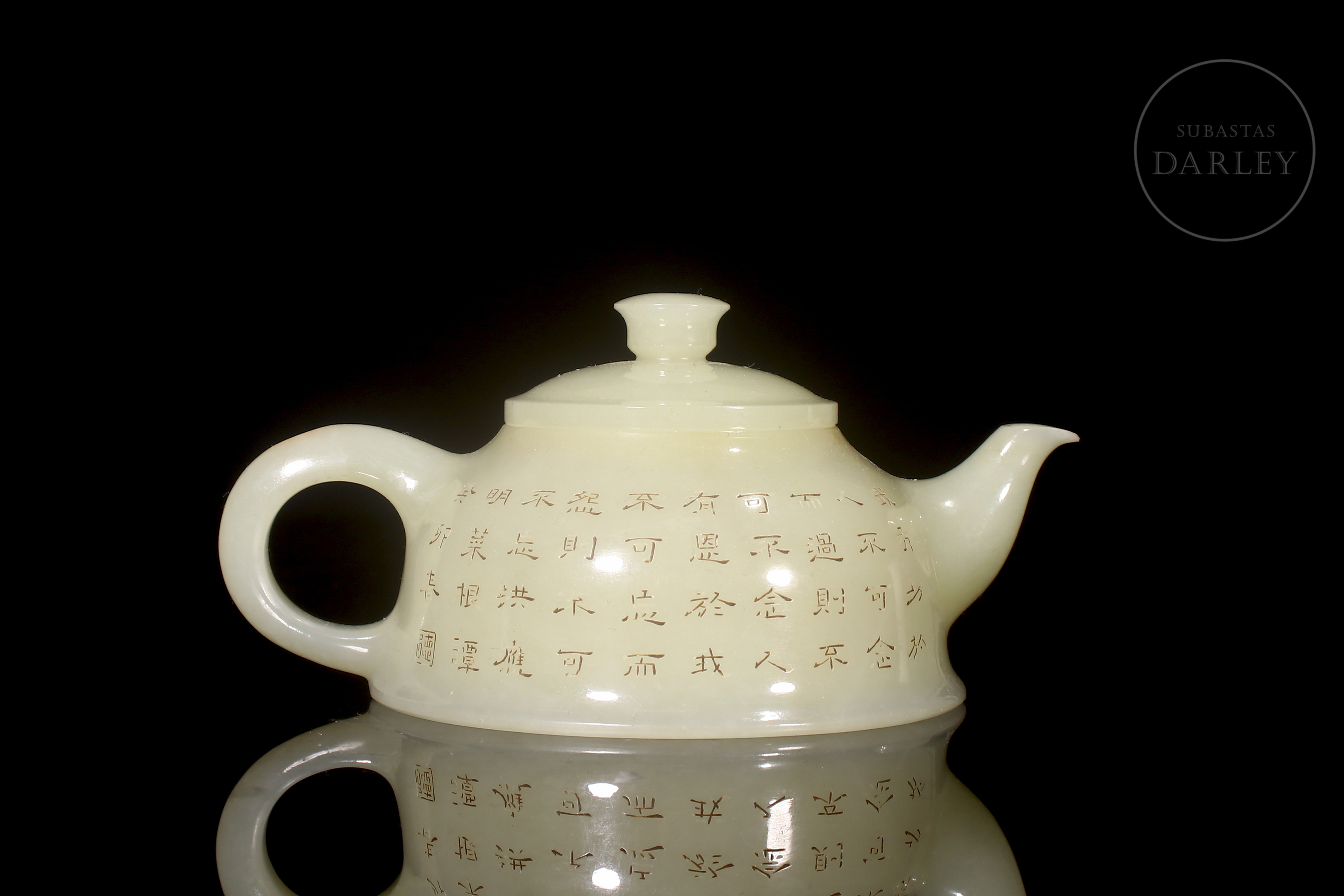 Tetera de jade hetiano de la dinastía Qing con poesía