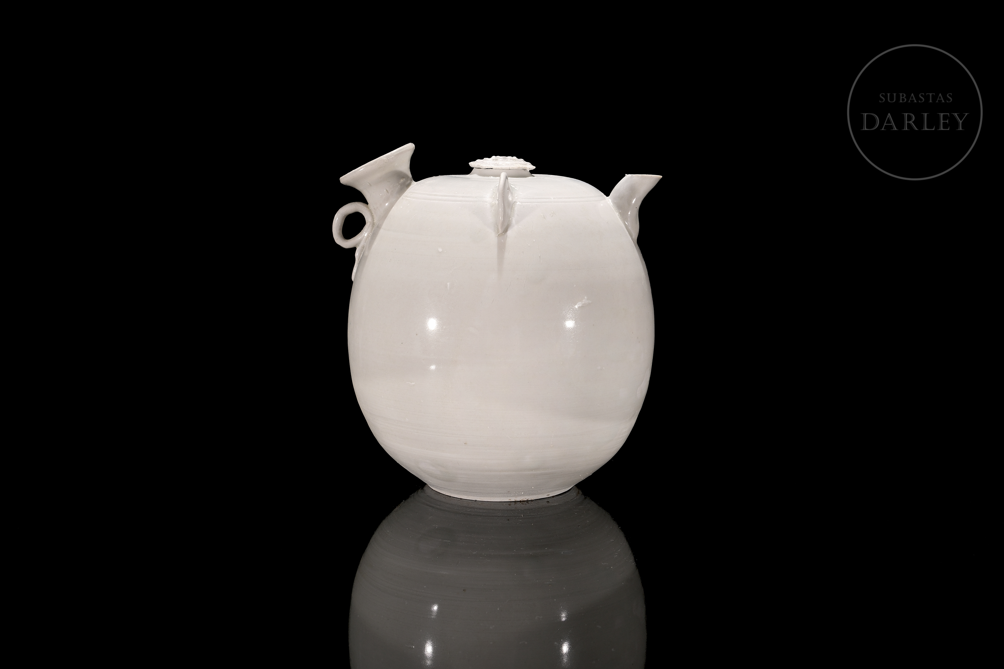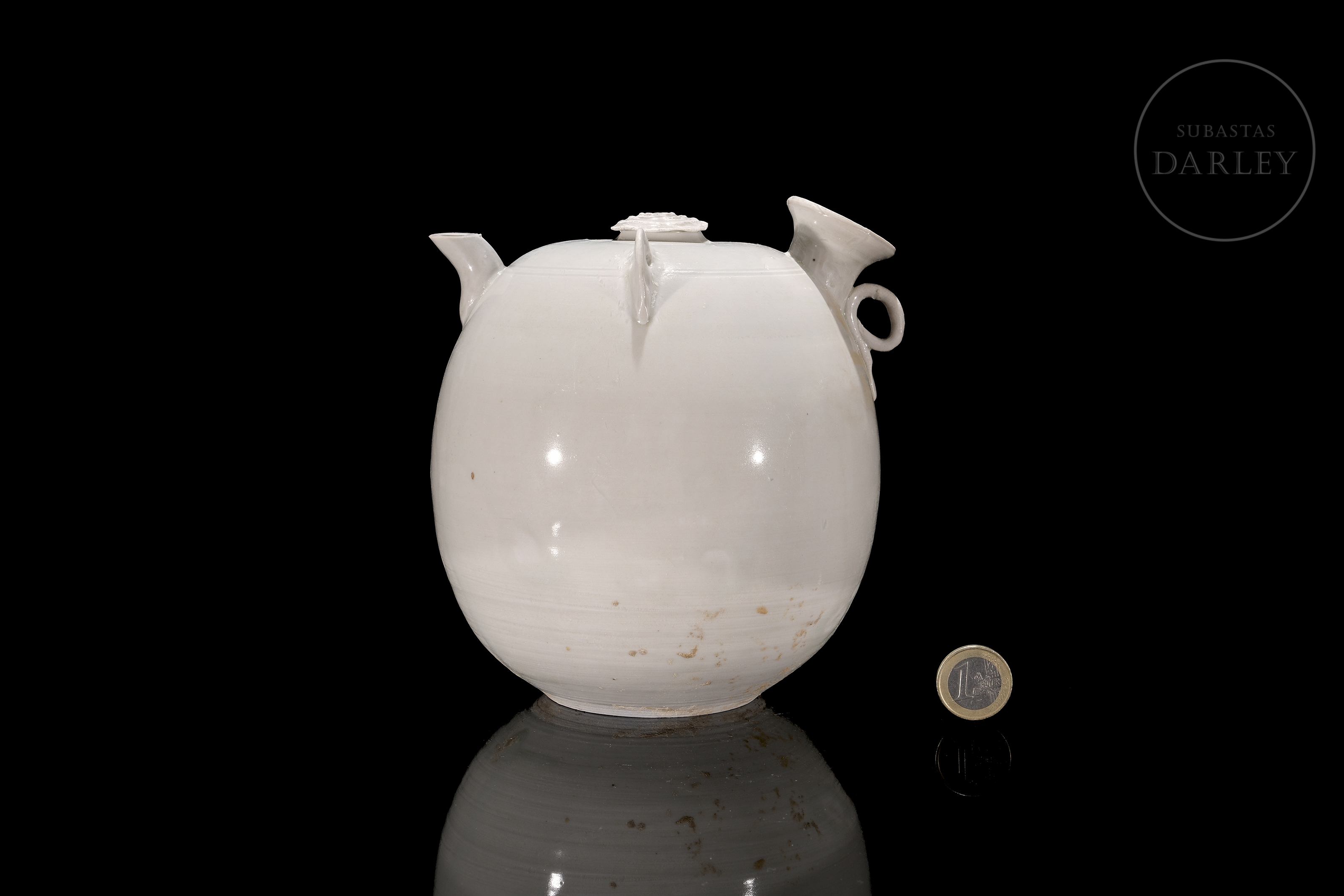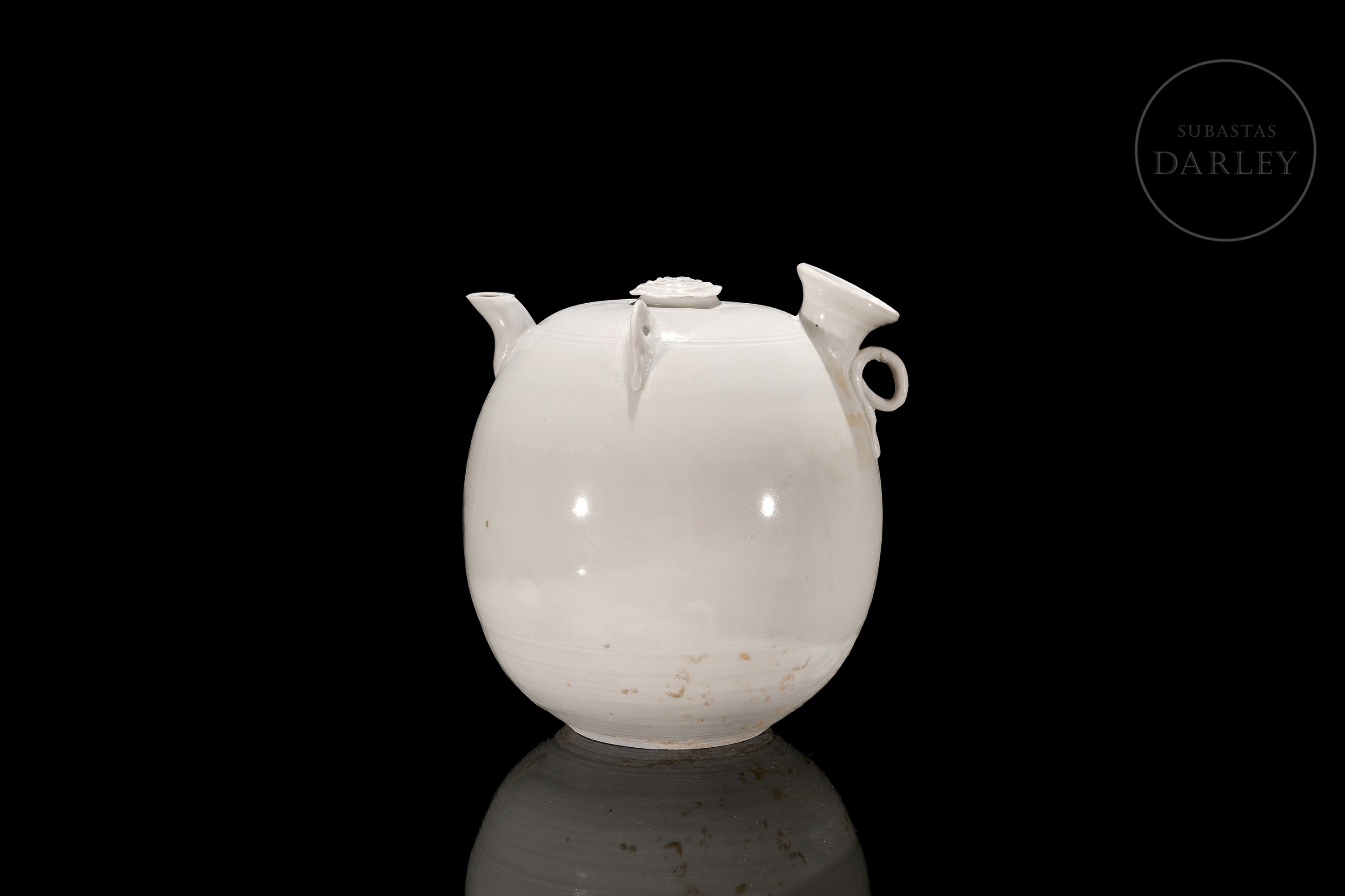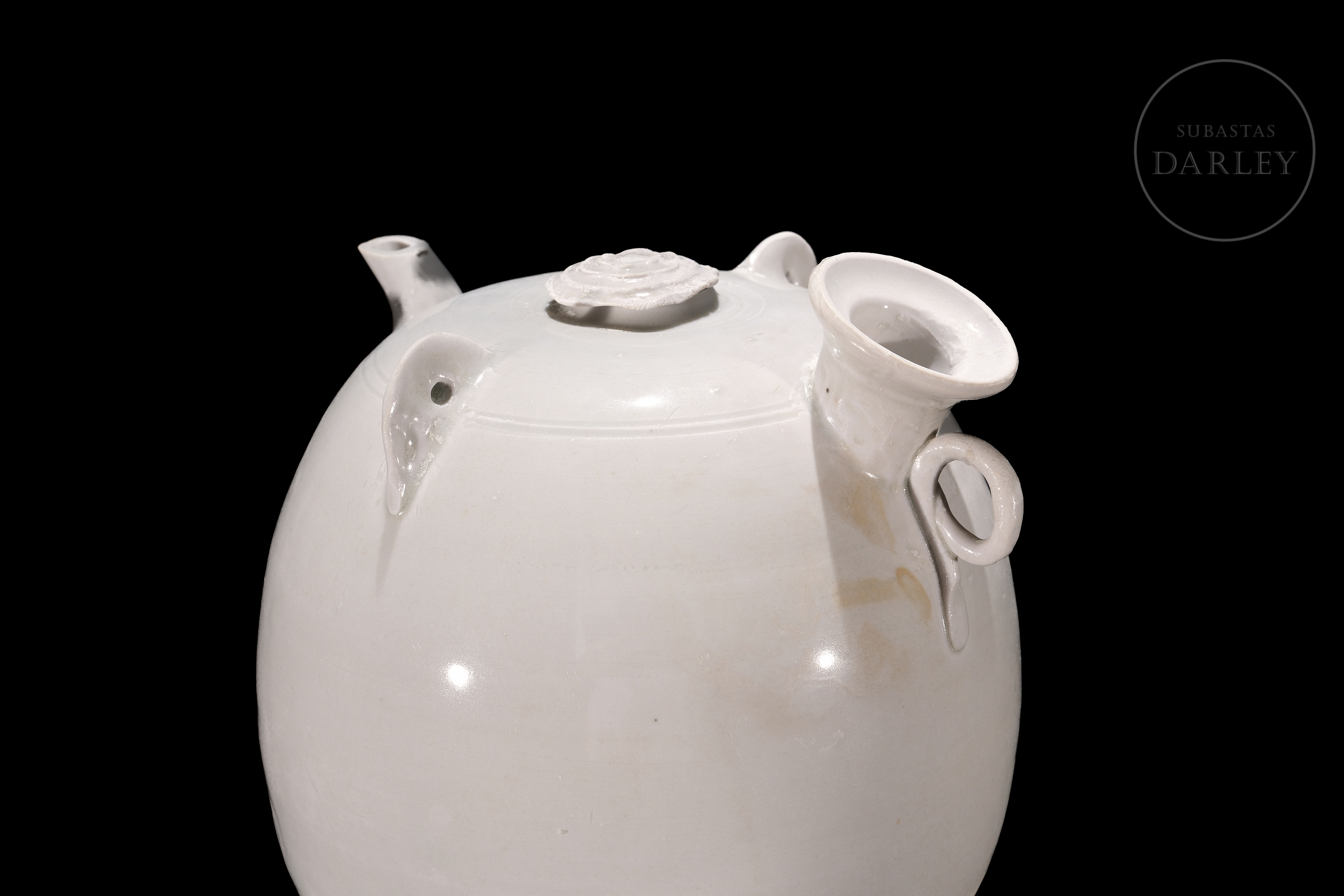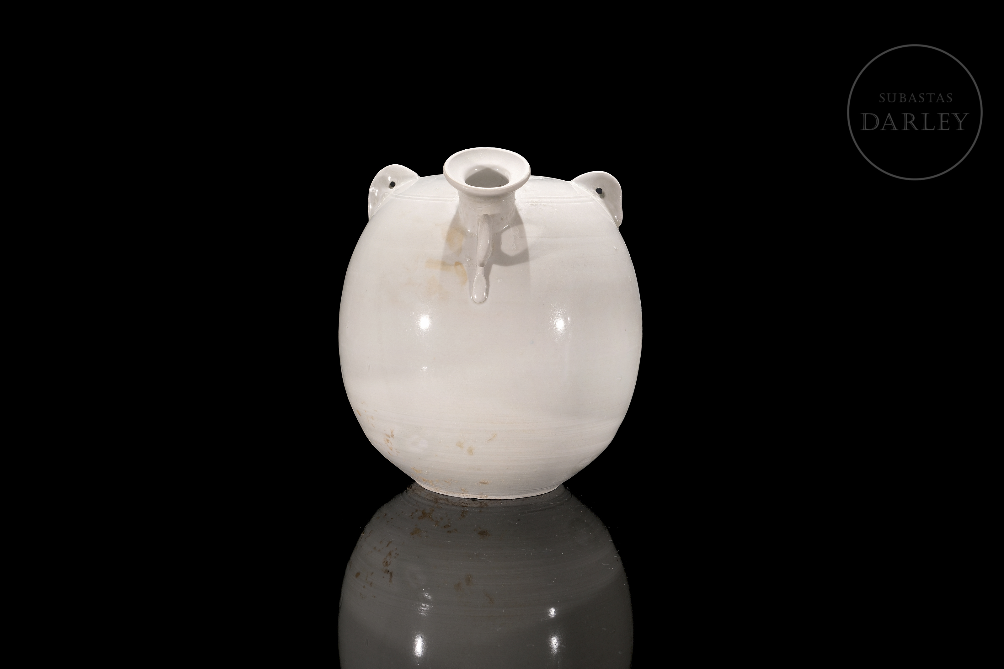 Vasija para vino de cerámica esmaltada en blanco, horno Ding