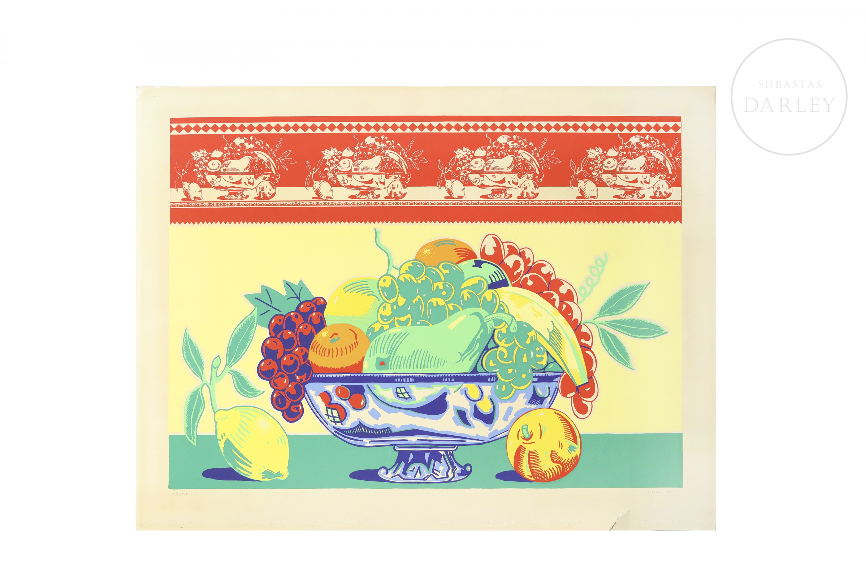 Alfredo Alcaín (1936) "Bodegón con frutas"