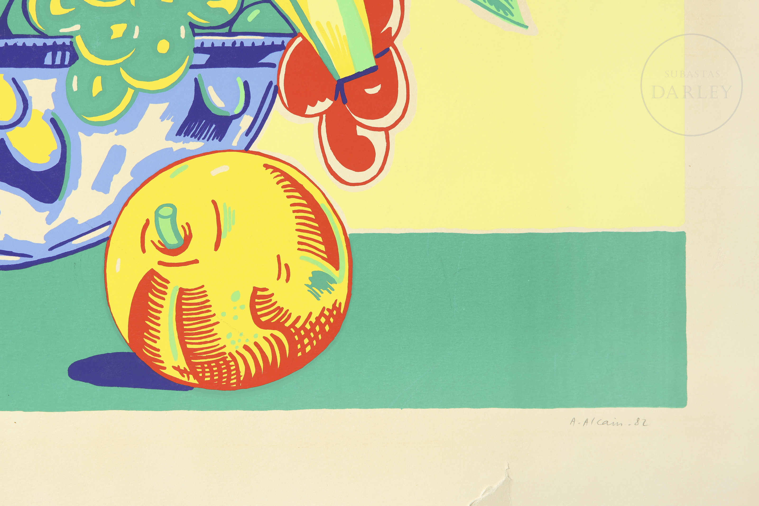 Serigrafía sobre papel. Firmado A. Alcain 82' en la esquina inferior derecha. Numerado 380/750 en la esquina inferior derecha.
