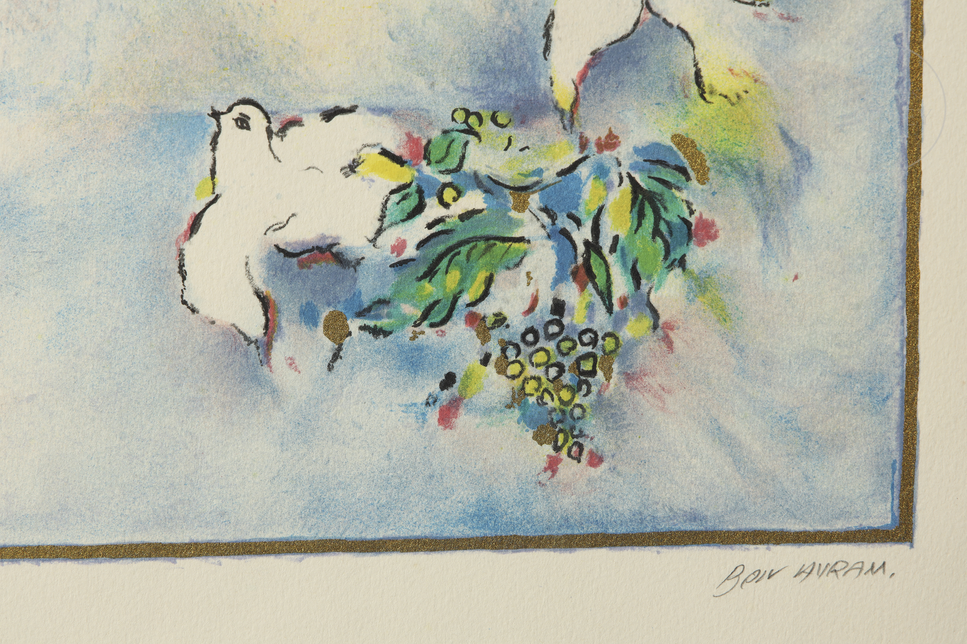 Serigrafía sobre papel. Composición siguiendo los modelos modernistas, que muestra un enlace atrimonial siguiendo el rito judío. Firmado ''Berv Avram'' en la esquina inferior derecha. Numerado "4/10" en la esquina inferior izquierda.