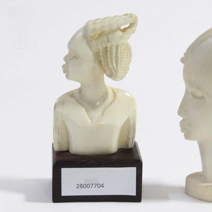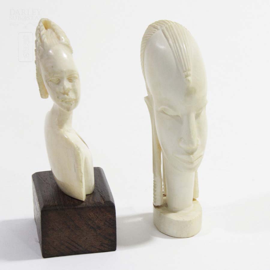 Dos figuras Africanas talladas en marfil con forma de rostro de mujeres del mismo continente. Buenas tallas.
