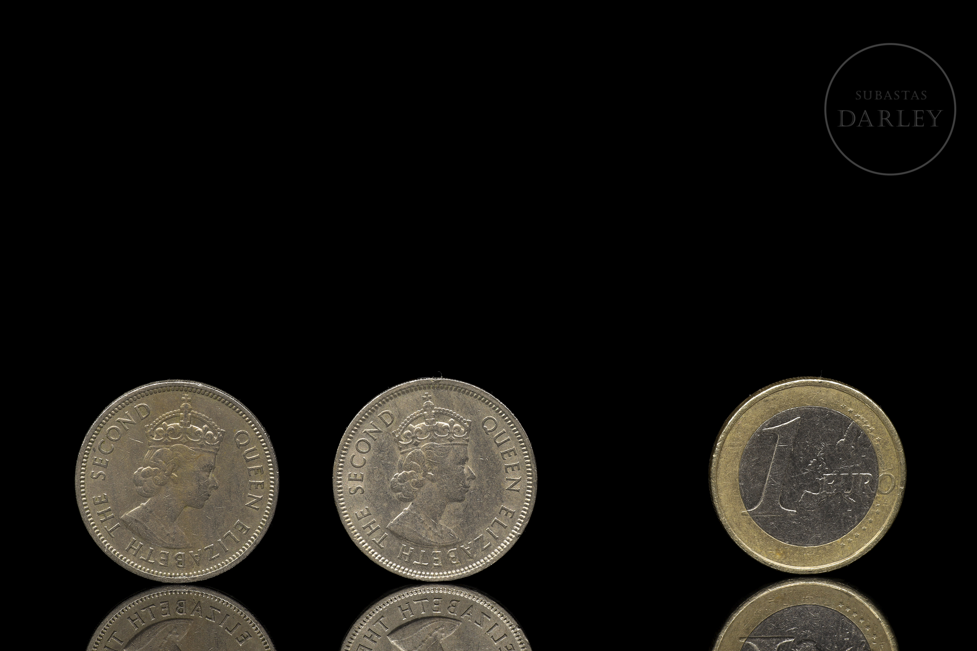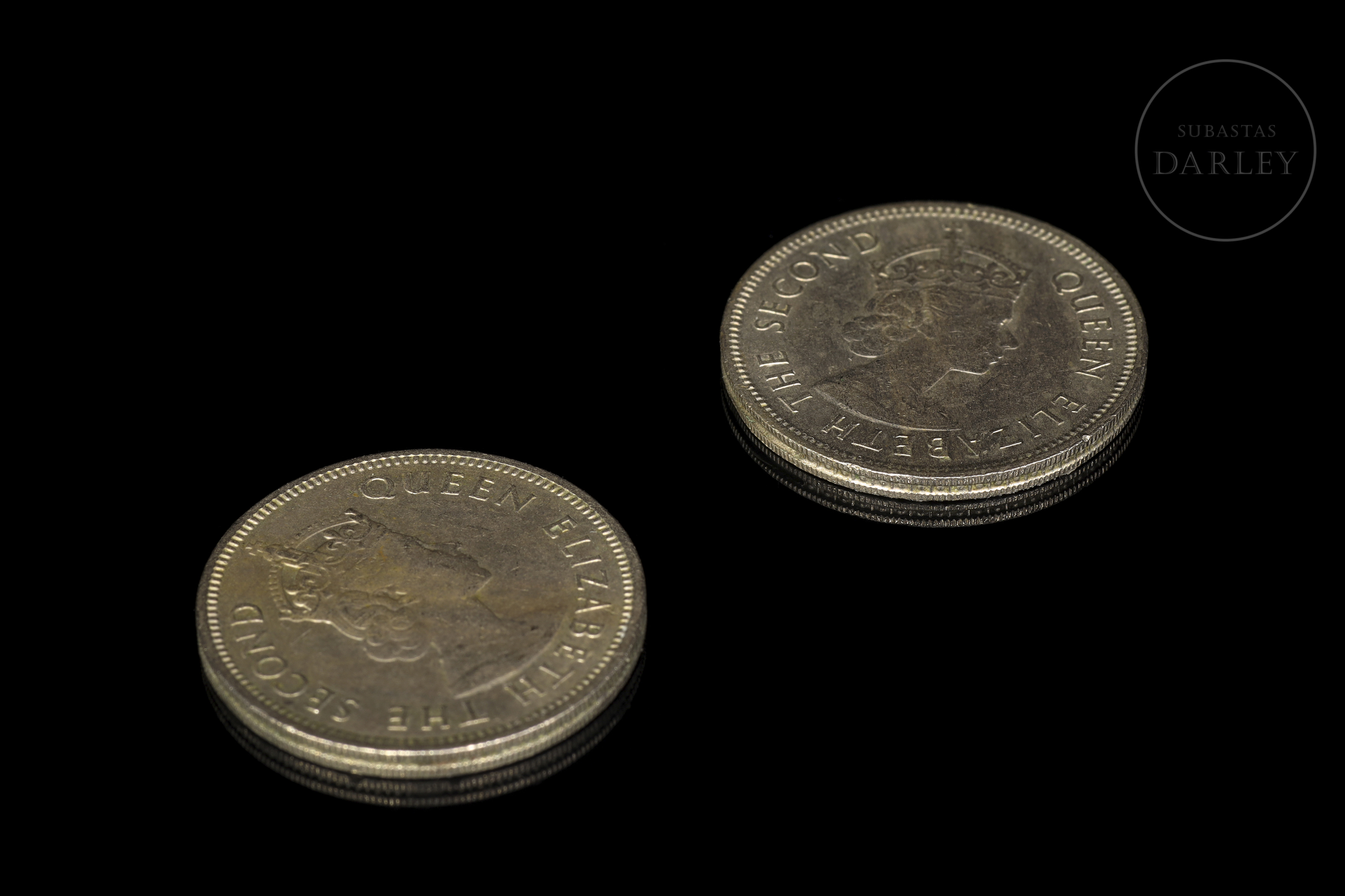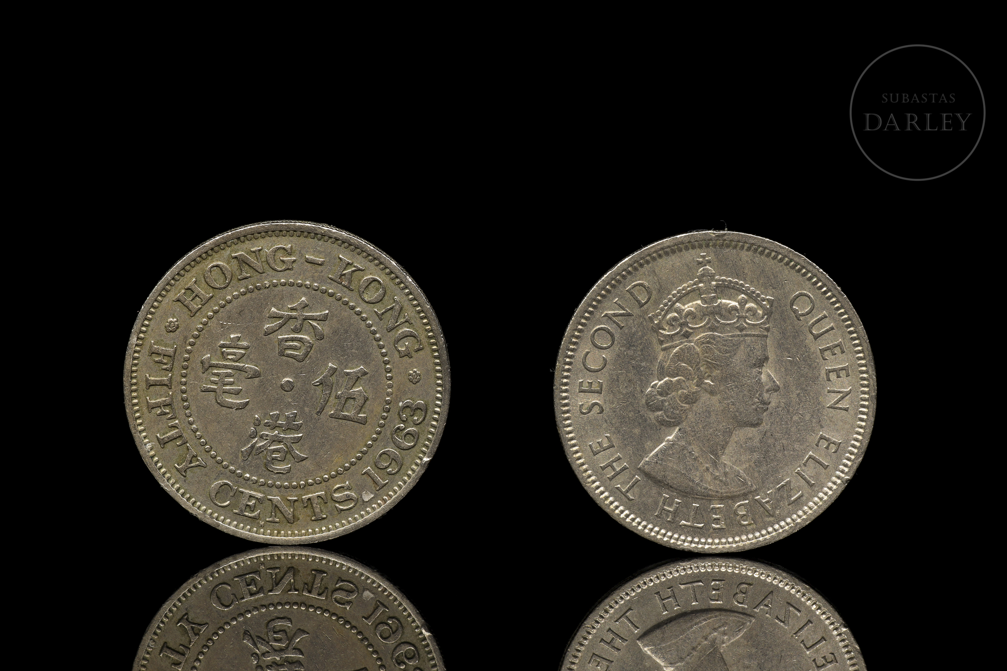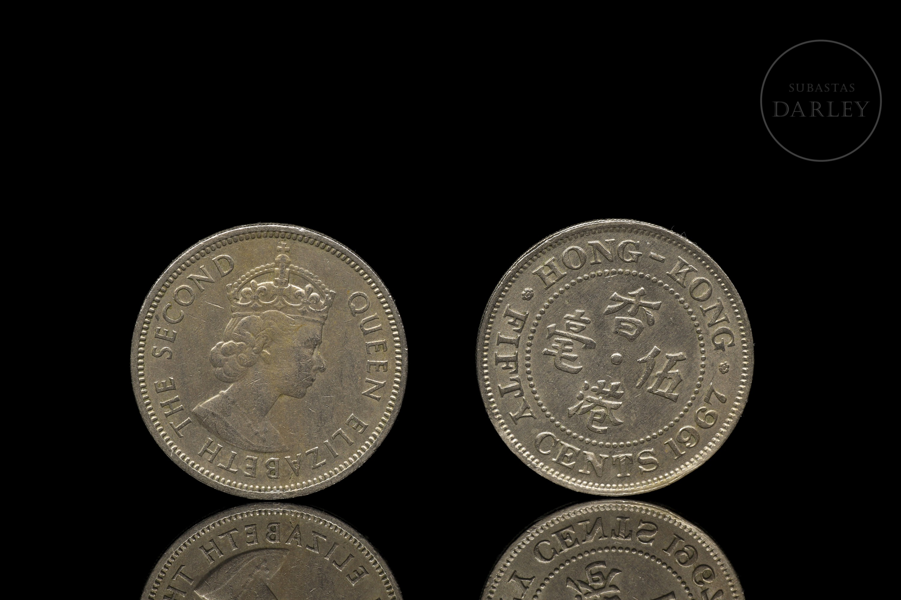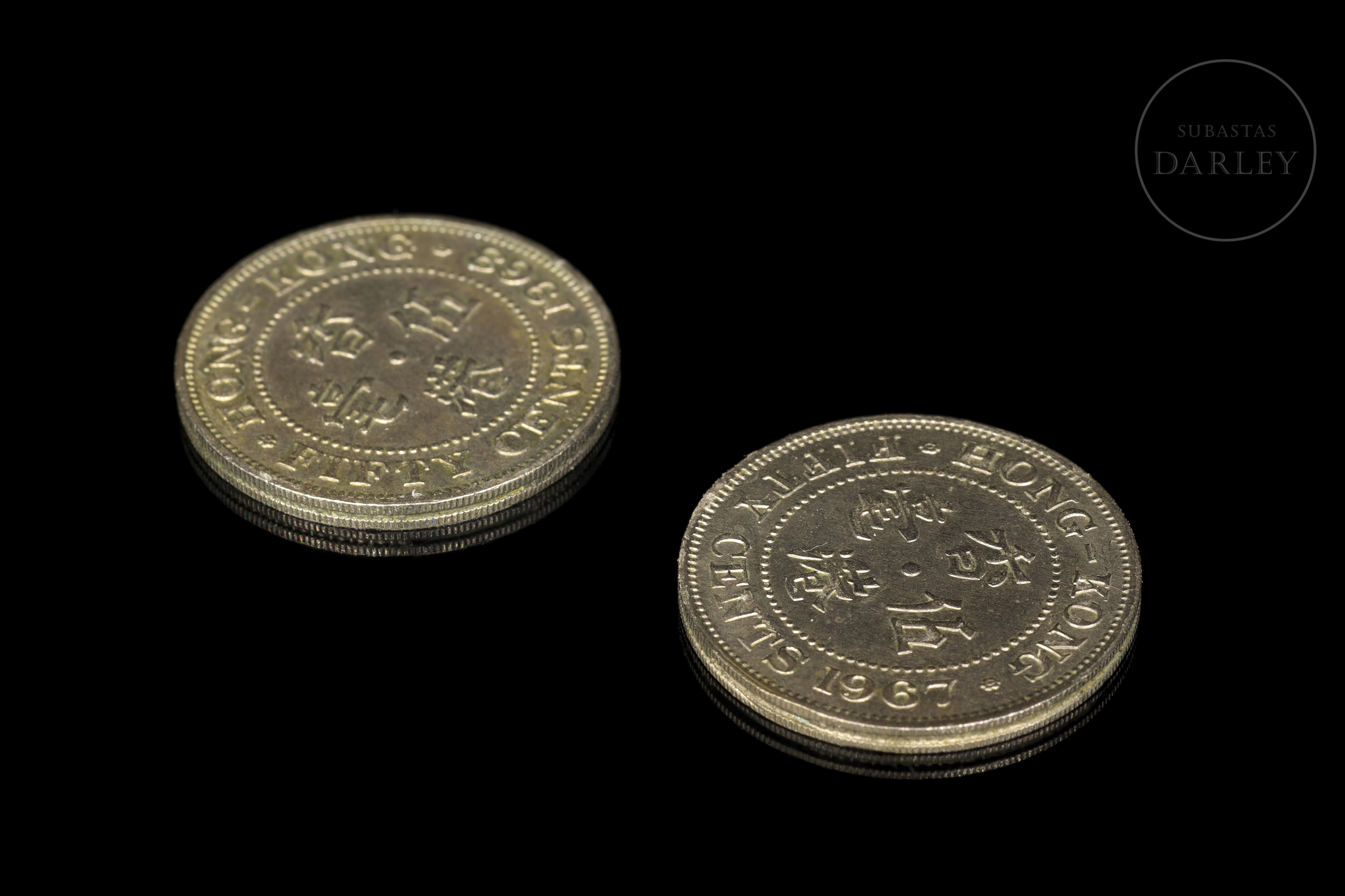 Dos monedas de 50 centavos, Hong Kong, 1963 y 1967