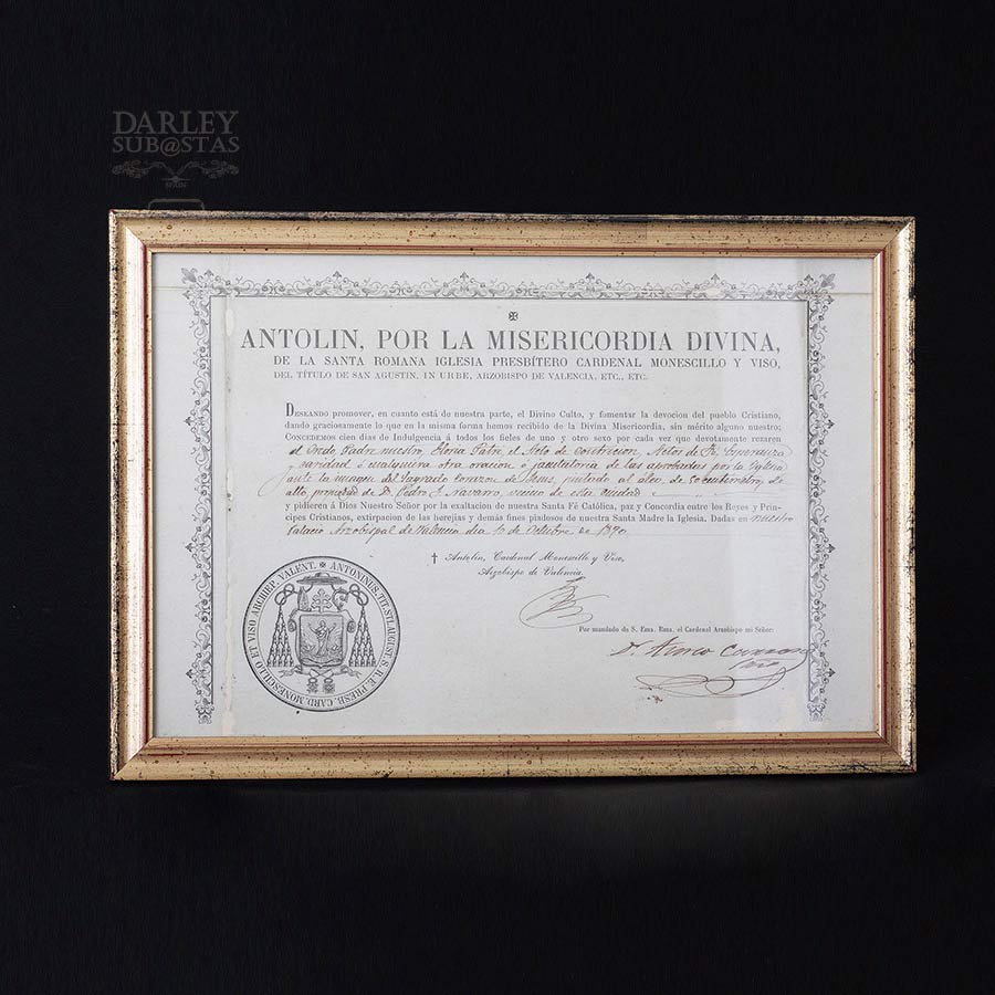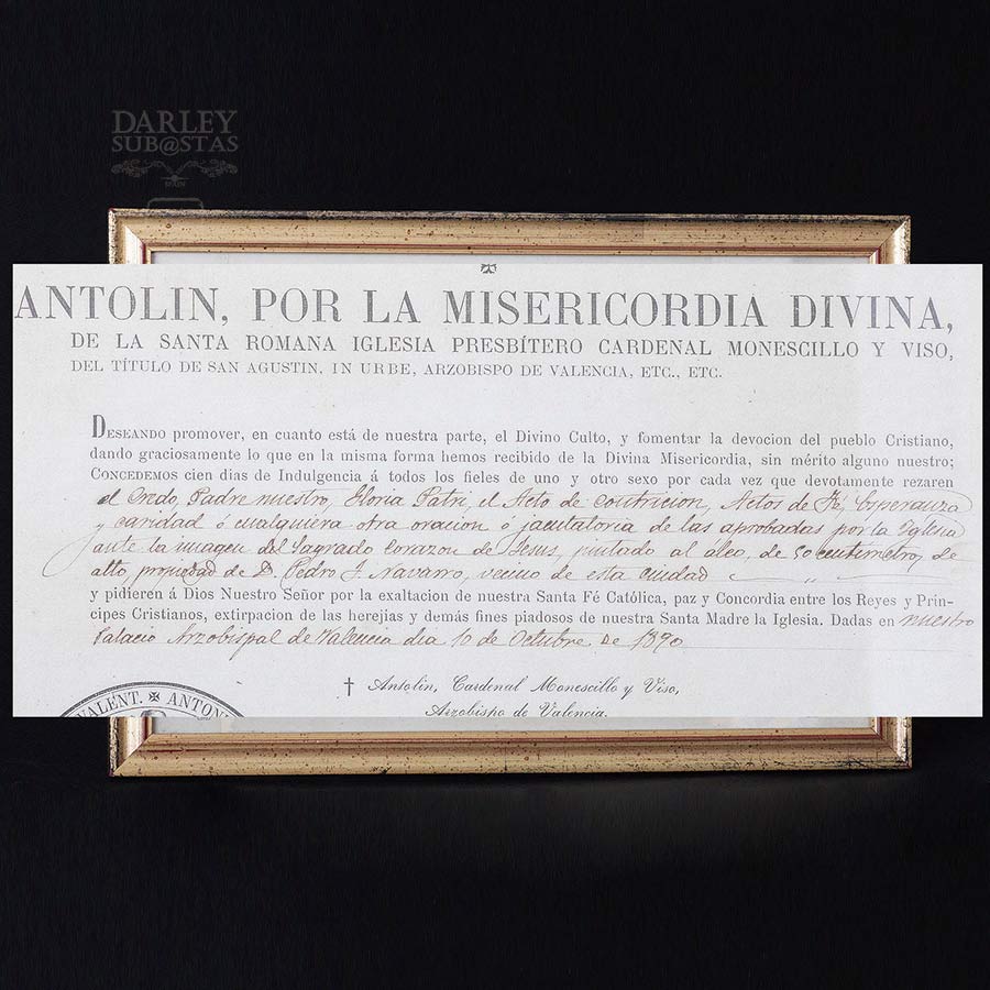 Dedicado en el reverso y con certificado eclesial de donación por parte de su primer propietario. No se dispone de otro tipo de documentación.