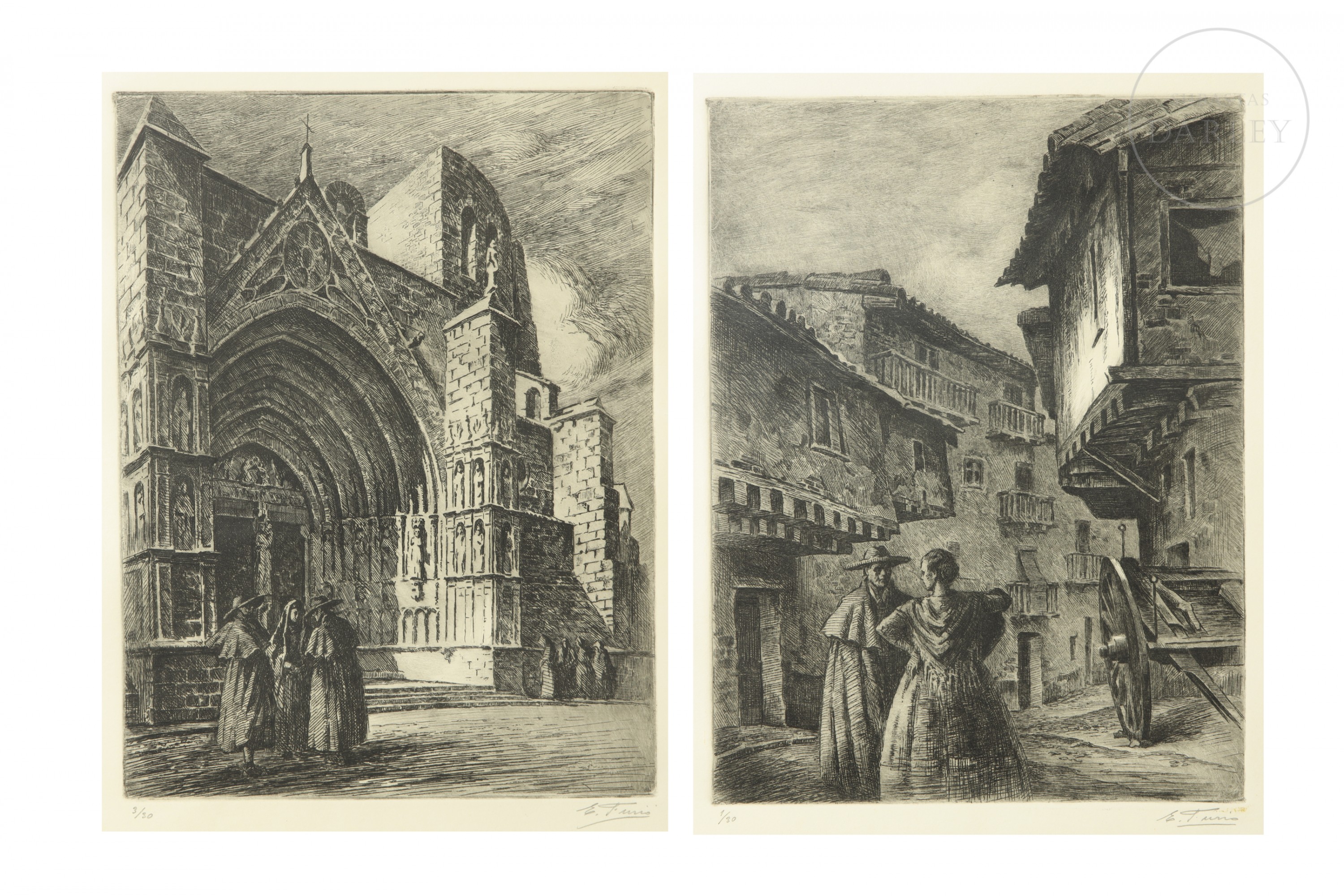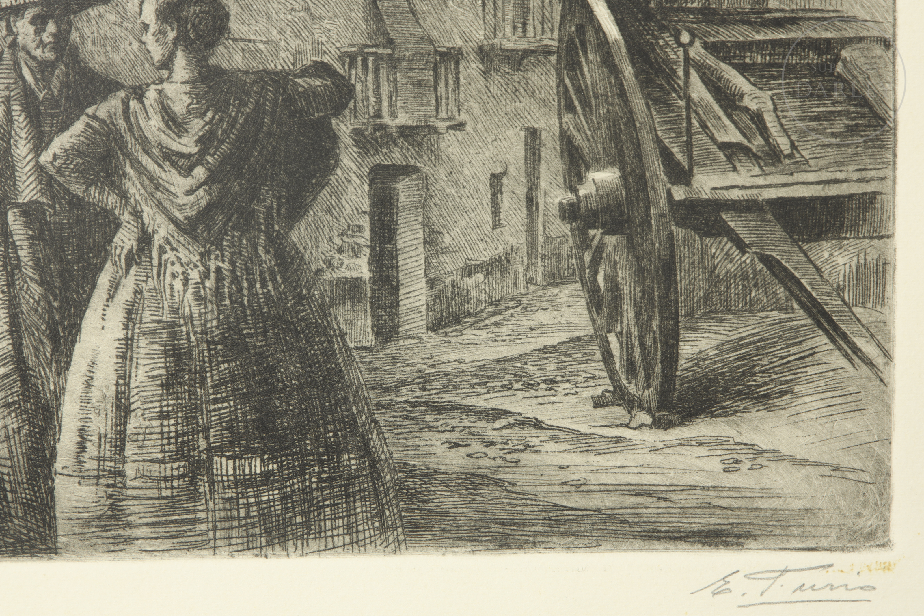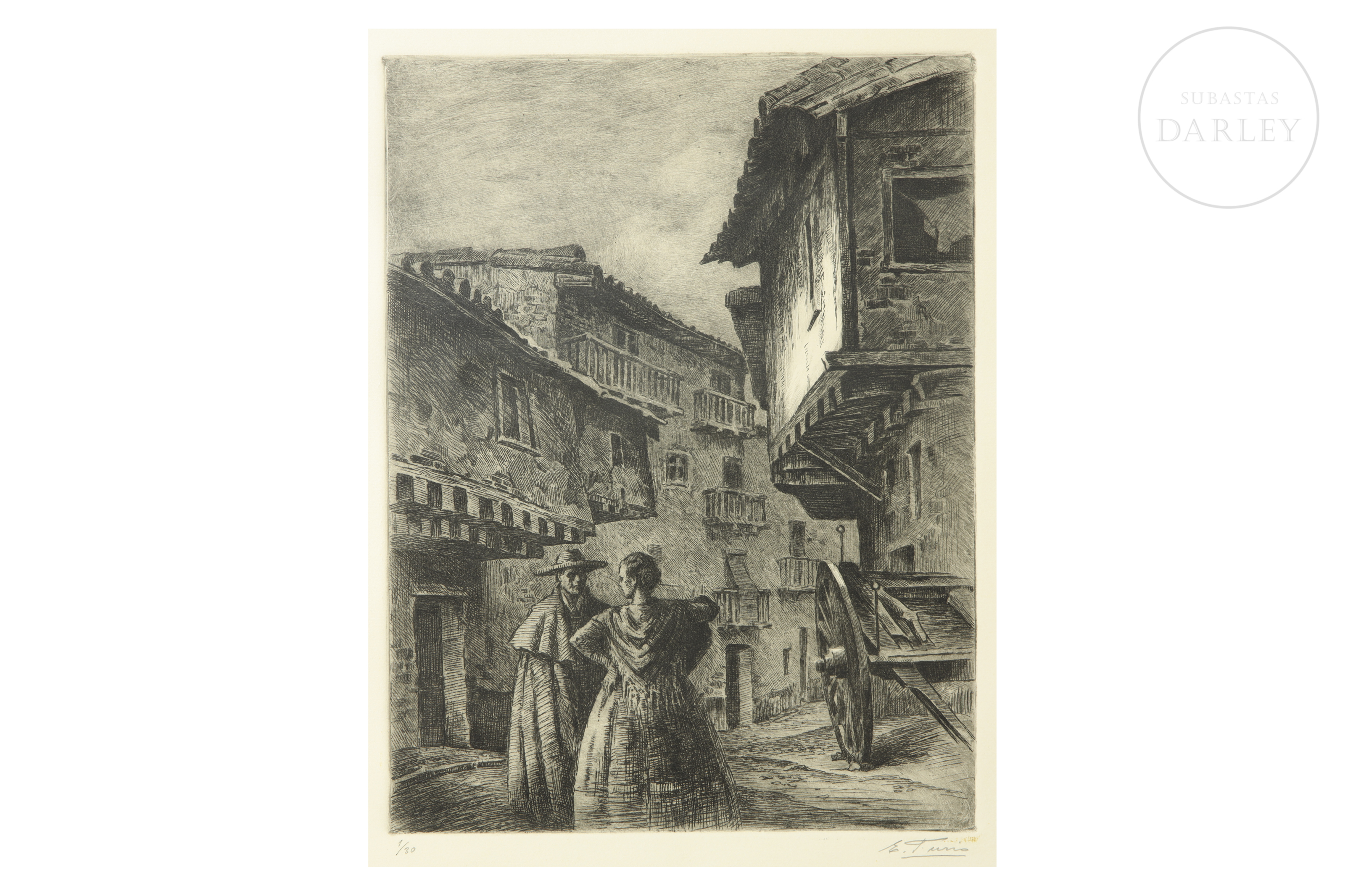 Estampa calcográfica. Firmado en el borde inferior derecho “E. Furió”, numerados en la esquina inferior izquierda "1/30 y 3/30".