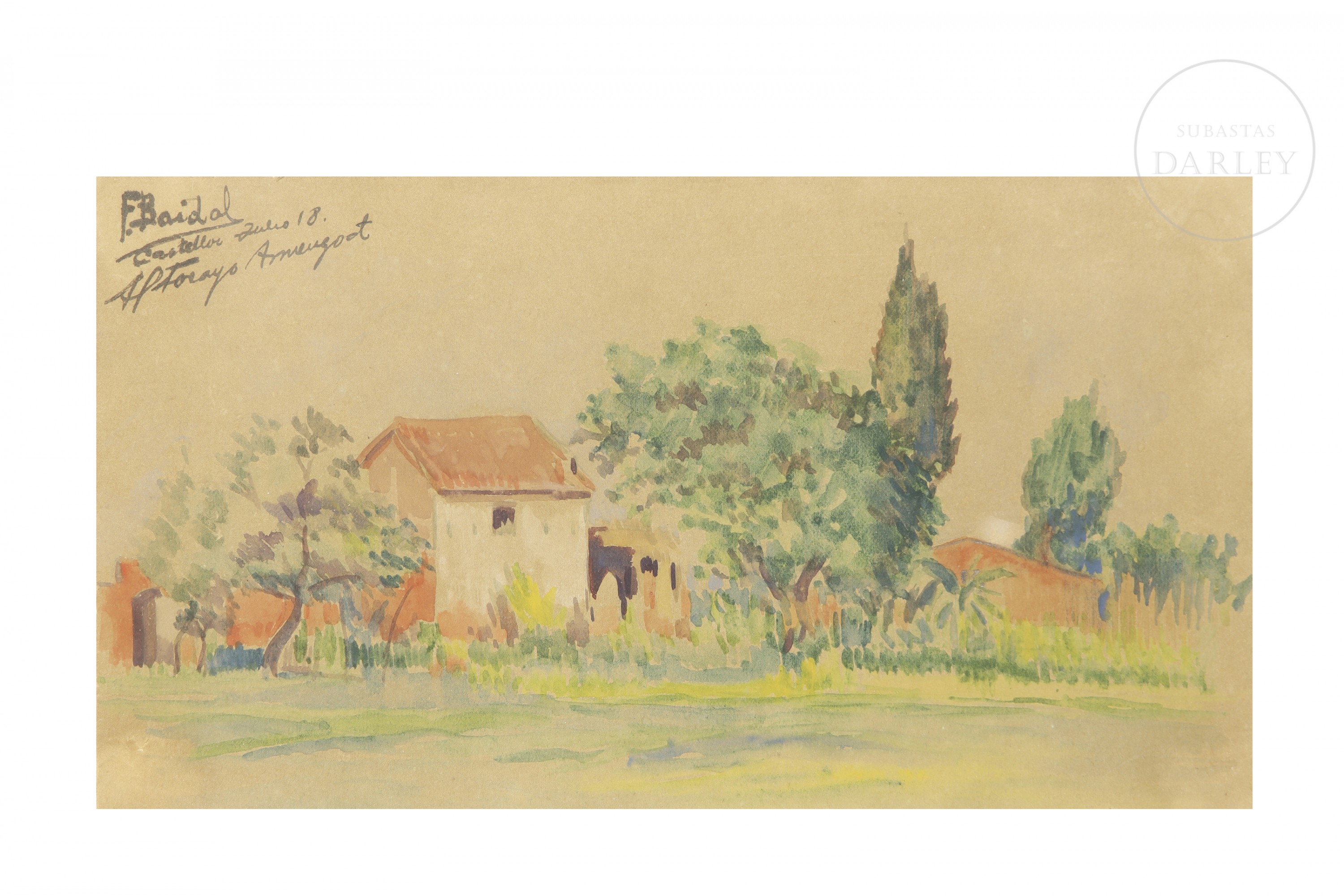 Acuarela sobre papel. Firmada "F. Baidal", fechada y dedicada en la esquina superior izquierda.