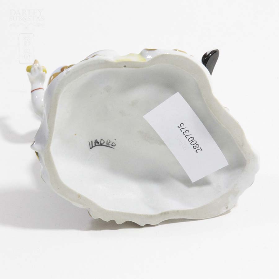 Preciosa figura de Lladró , de las primeras figuras fabricadas por esta prestigiosa marca. Esta fantastica pieza elaborada en los primeros años es una creación de clara inspiración rococó, que evocan las obras de porcelana Alemana de Meissen o Sevres.
