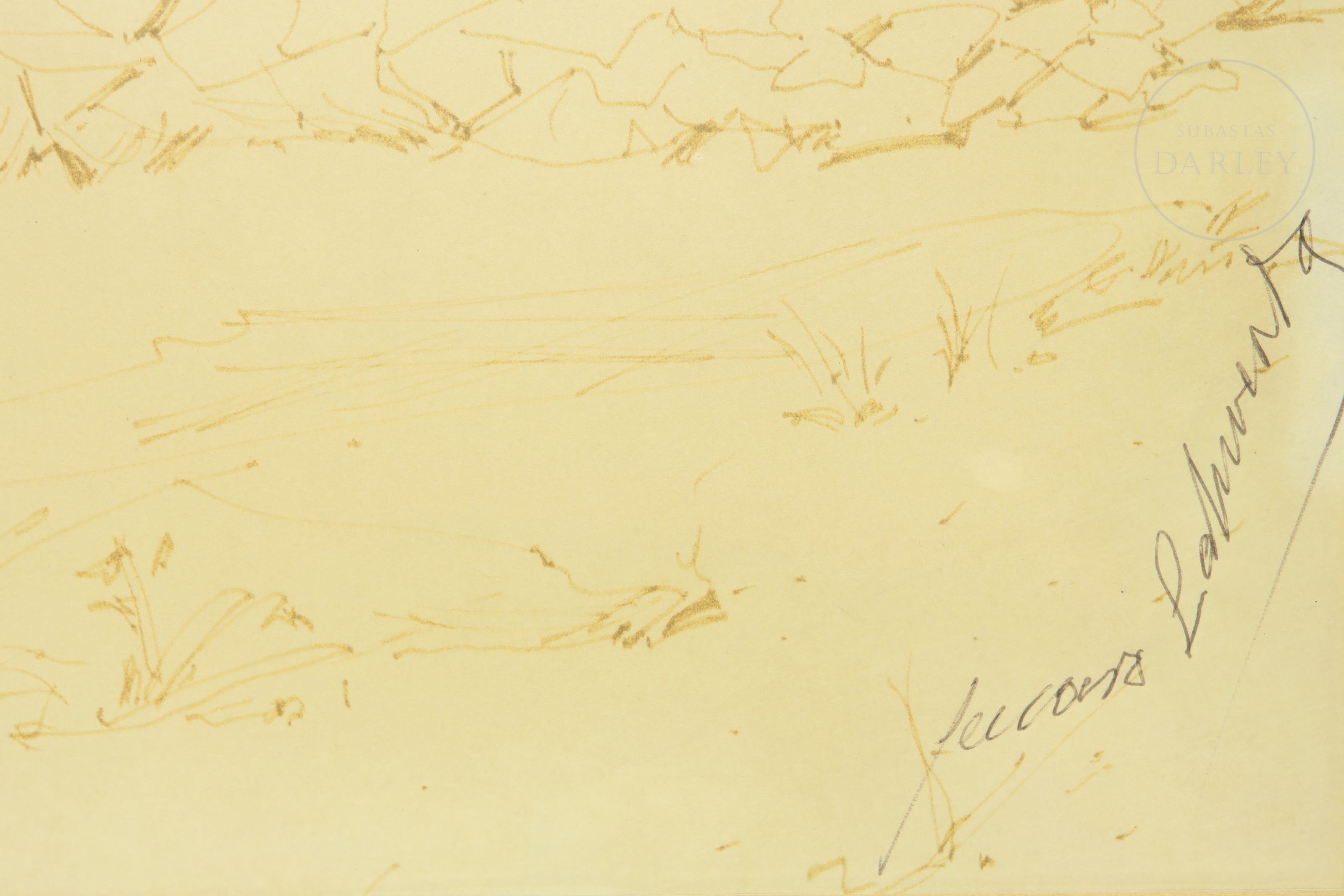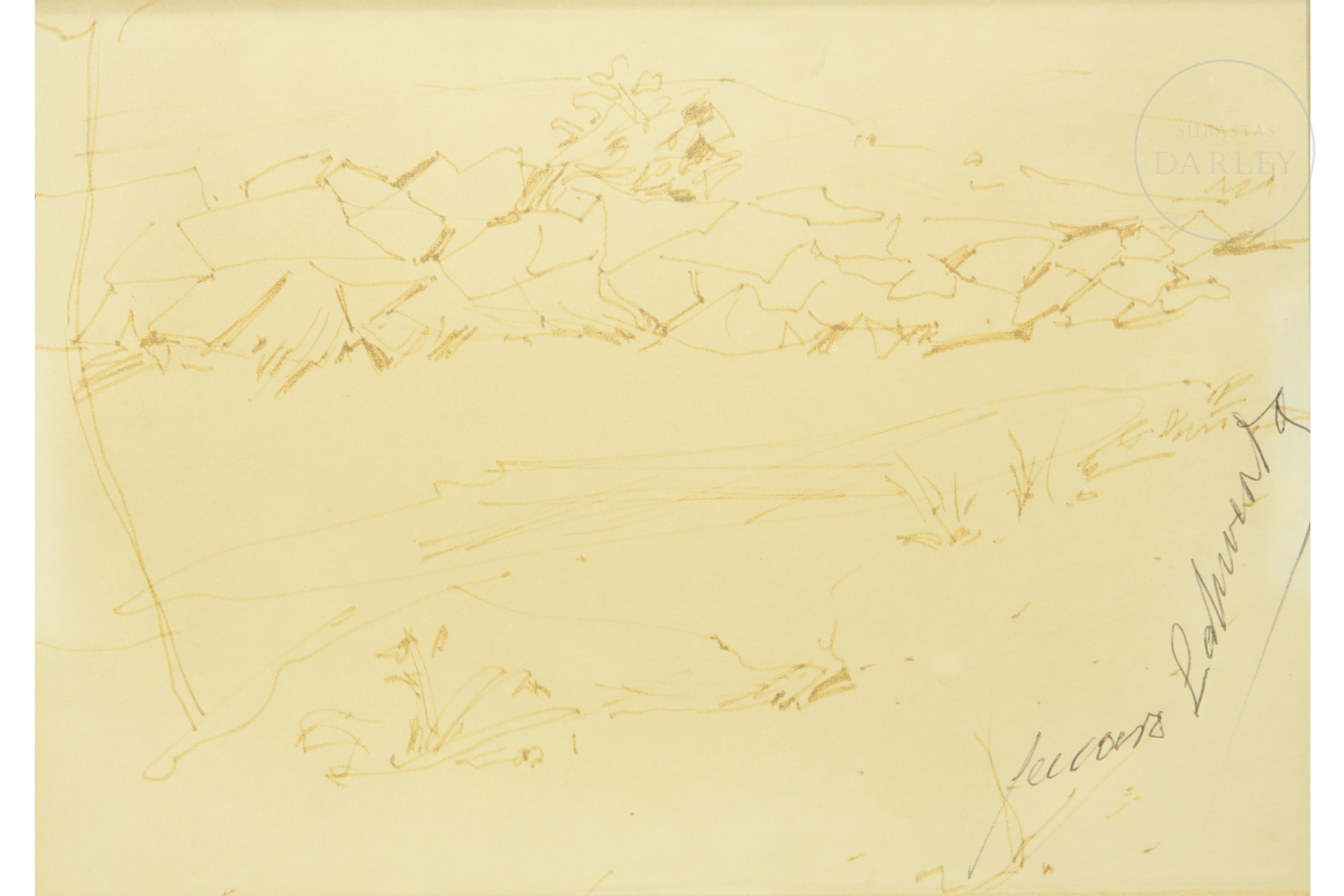 Tinta sobre papel. Firmado "Genaro Lahuerta" en la esquina inferior derecha.