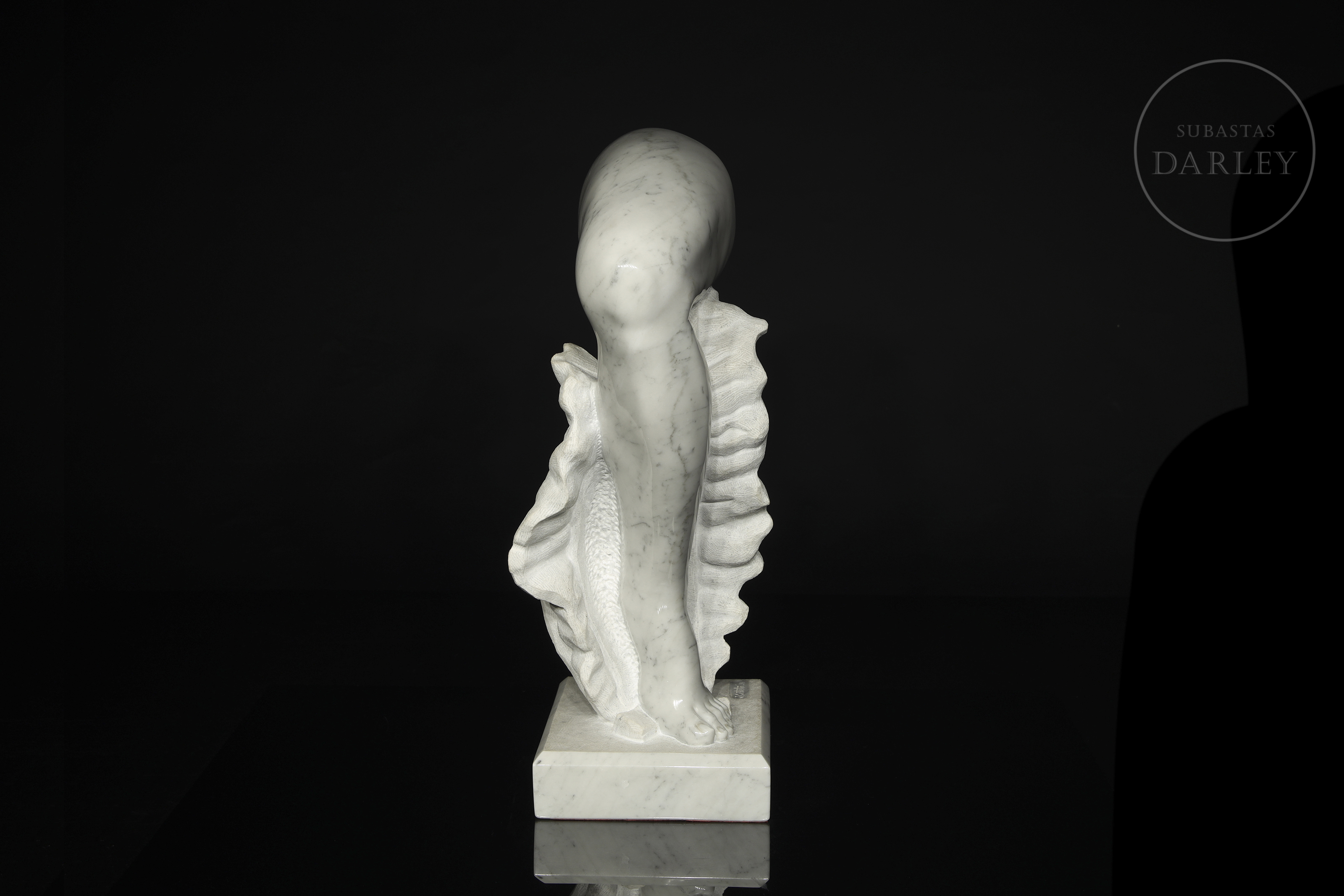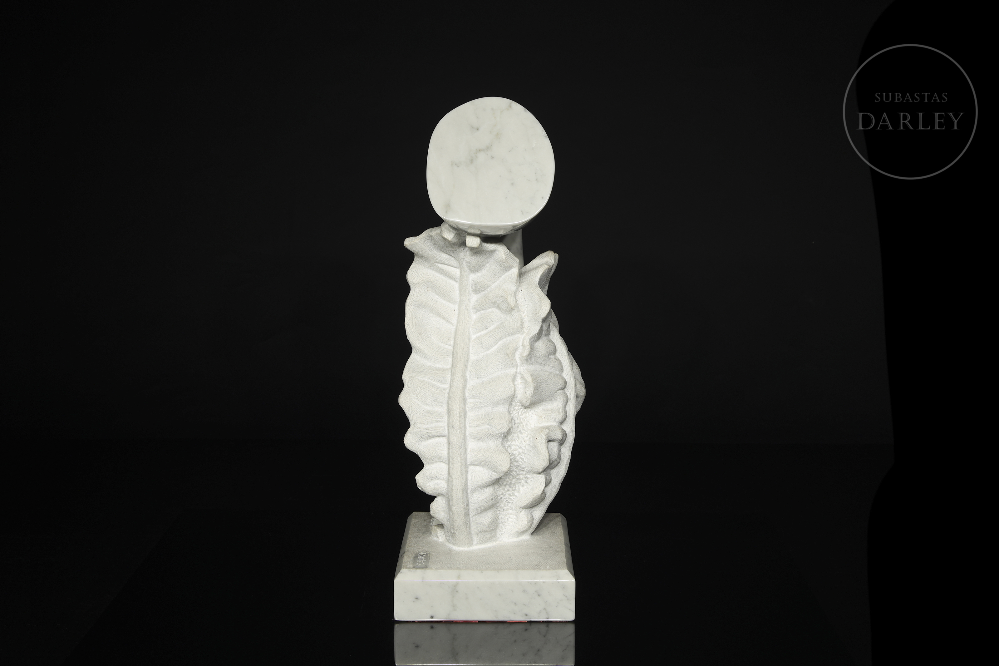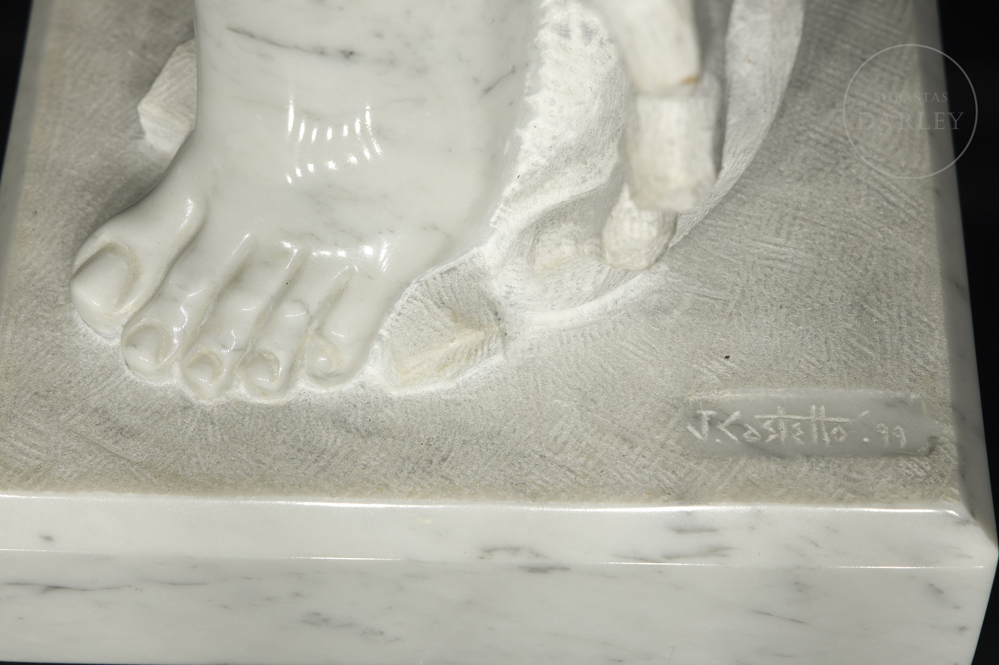 Escultura de mármol blanco tallado. Firmado y fechado "J.Castelló. 99"en la base.