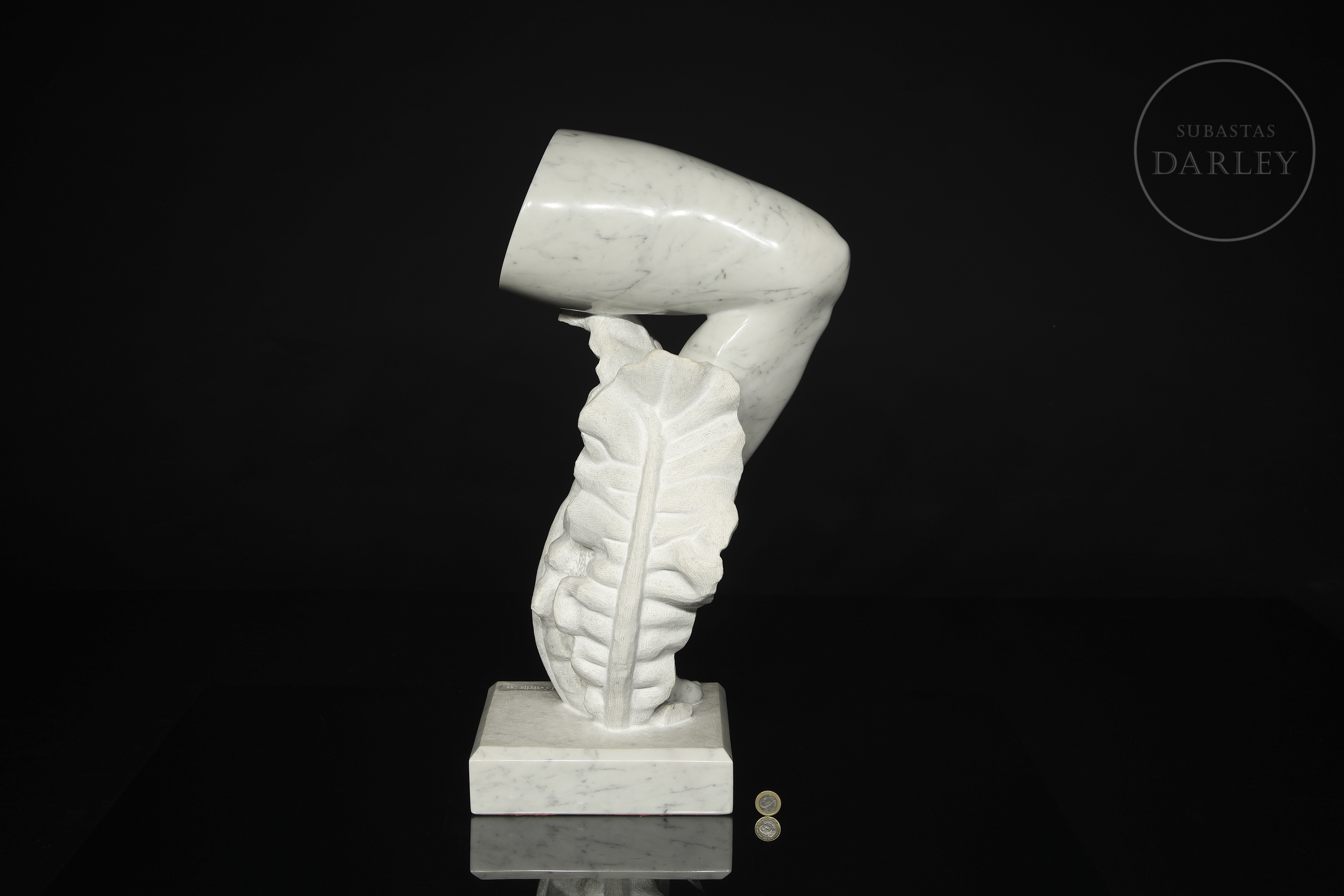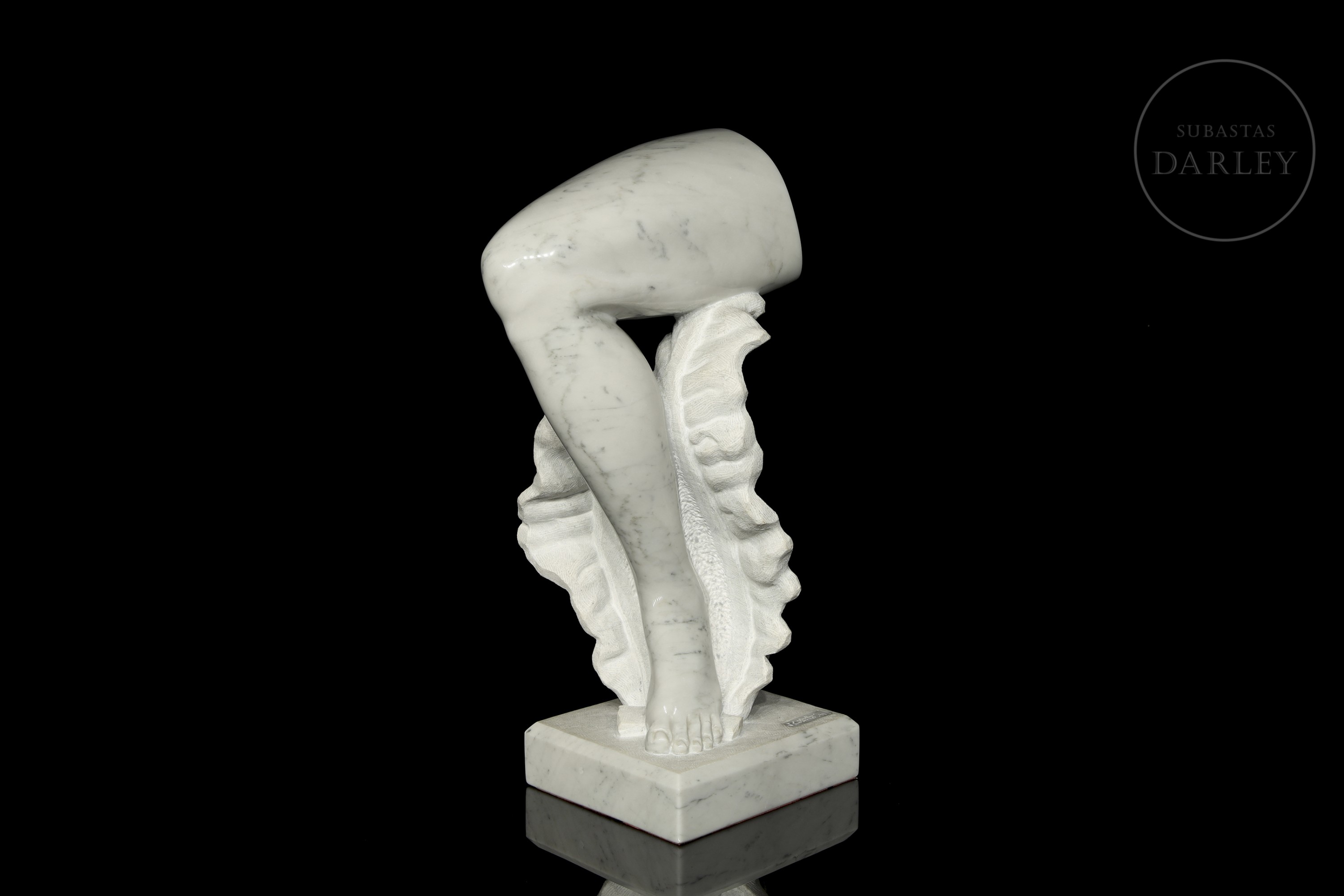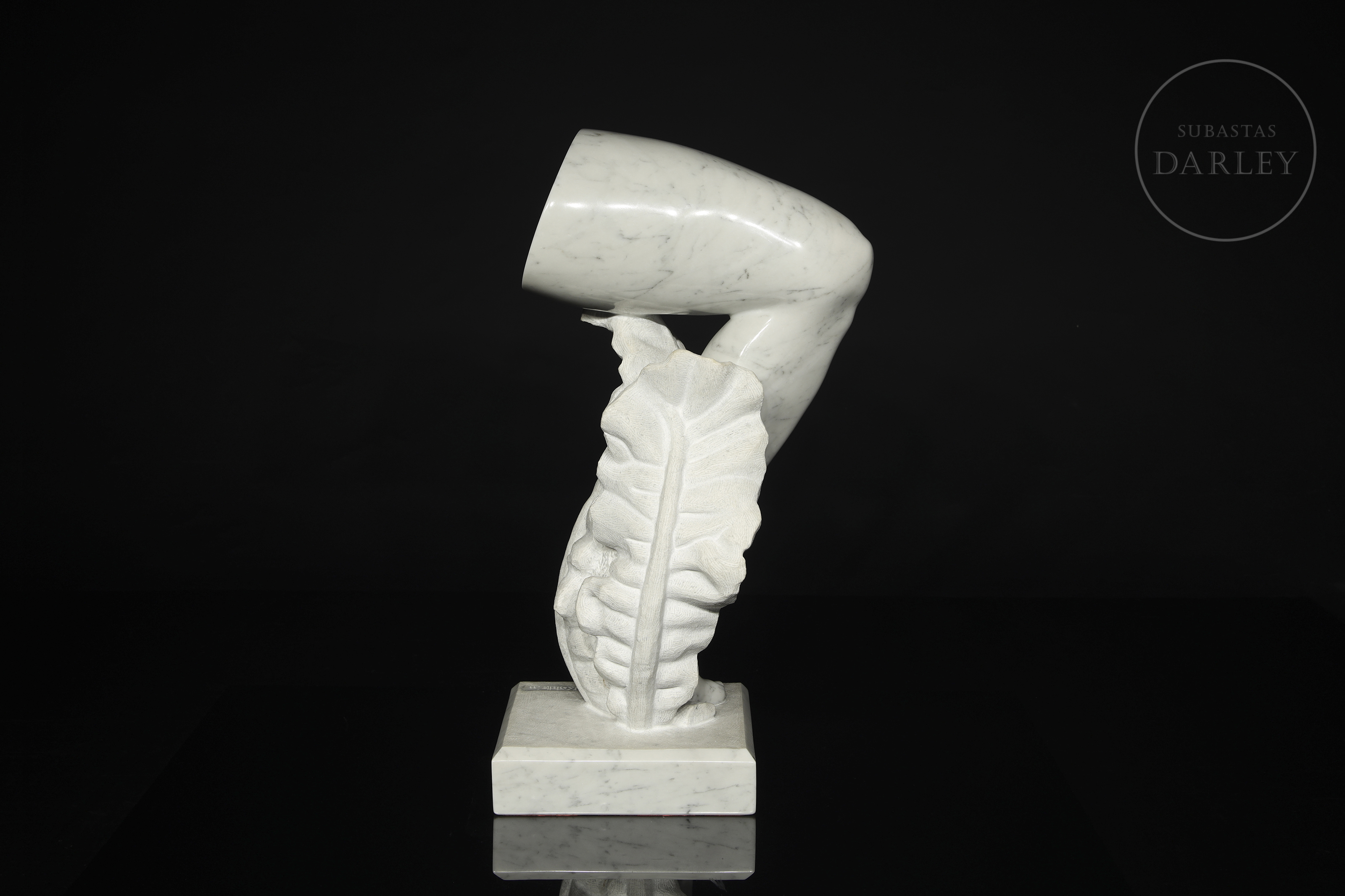 Escultura de mármol blanco tallado. Firmado y fechado "J.Castelló. 99"en la base.