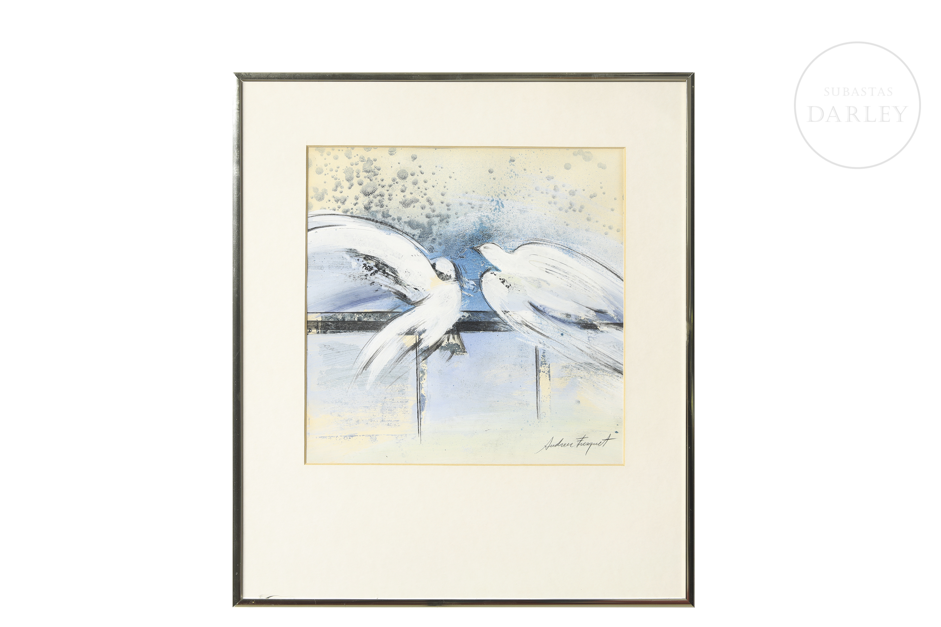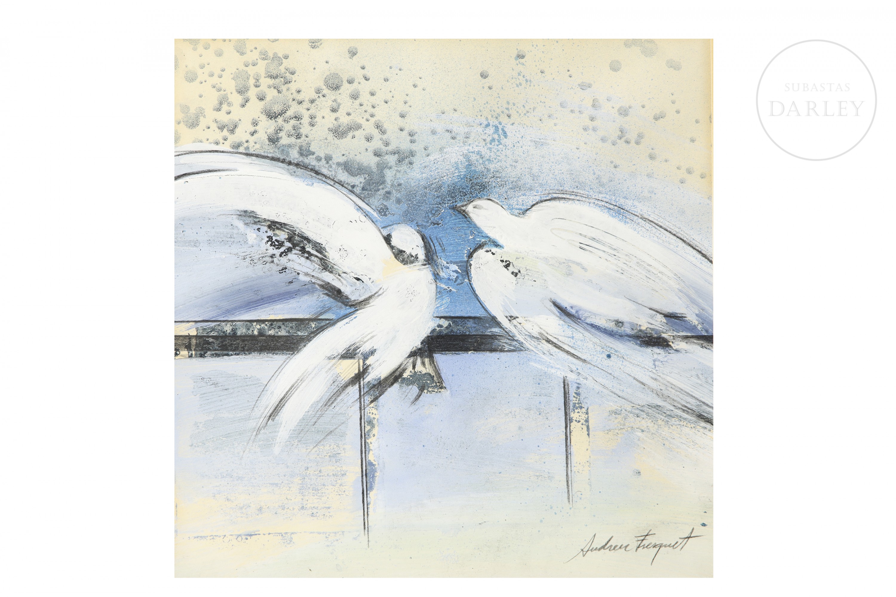 Técnica mixta sobre papel. Firmado "Andreu Fresquet" en la esquina inferior derecha.