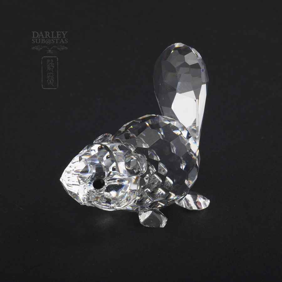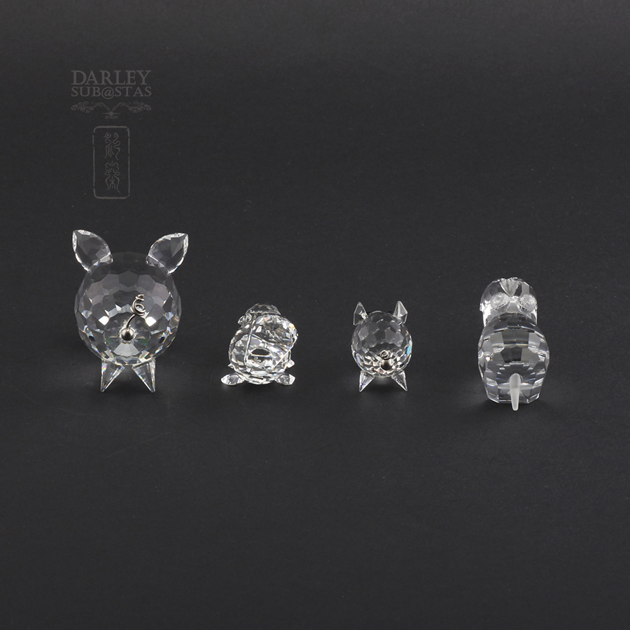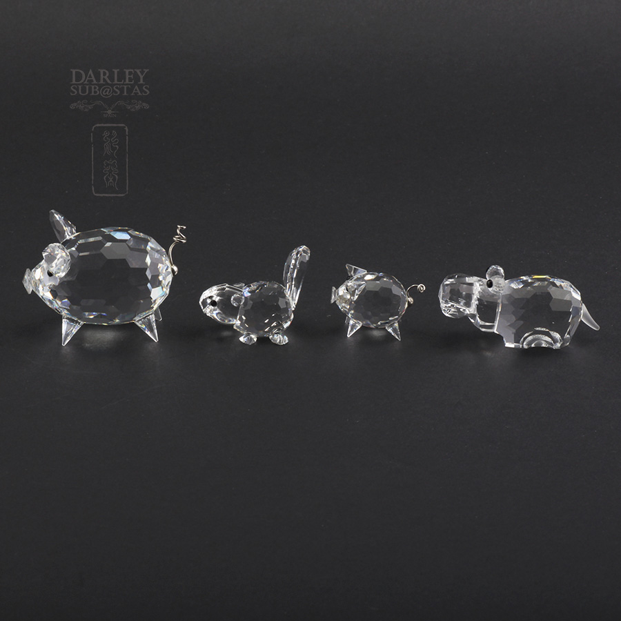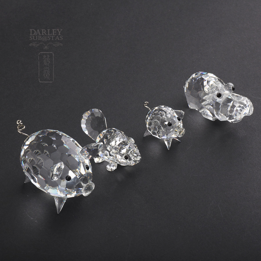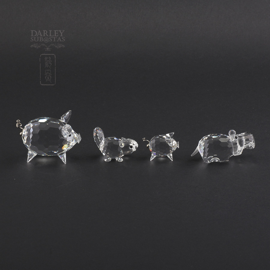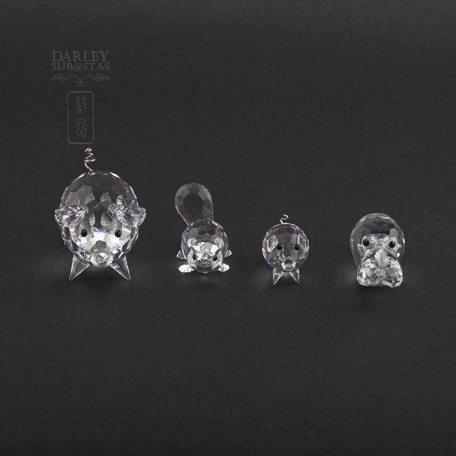Juego de cuatro figuras en cristal de Swarovski, dos cerdos, hipopótamo y castor