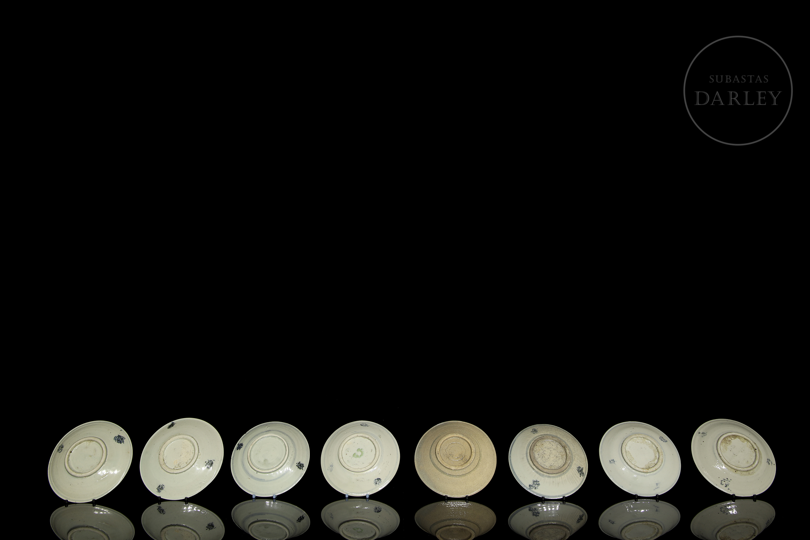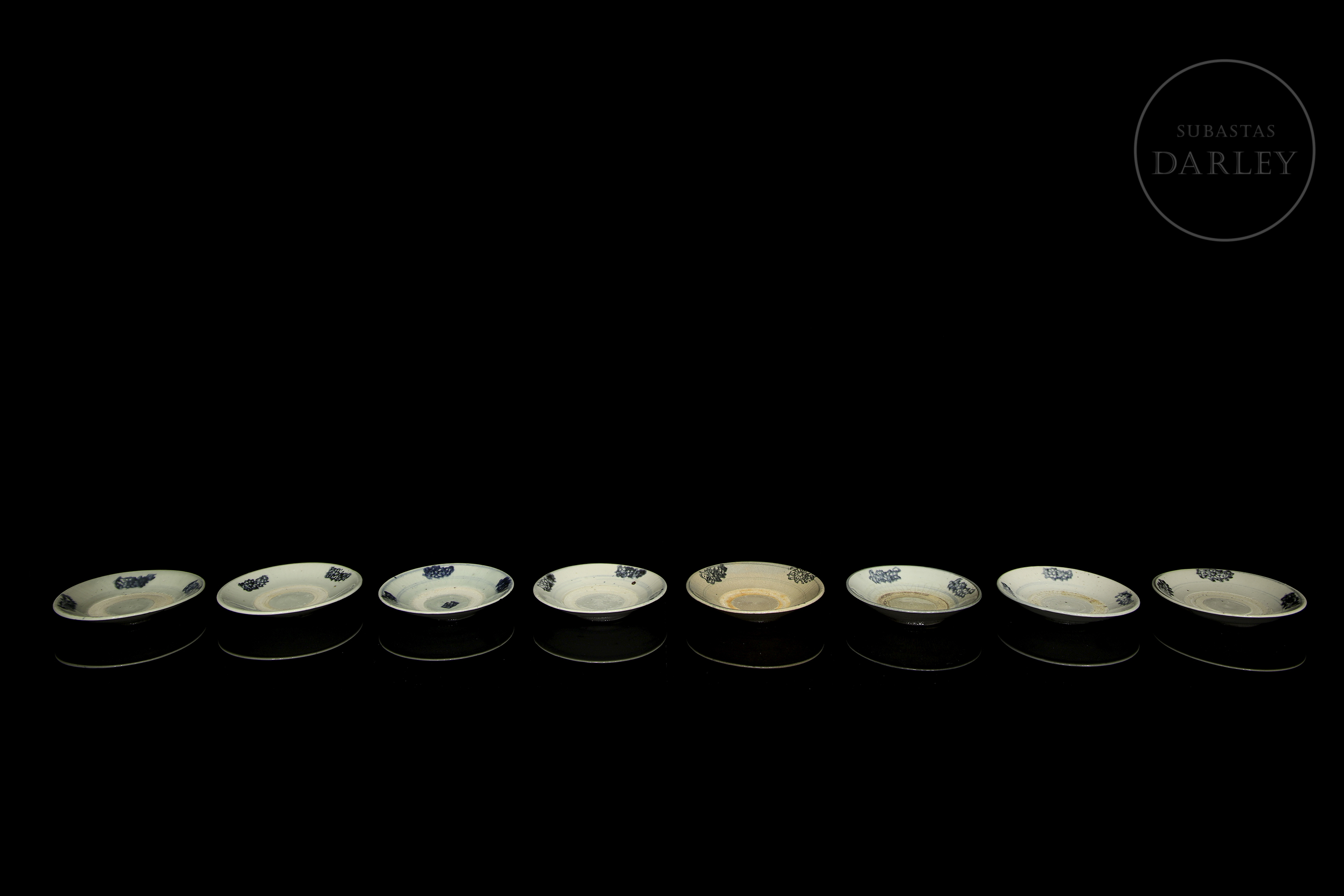 Juego de ocho platos de cerámica esmaltada, dinastía Ming