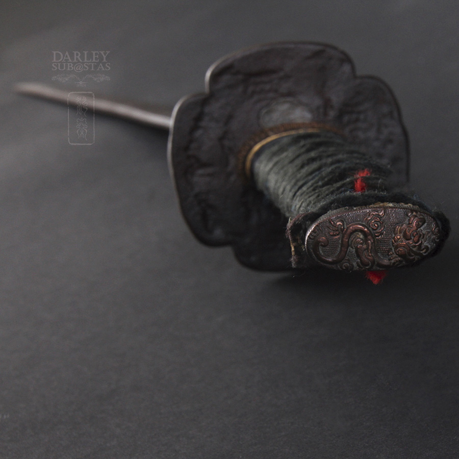 Preciosa Katana, coronel de infantería española destinado en Filipinas, en el archipiélago de Jolo, en el año 1885-86. en el 1888, en un permiso concedido dejo diferentes objetos a su familiares en Barcelona, entre los cuales estaba el objeto de este lote. En Guajam 1886, actualmente Guam, el coronel de infantería lucho contra los los gerrilleros insurgentes de Katiputan, de los cuales recogió algunos de estos objetos para recuerdo.