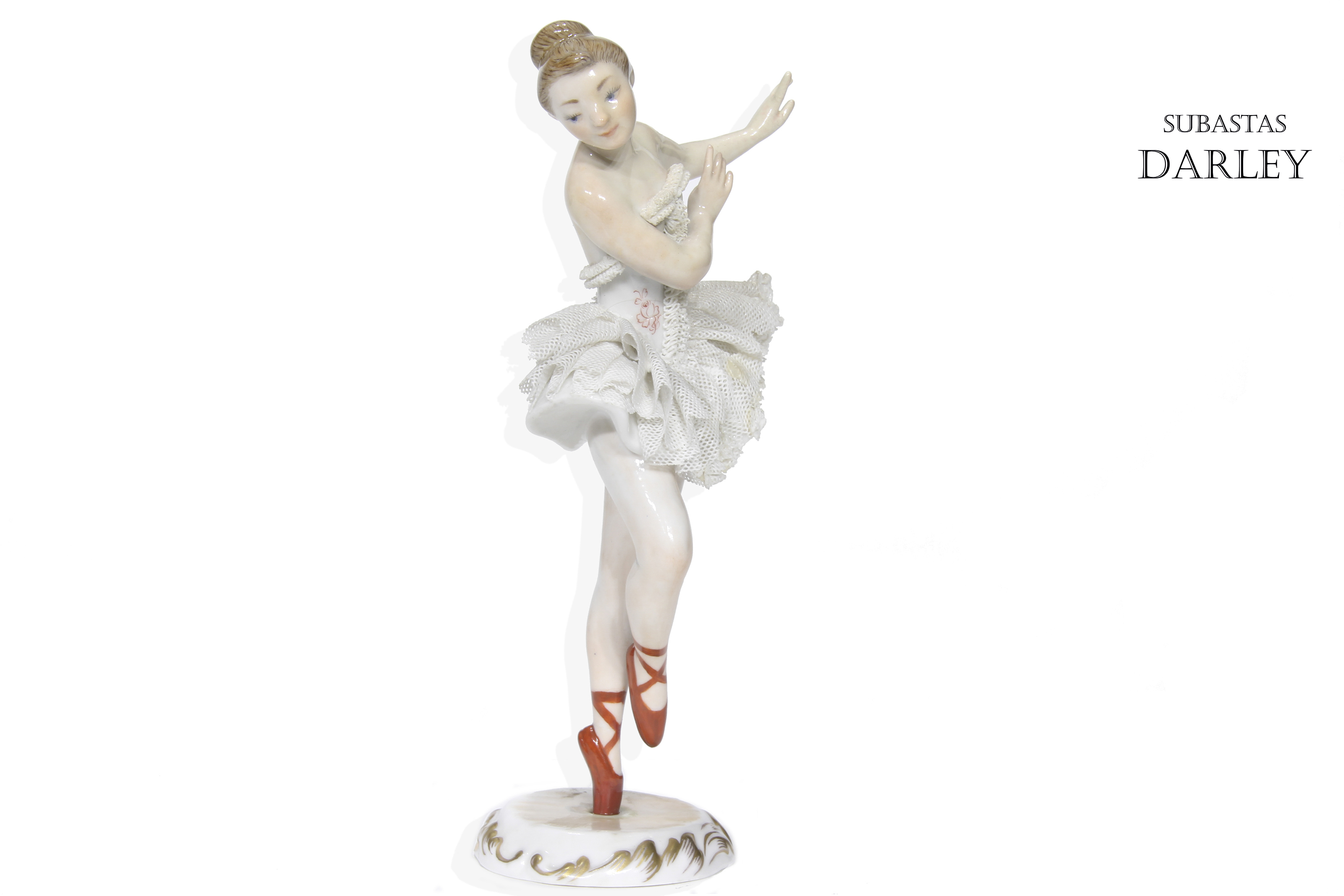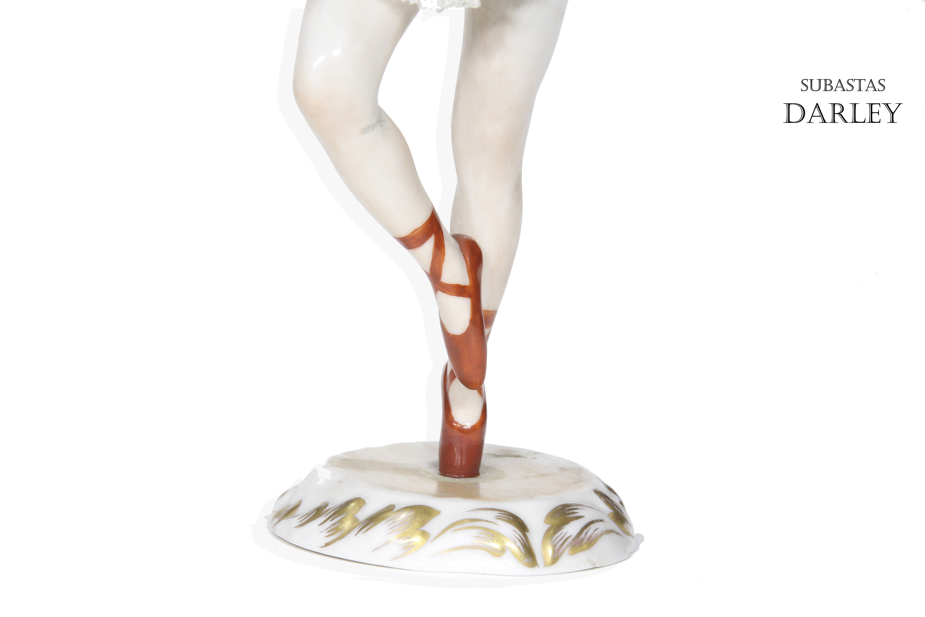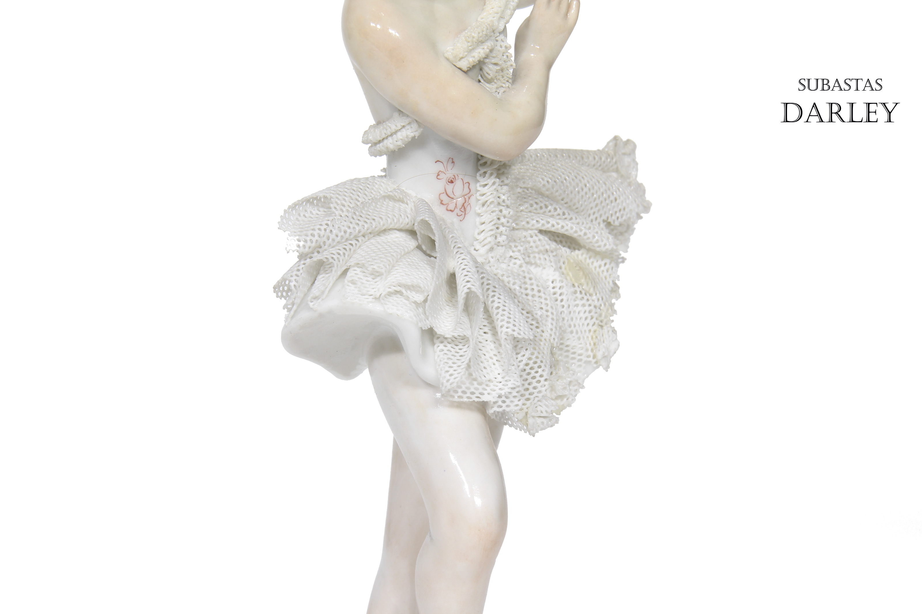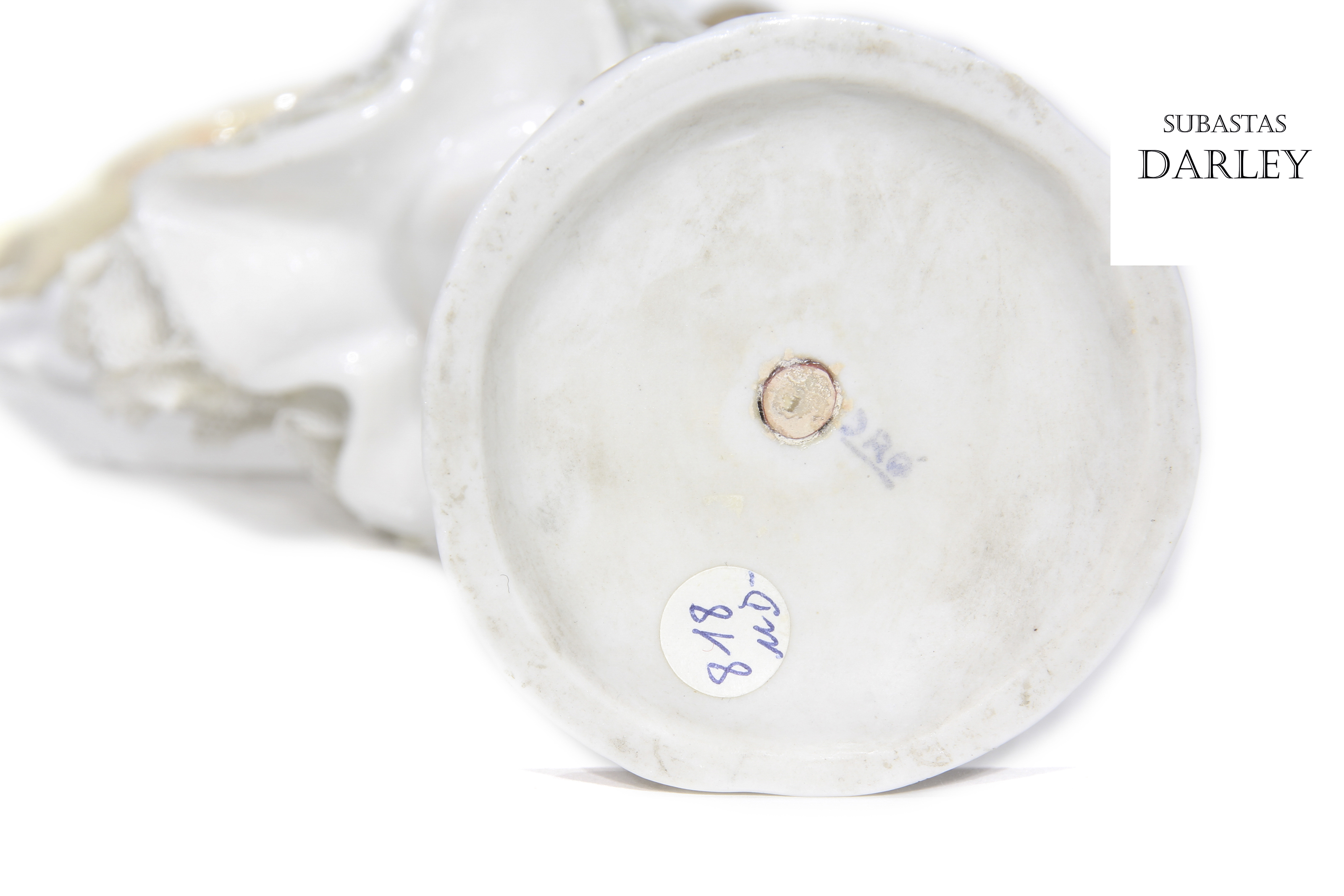 Porcelana brillo. Sellado en la base. Presenta desperfectos en la falda.