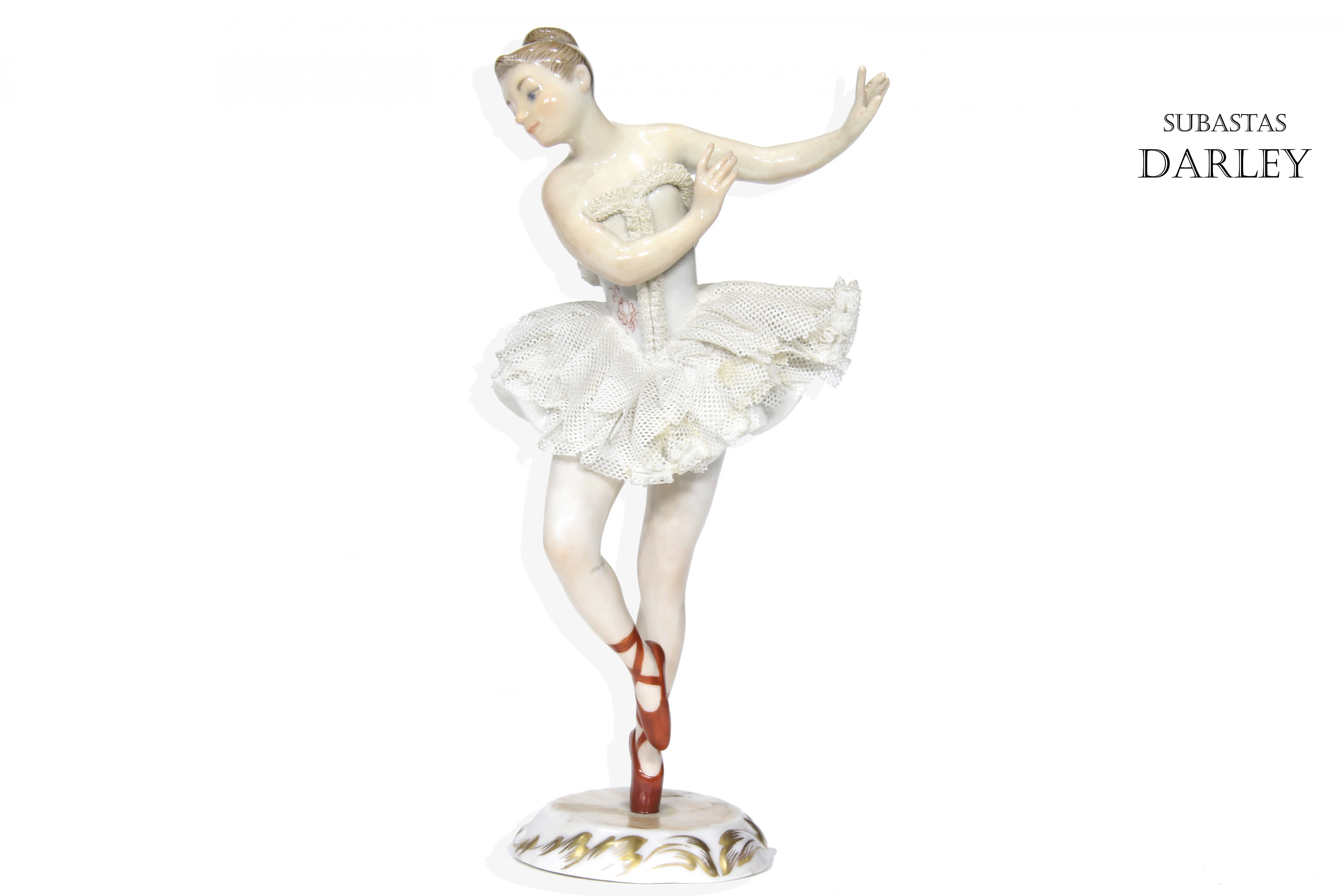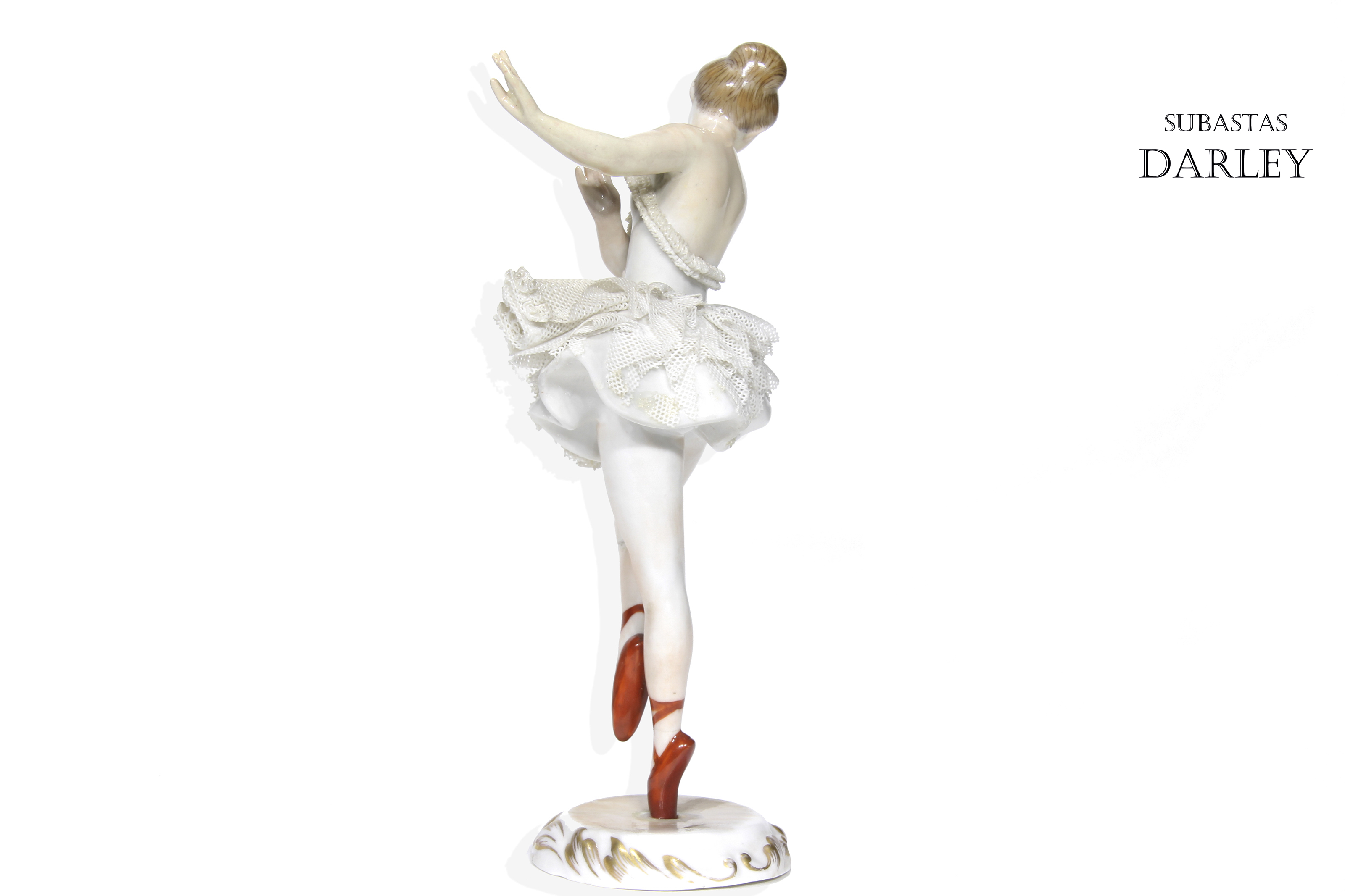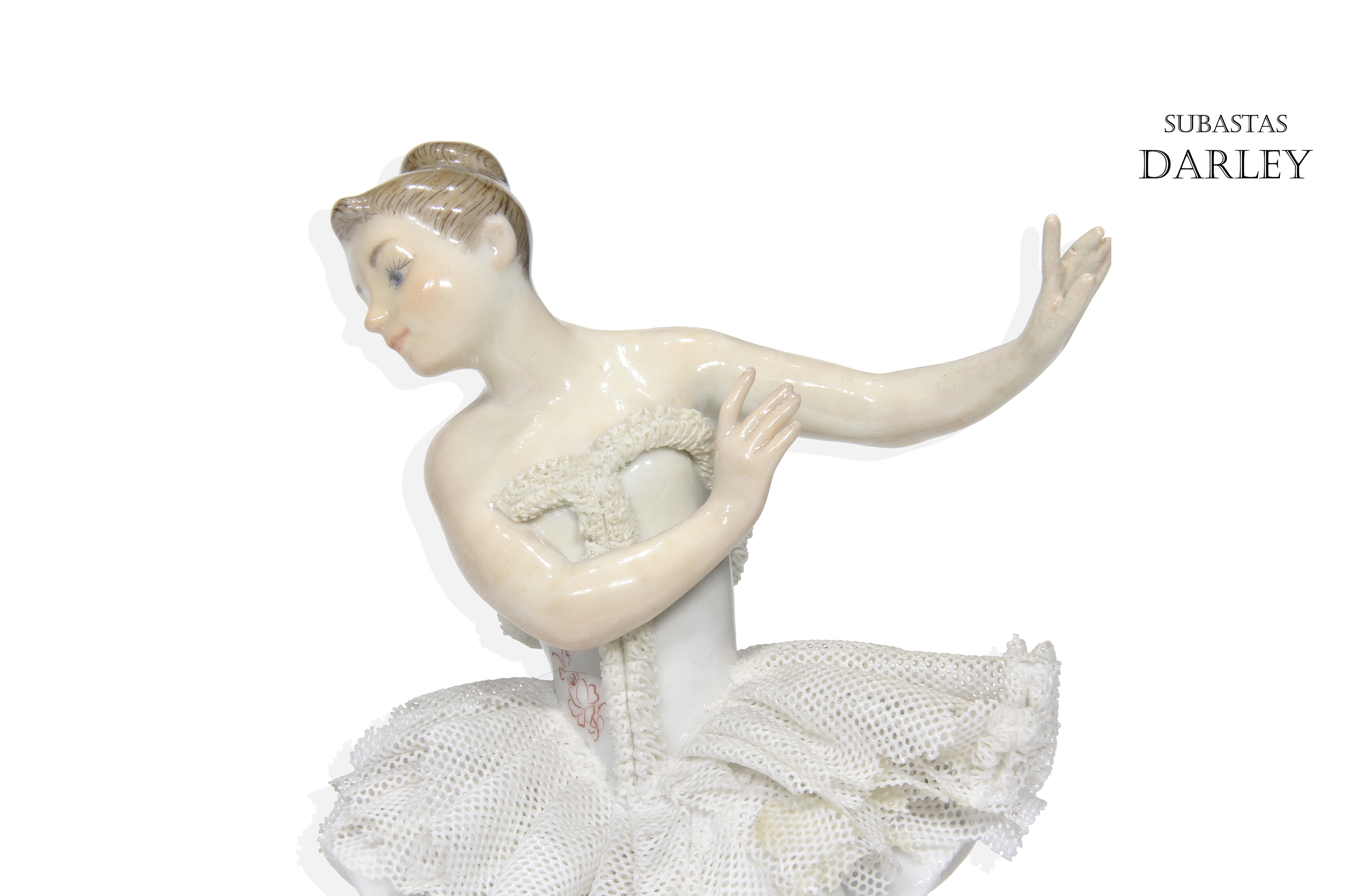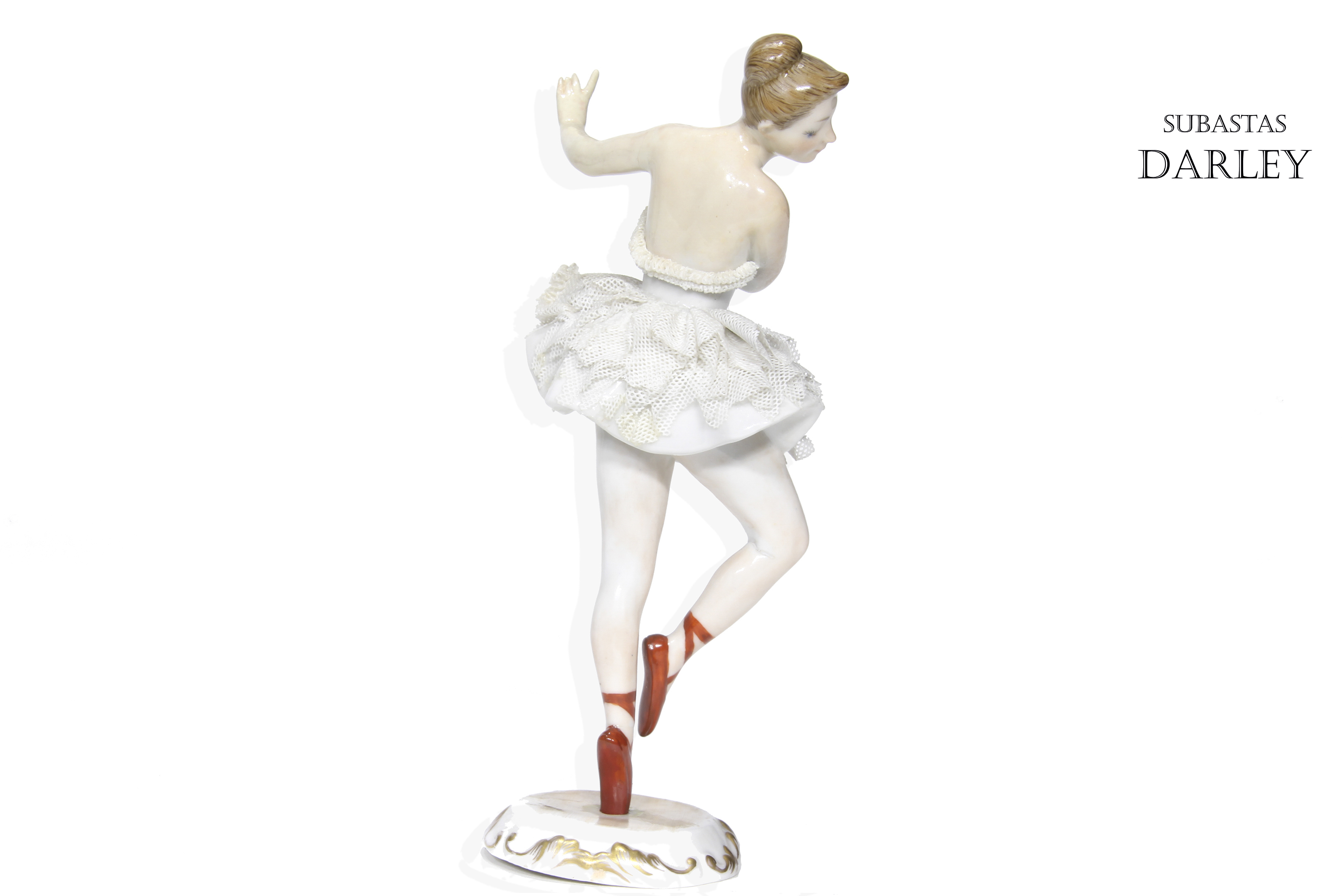 Porcelana brillo. Sellado en la base. Presenta desperfectos en la falda.