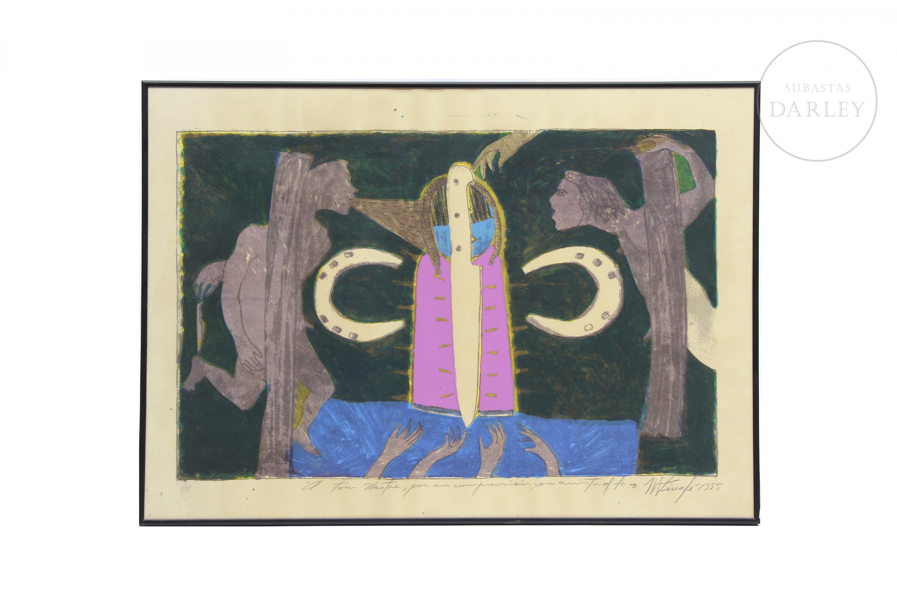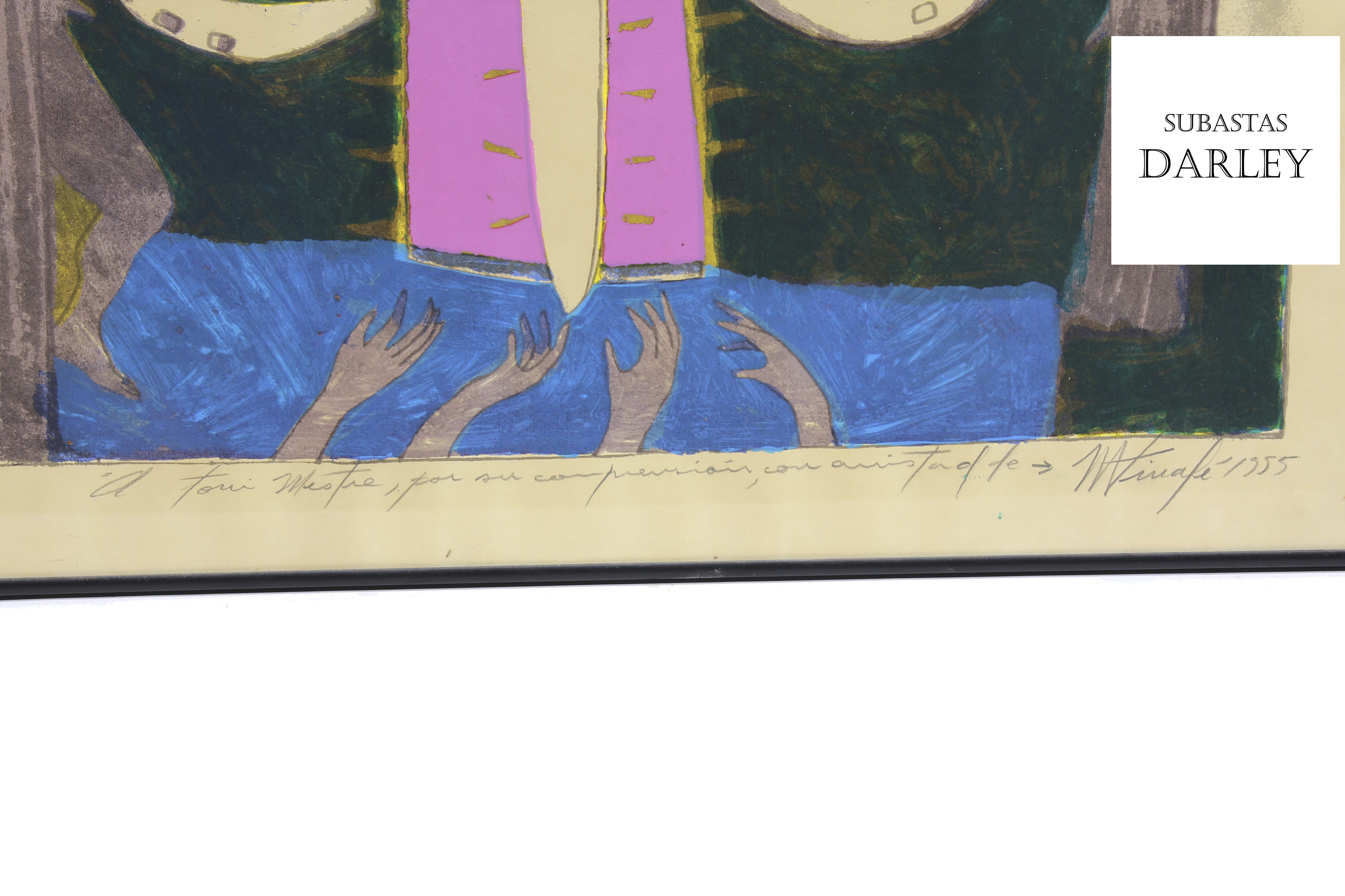 Litografía sobre papel. Numerada "71/100" en la esquina inferior izquierda. Dedicada, firmada y fechada en el margen inferior derecho.