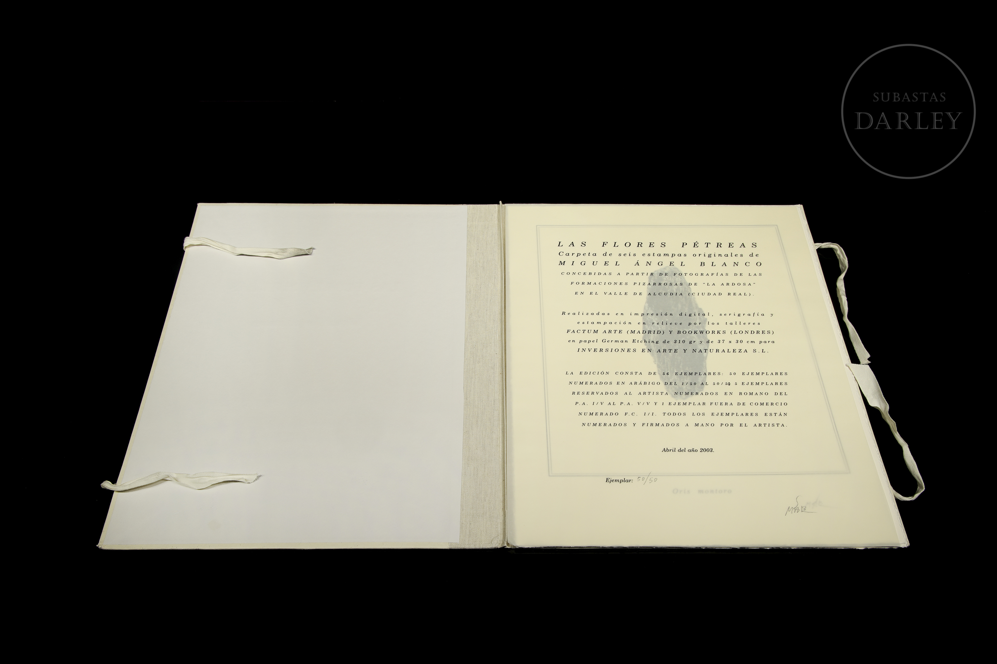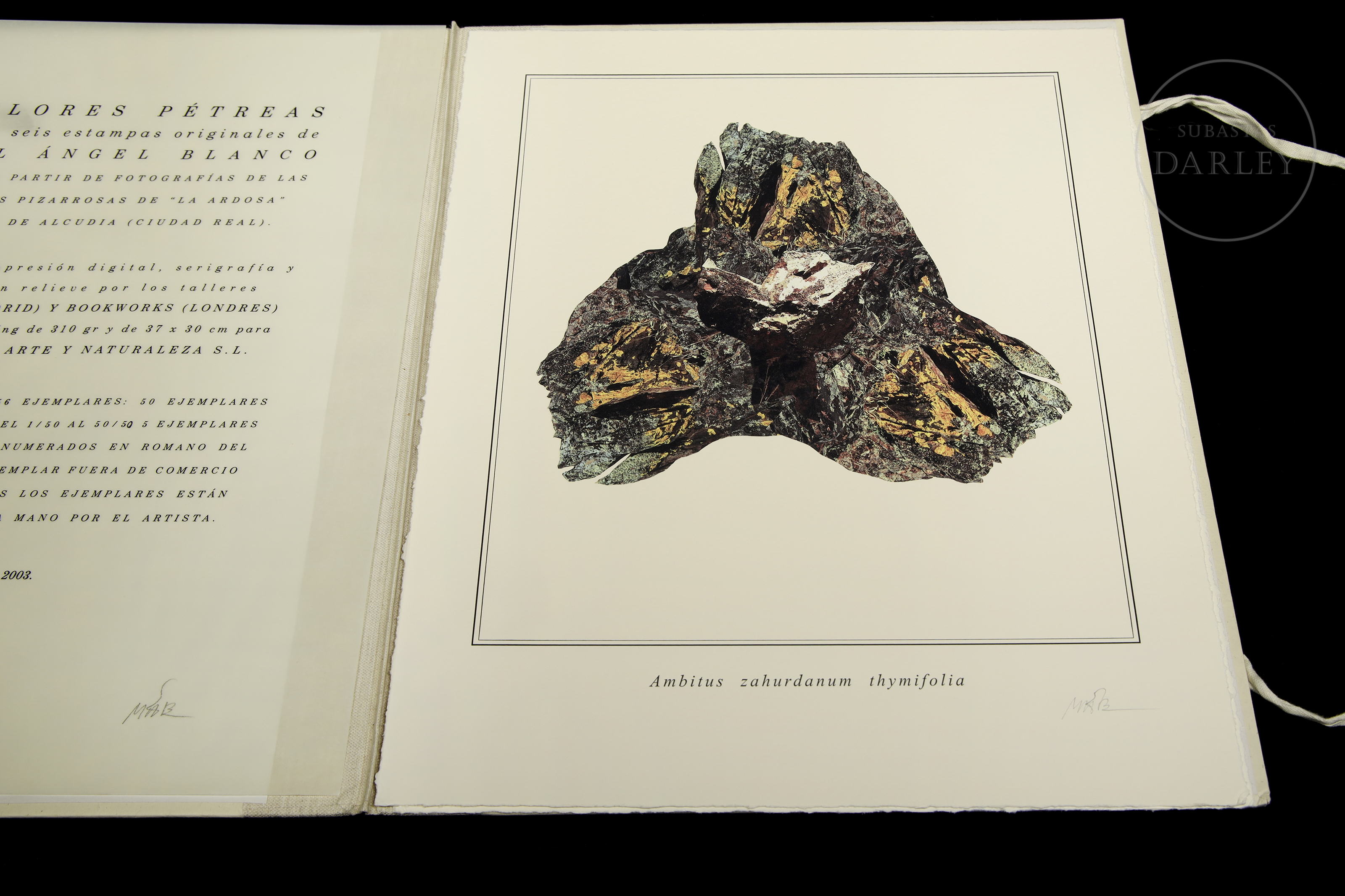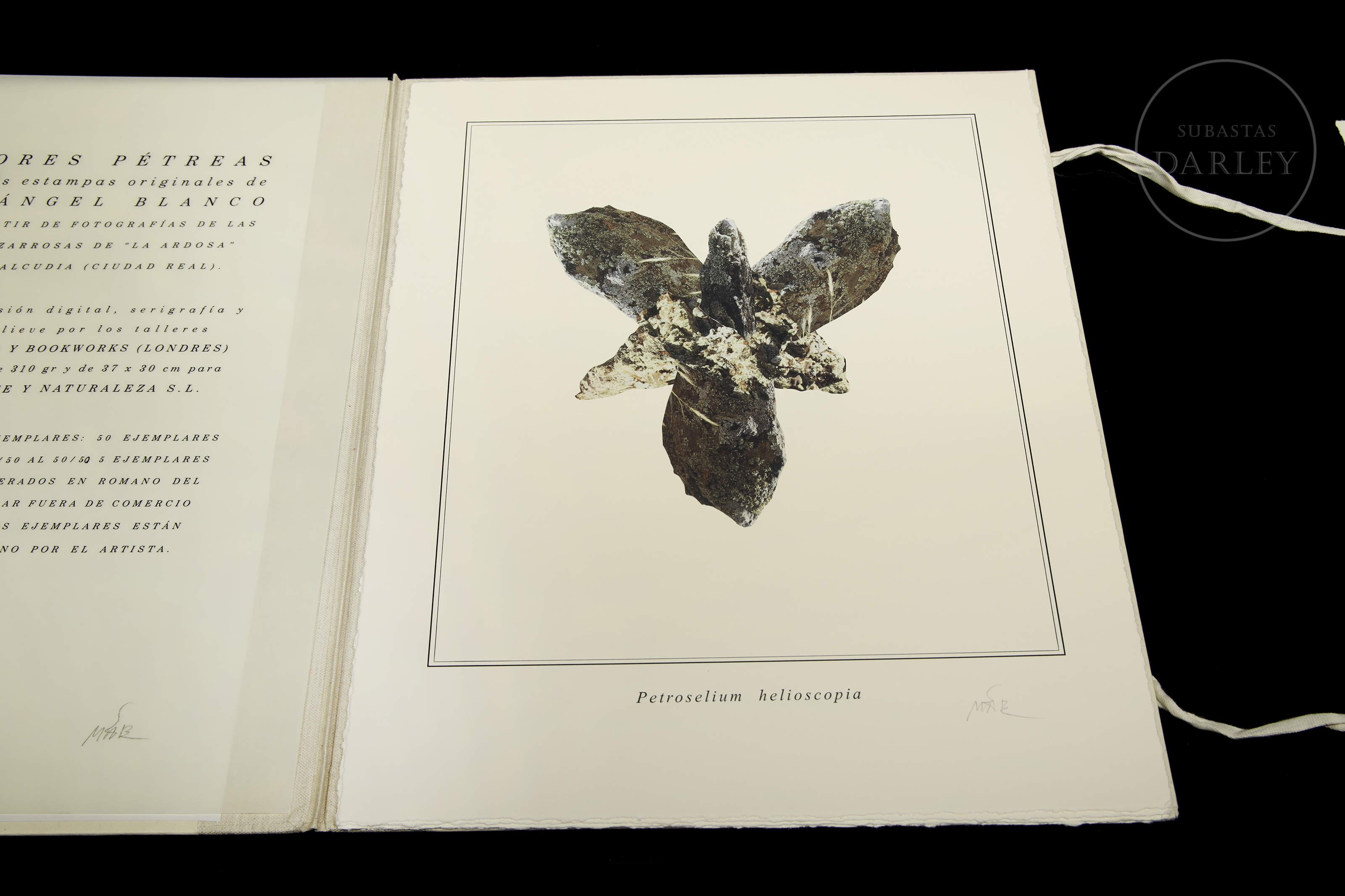 Carpeta con 6 imágenes en estampación Digital, serigrafía y estampación en relieve sobre papel. Composiciones de piedras dispuestas de manera que evocan elementos florales. Firmadas en la esquina inferior derecha. Presenta certificado de autenticidad.