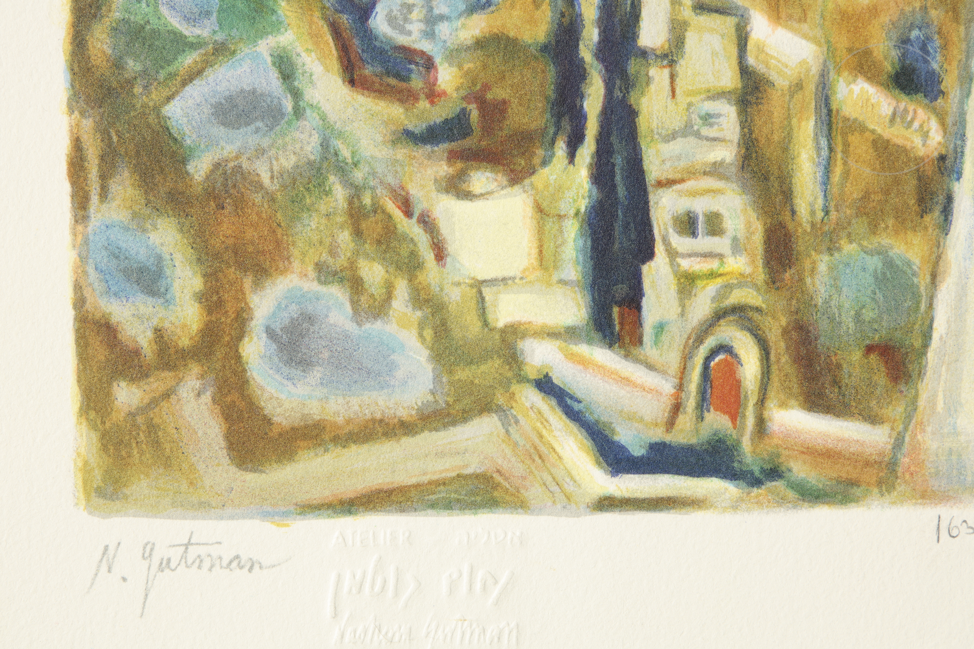 Litografía sobre papel. Firmado ''N. Gutman'' en la propia plancha, en la esquina inferior izquierda. Con sello seco con la marca del atelier. Numerado 163/1000" en el margen inferior.