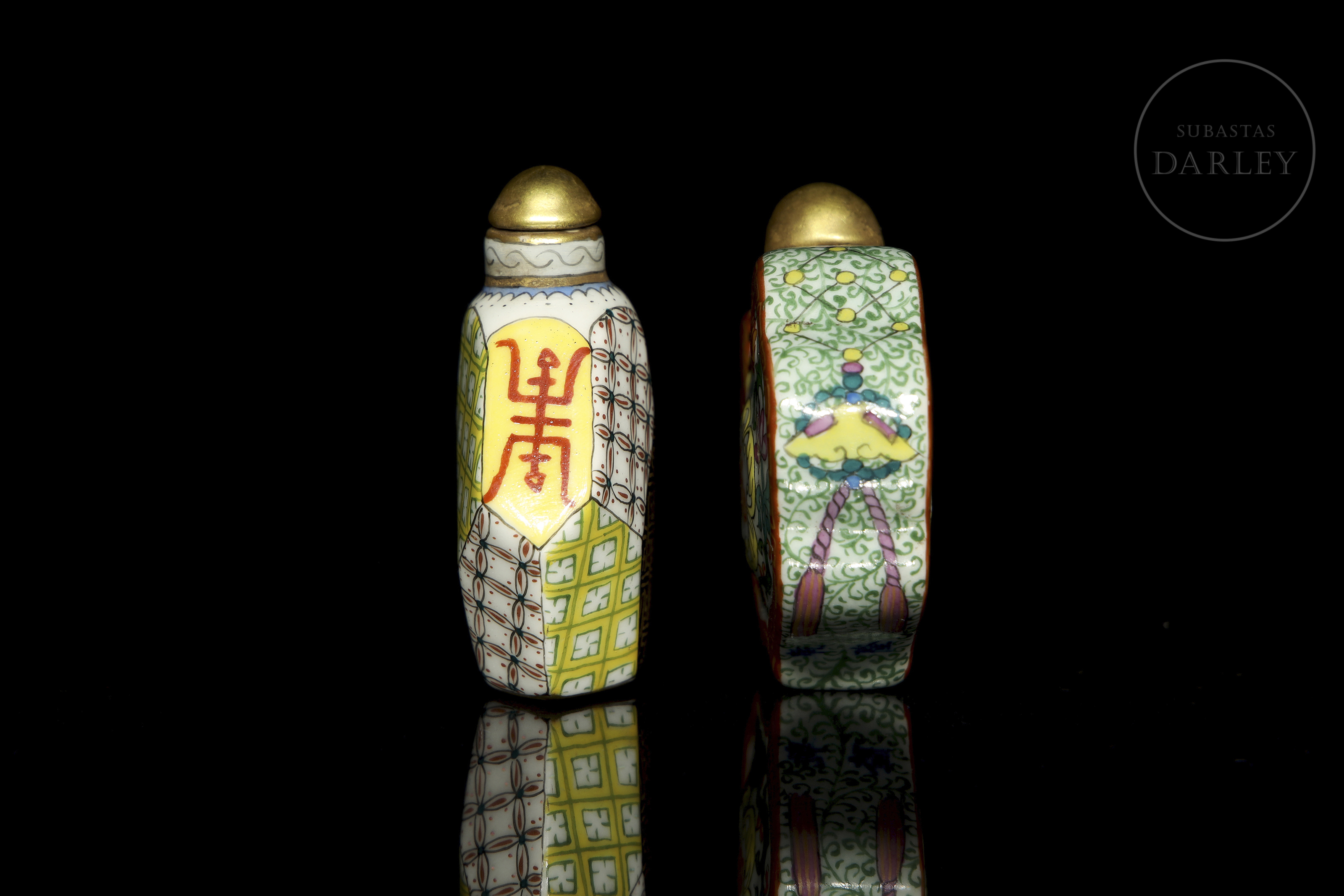 Inicio > Venta Directa > Botellas de rapé > Pareja de botellas de rapé de porcelana esmaltada, con sello Qianlong