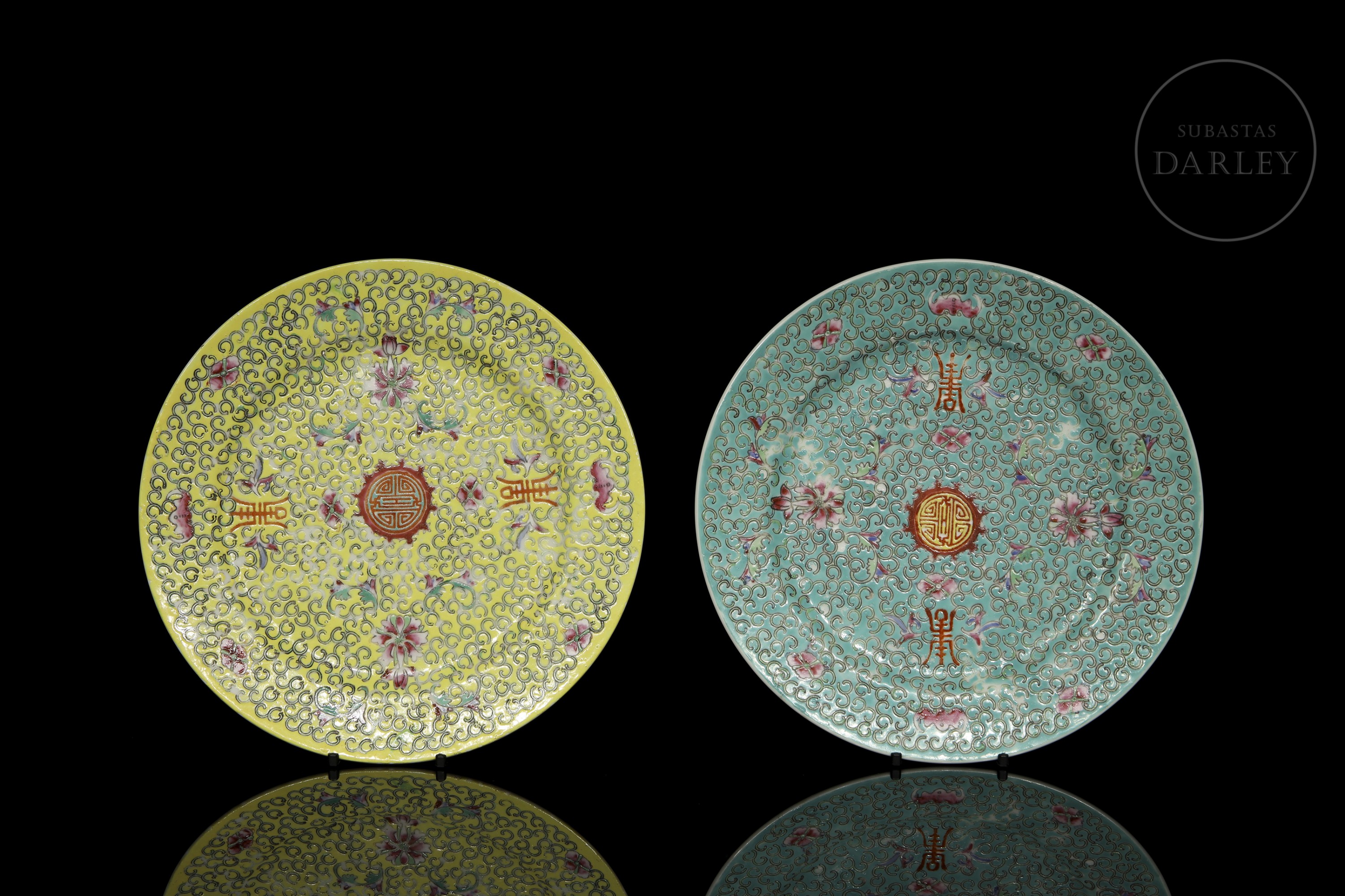 Inicio > Venta Directa > Cerámica y Porcelana Asiática > Pareja de platos esmaltados "Lotos y murciélagos", s.XX