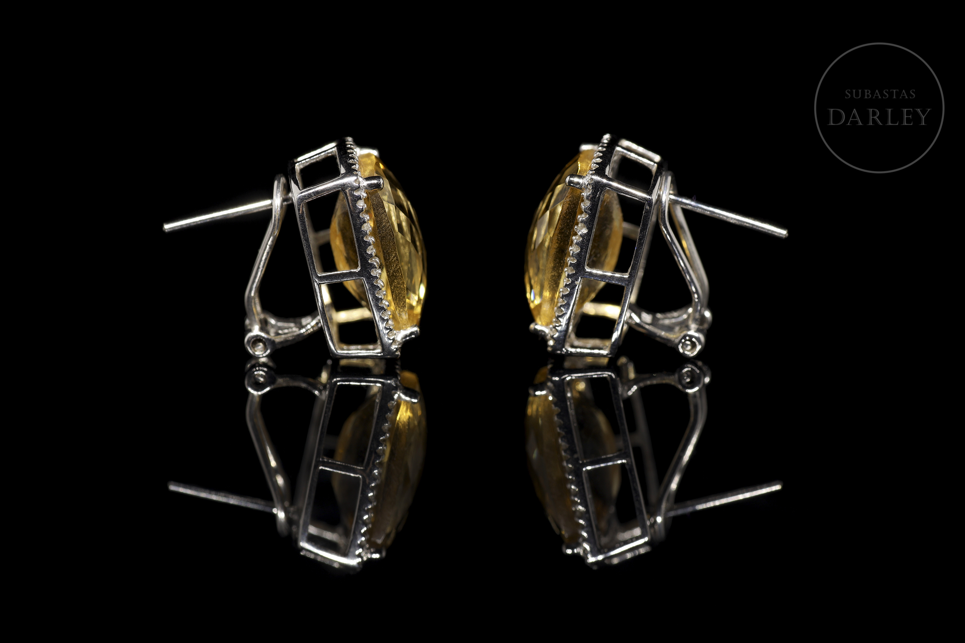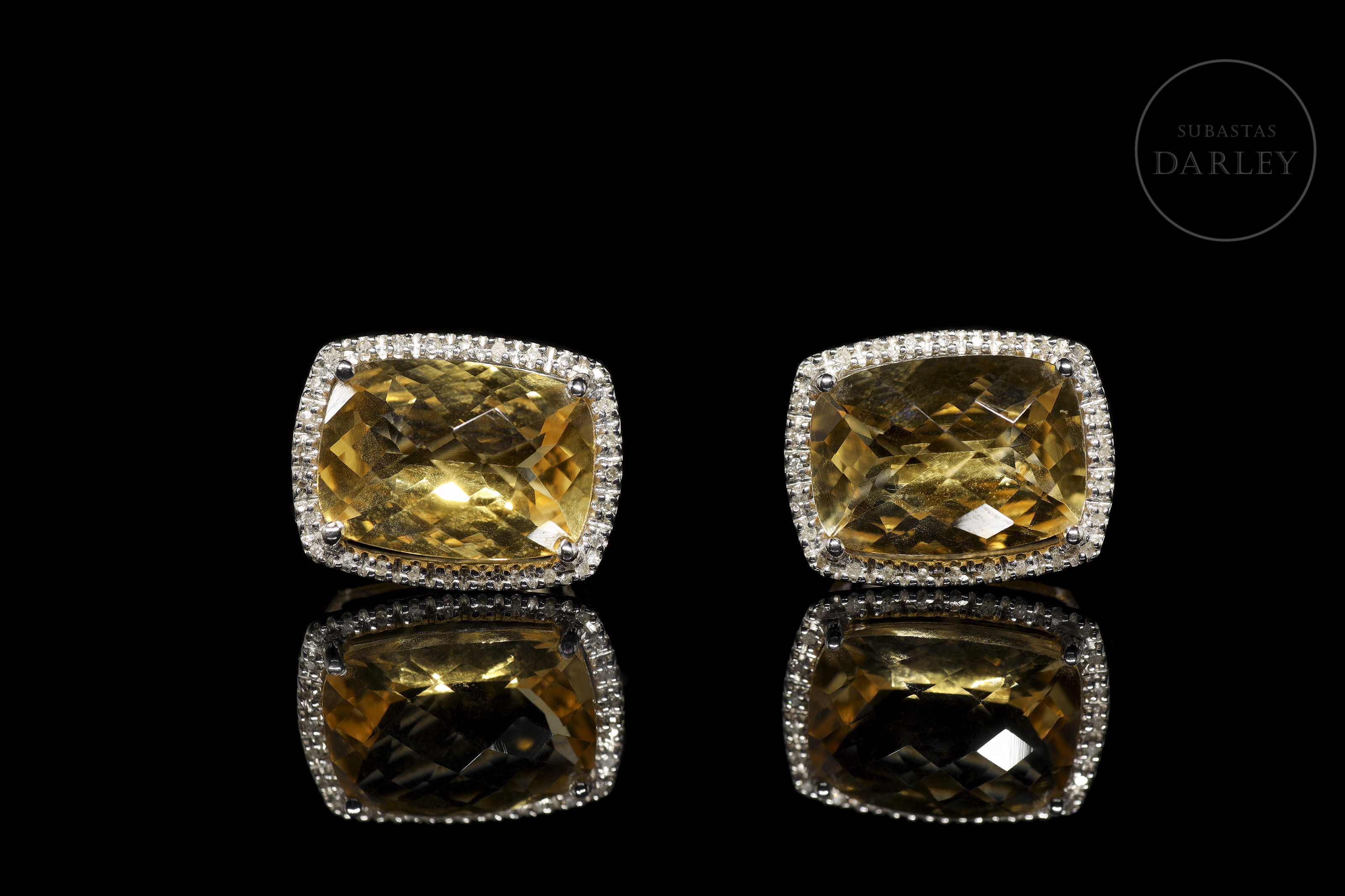 Pendientes en oro blanco de 18 kt con citrinos y diamantes