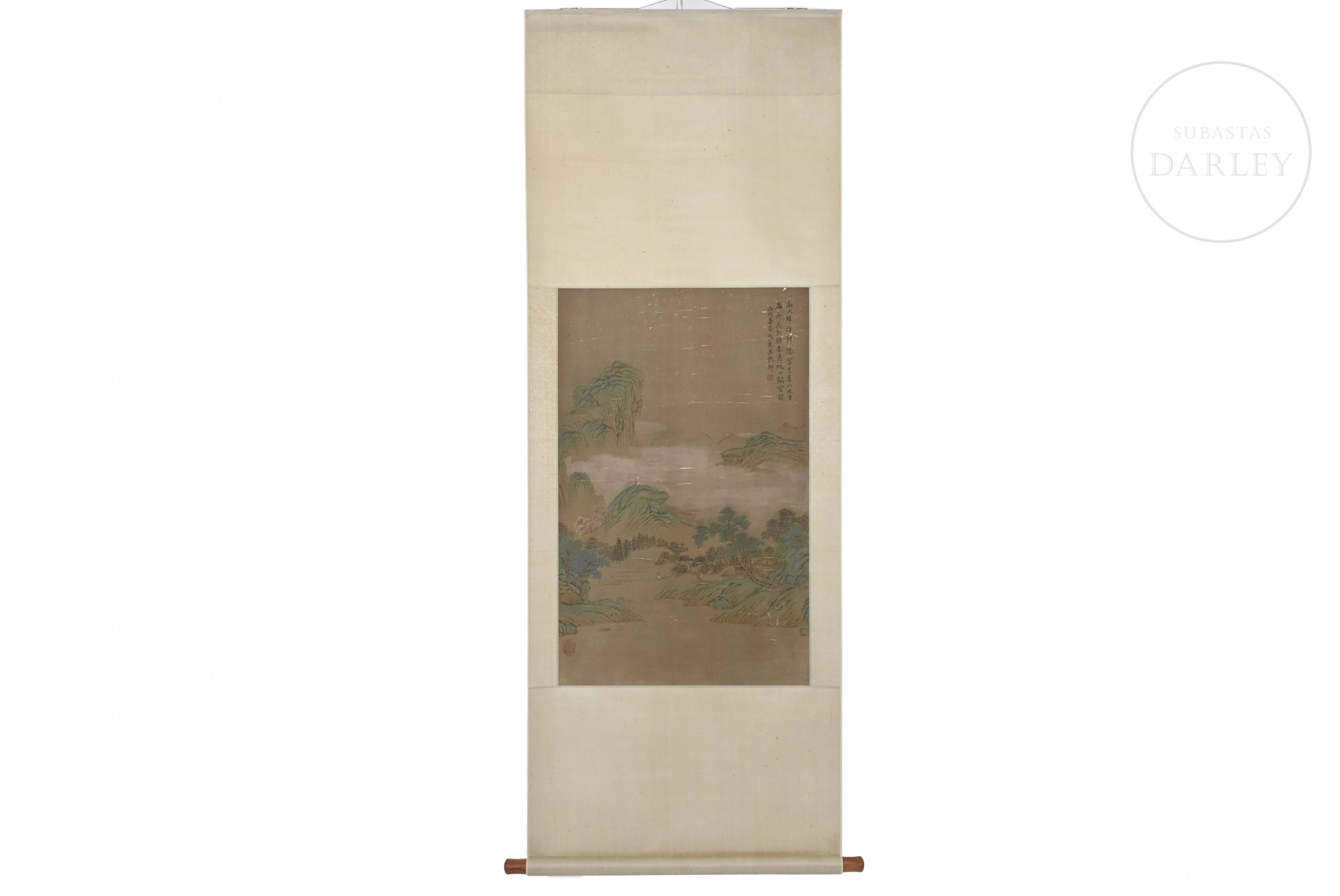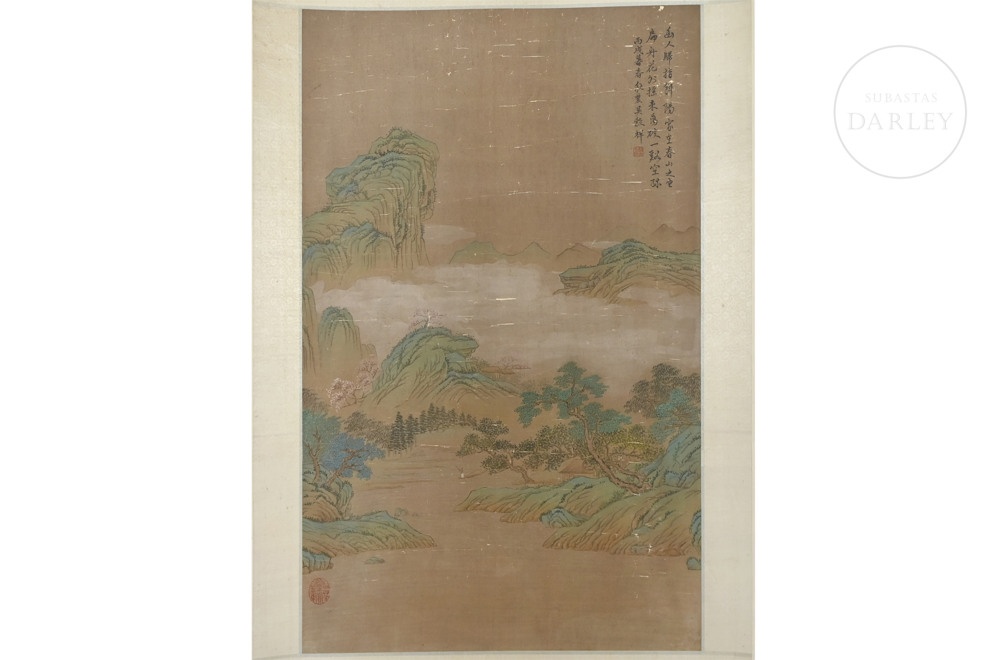 Inicio > Venta Directa > Pintura Asiática > Pintura china "Paisaje primaveral", con firma Wu Guxiang